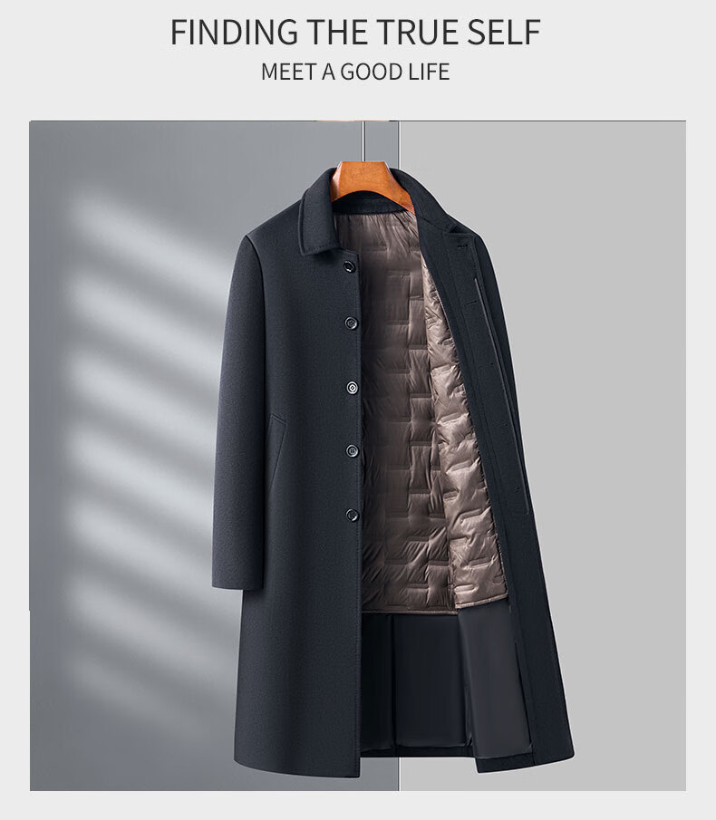 MONTAGUT brand men's wool coat men's lapel middle-aged and elderly dad's long knee-length woolen woolen windbreaker coat winter 2398 gray XL 180 size