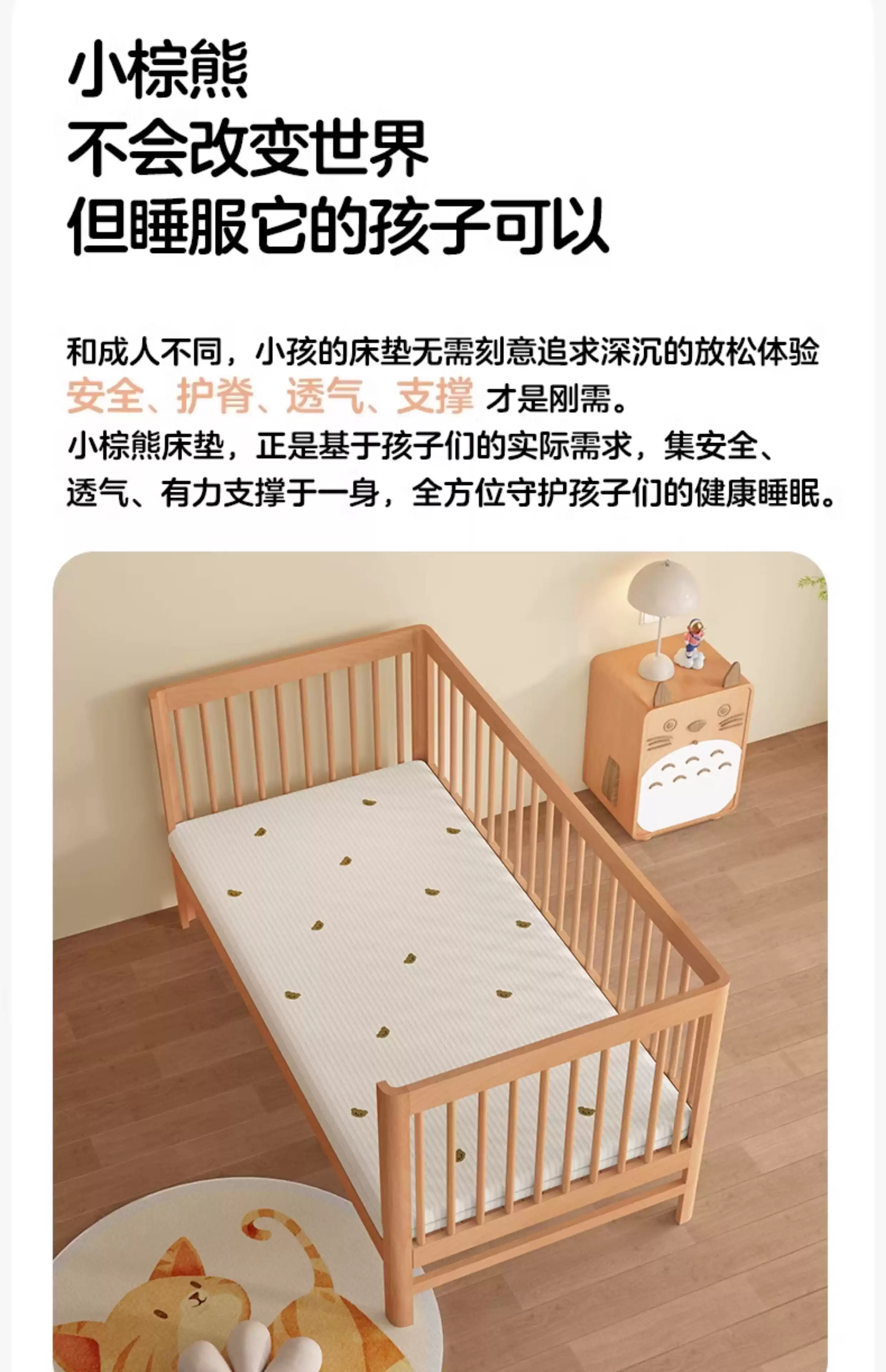 Baby air fiber mattress for newborns, Class A 4D spine-protecting mattress, baby splicing bed, formaldehyde-free sleeping pad, 6cm washable spine-protecting breathable model, cute bear gift 200*90