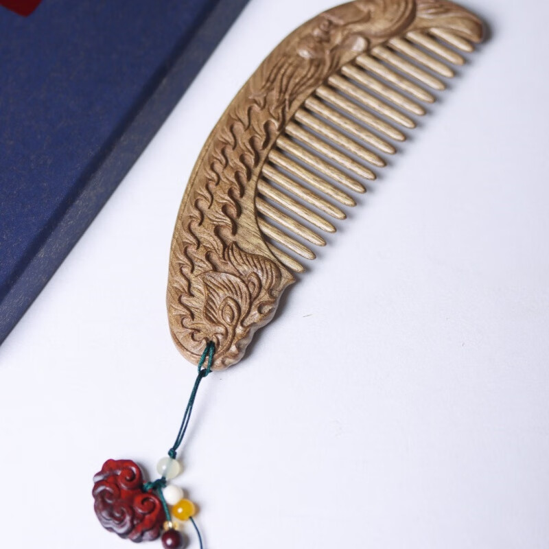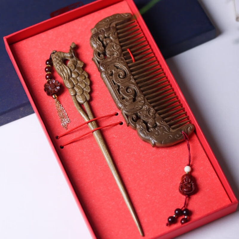 Wedding gift comb golden nanmu small-leaf nanmu comb set couple lovers elders gift new style simple and elegant golden nanmu comb set box