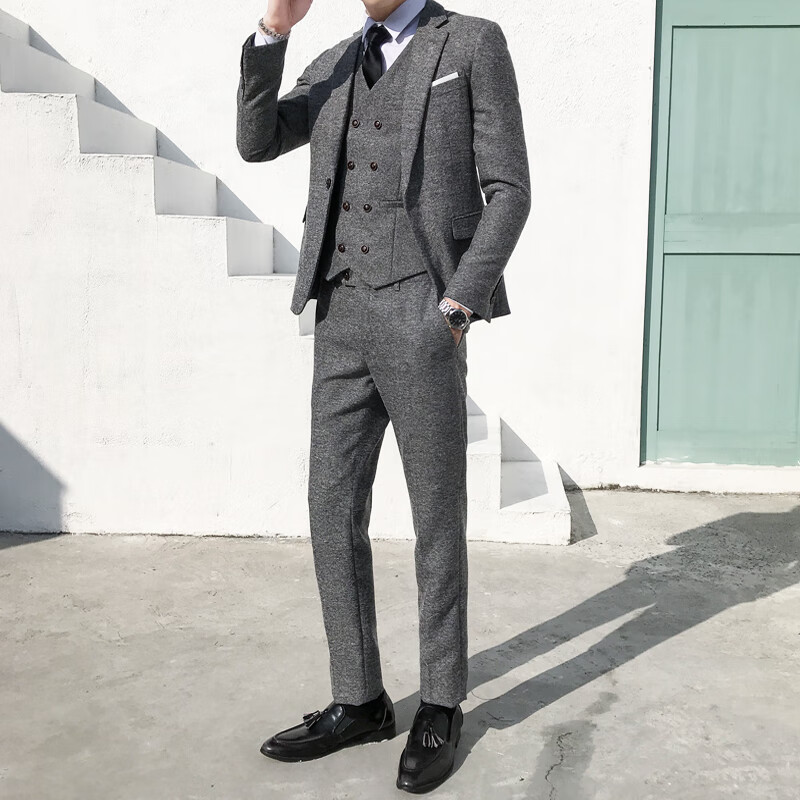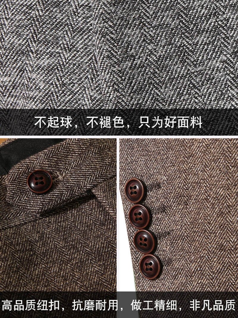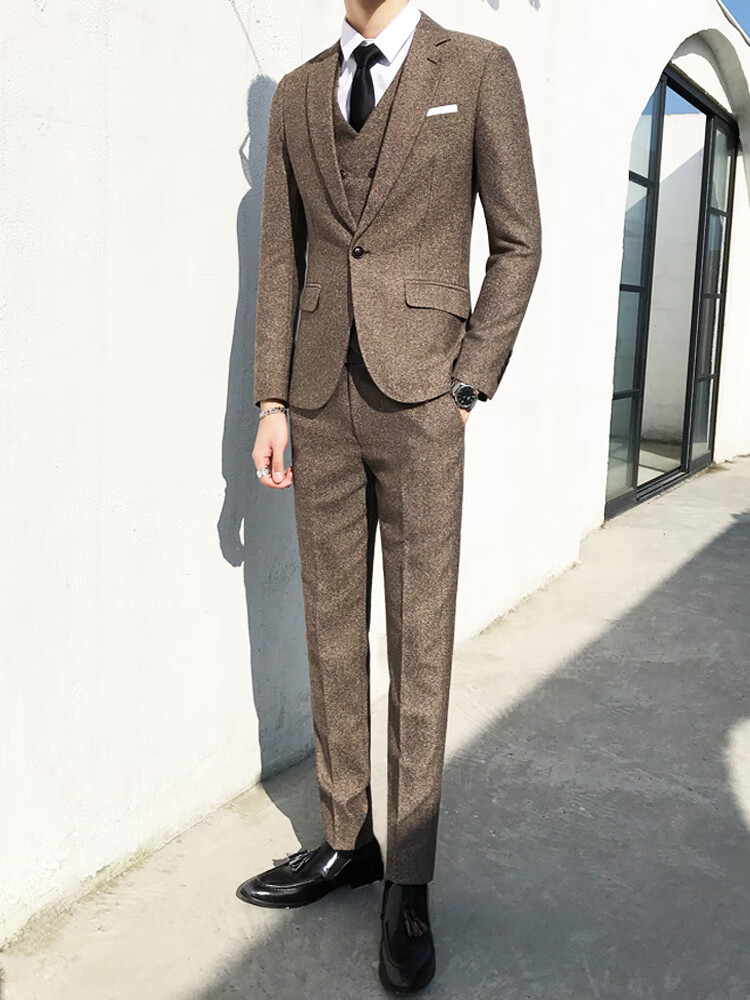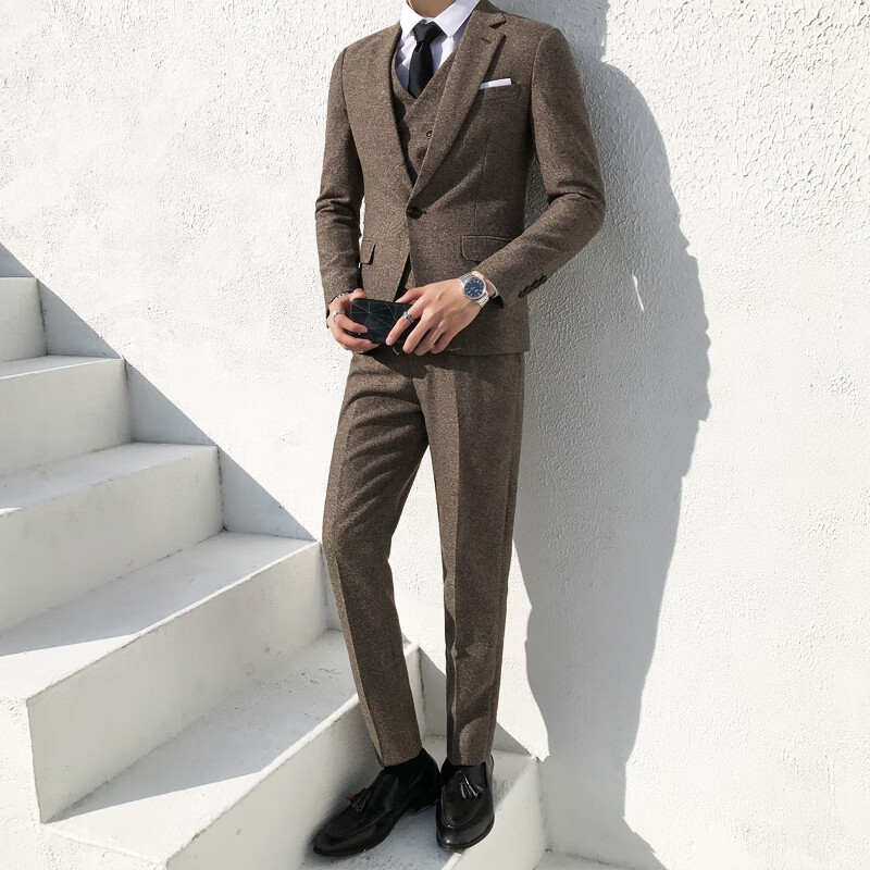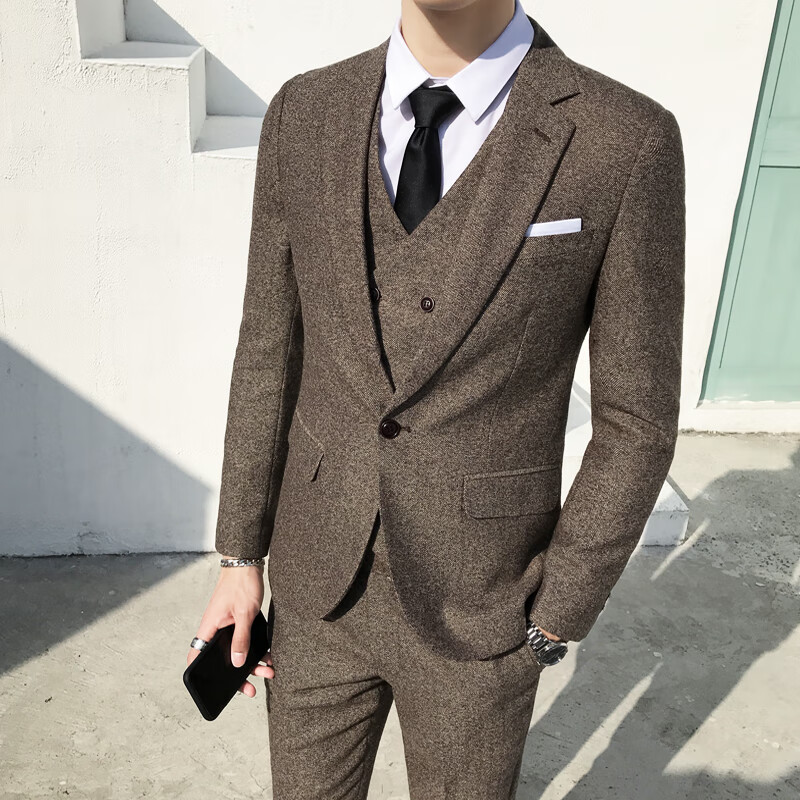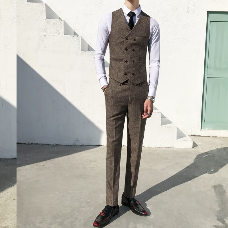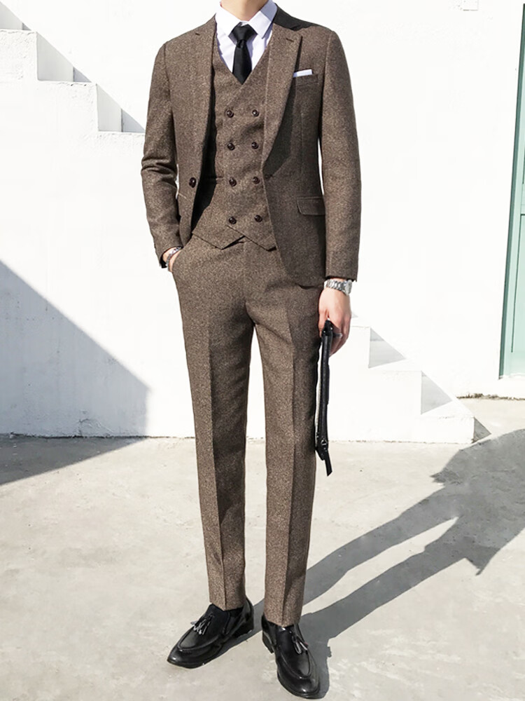 ROMON Peaky Blinders Shave Party Suit Men's Shelby Suit Tweed Groom Wedding Retro Three Pieces Khaki (Suit + Vest + Pants) M 48