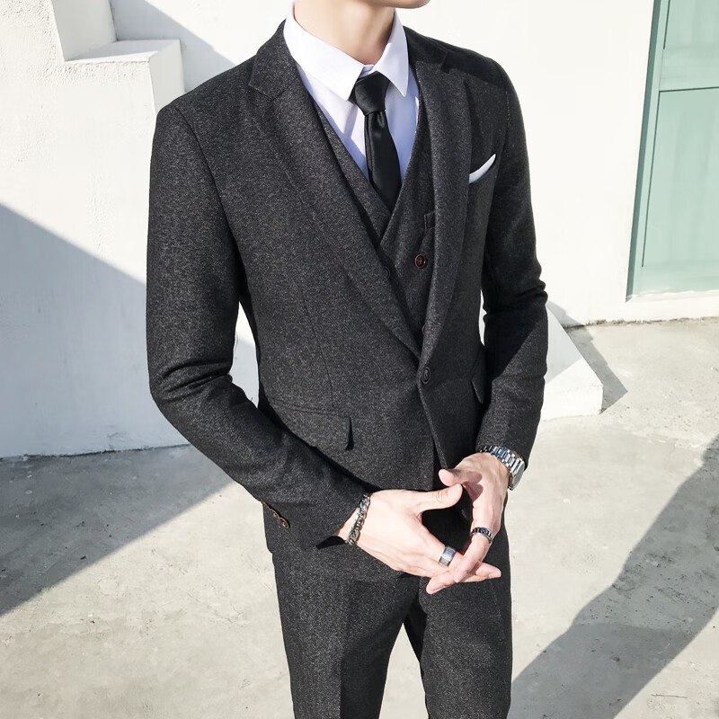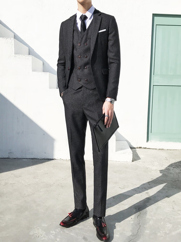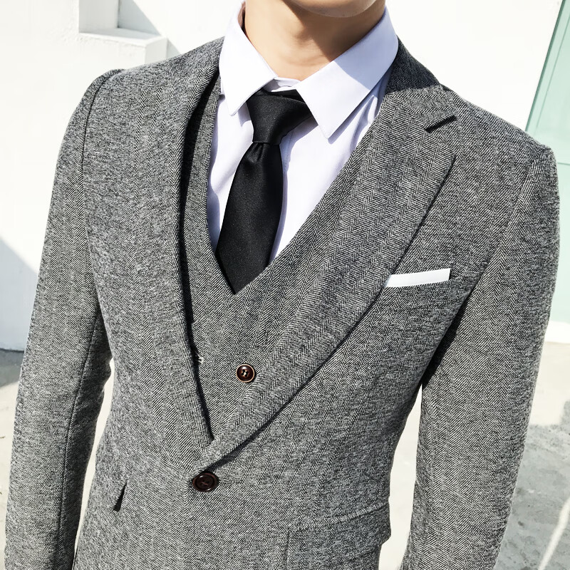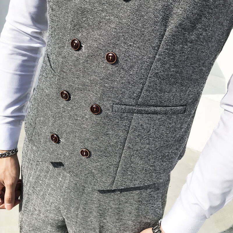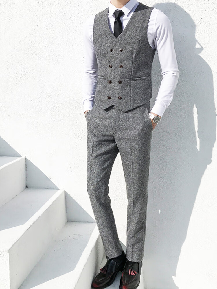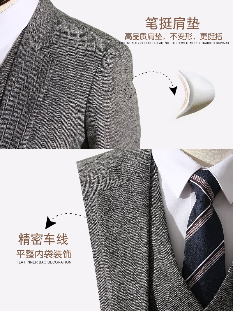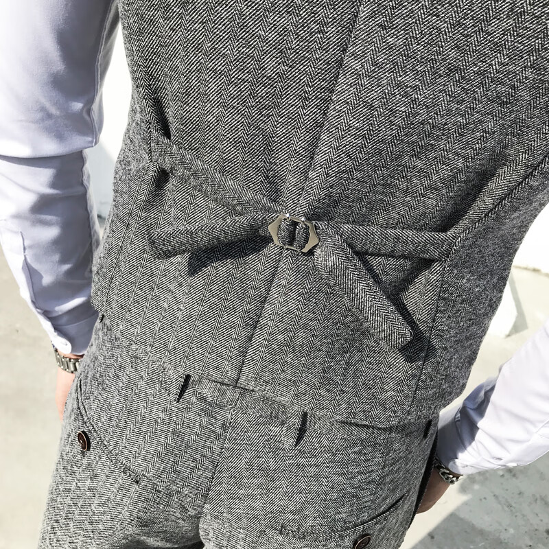ROMON Peaky Blinders Shave Party Suit Men's Shelby Suit Tweed Groom Wedding Retro Three Pieces Khaki (Suit + Vest + Pants) M 48
