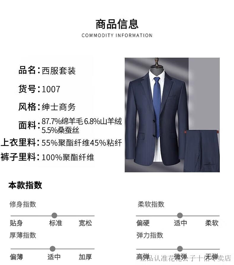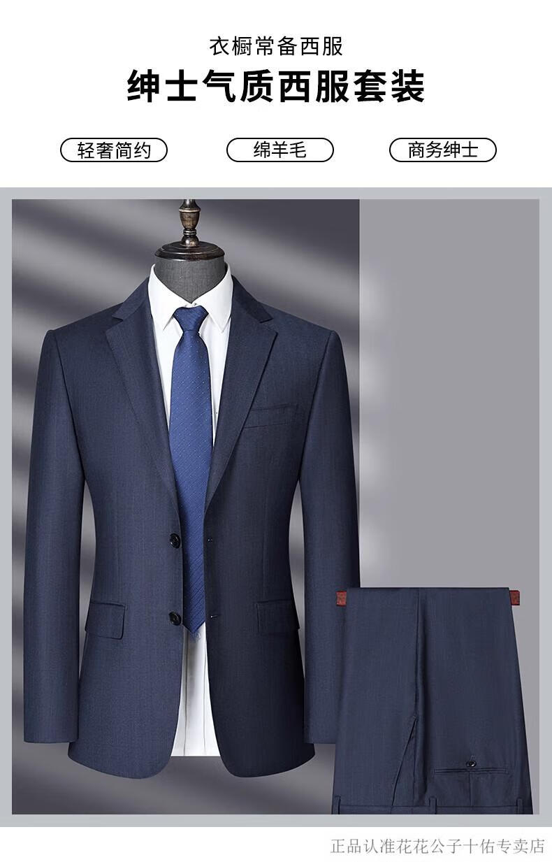 PLAYBOY high-end worsted wool suit men's business formal cashmere mulberry silk suit two-piece set 1007 blue M 170/46B