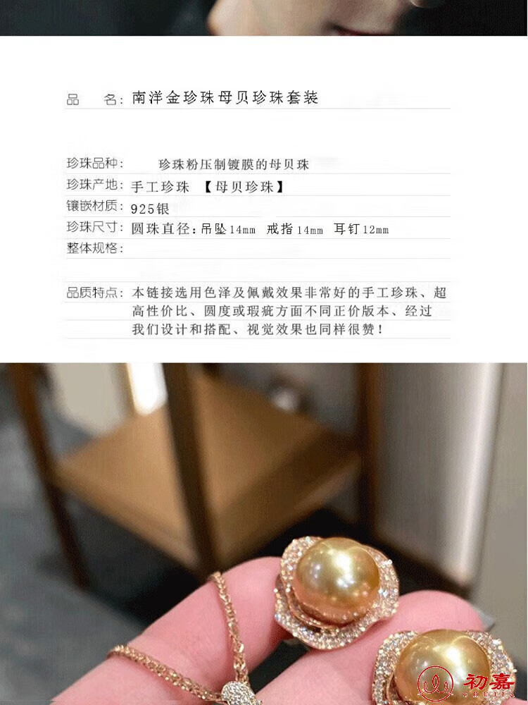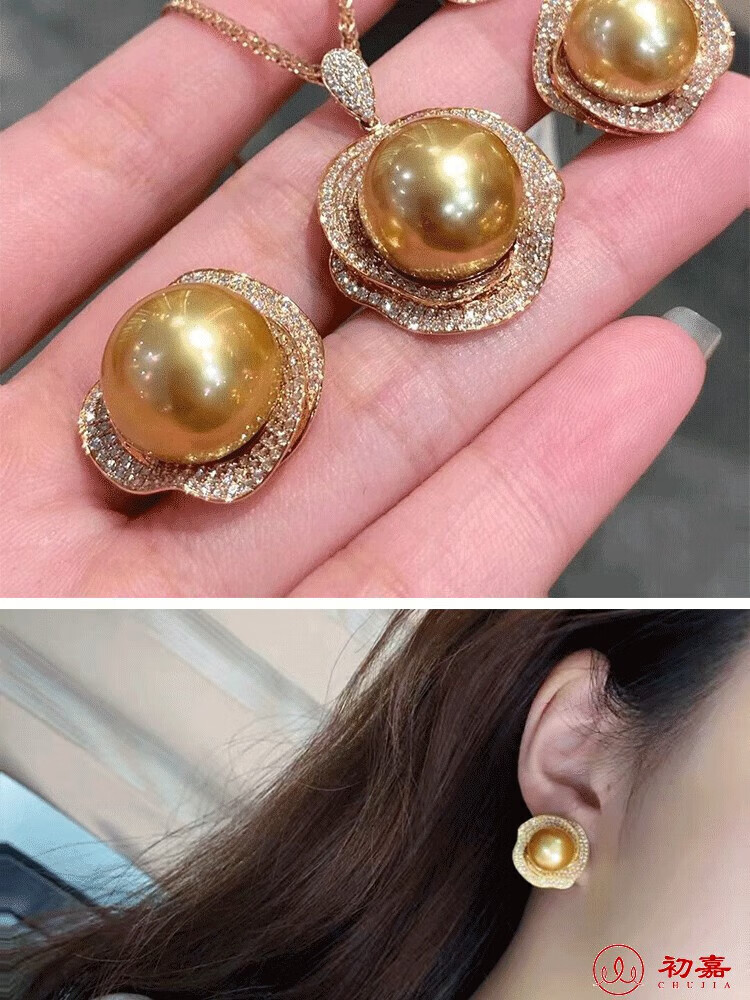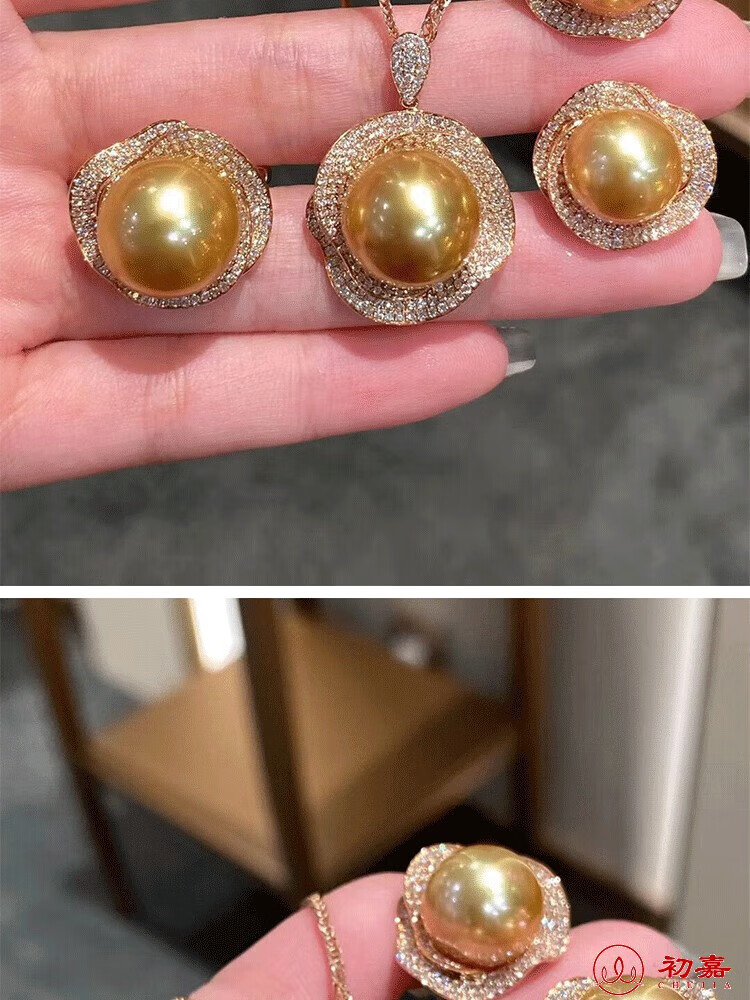 Jiaye quality gold pearl full diamond earrings, gold plated luxury pendant, thick gold necklace, ring set, gold pearl pendant