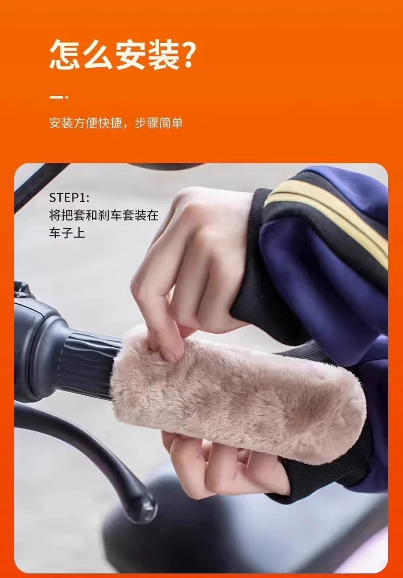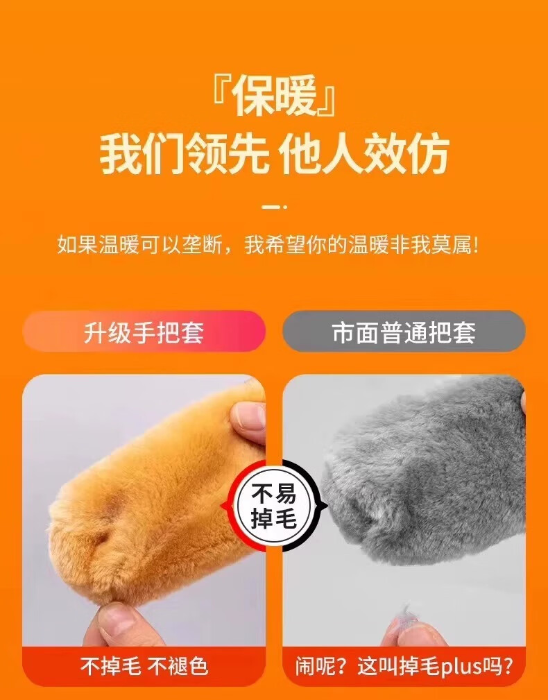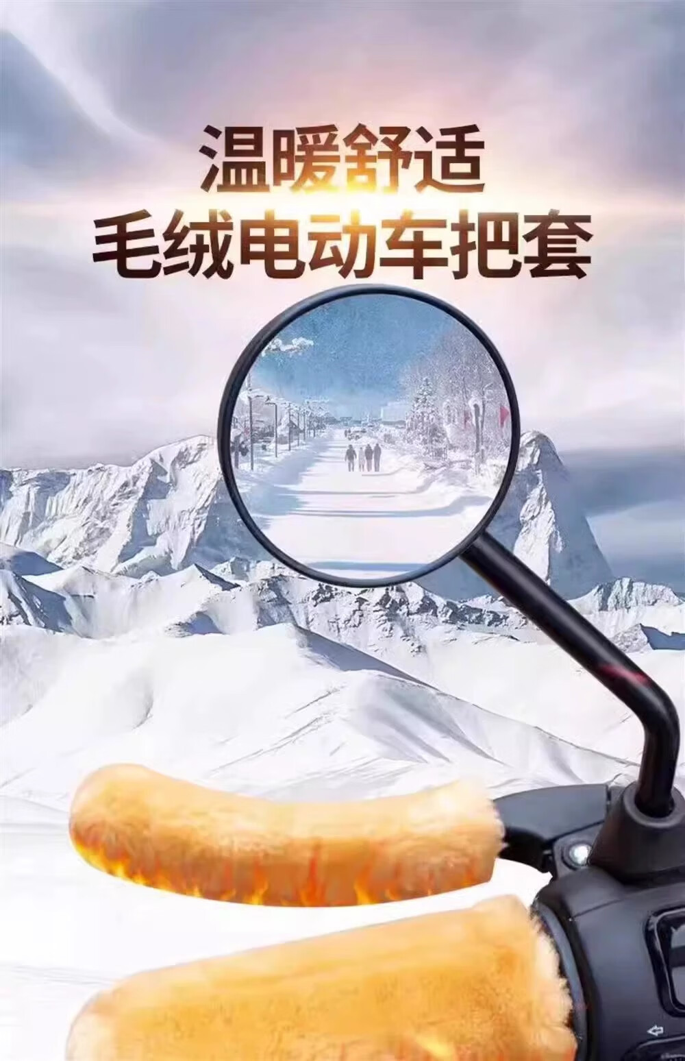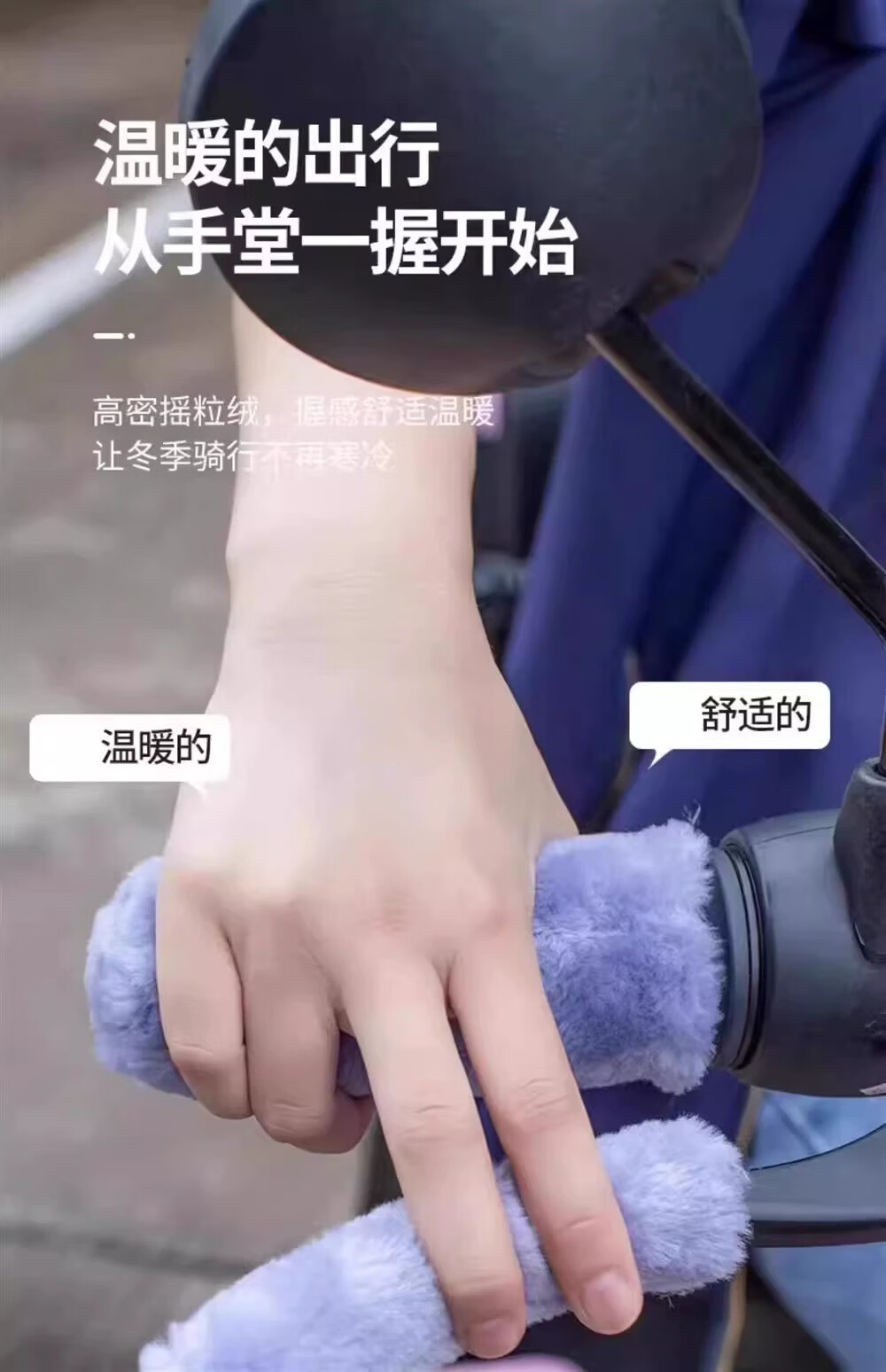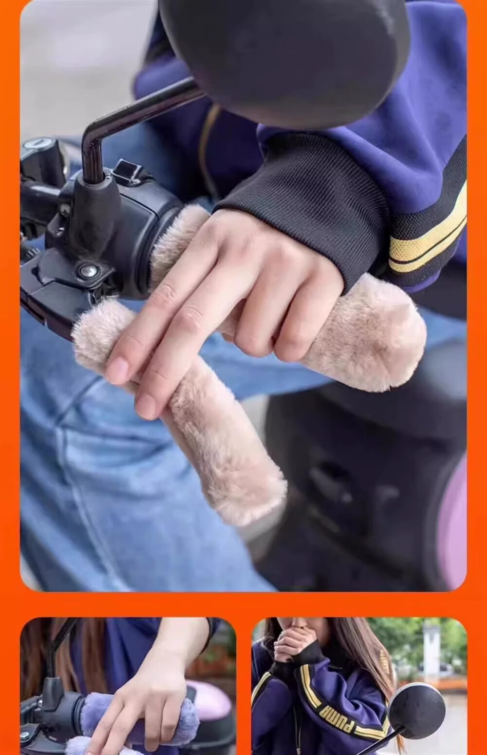 Winter new warm handgrip cover, imitation plush handlebar cover, universal type for electric vehicles, bicycles and motorcycles, obsidian black, handlebar + brake lever - plus velvet, 1 set/4 pieces (2 zip ties included)