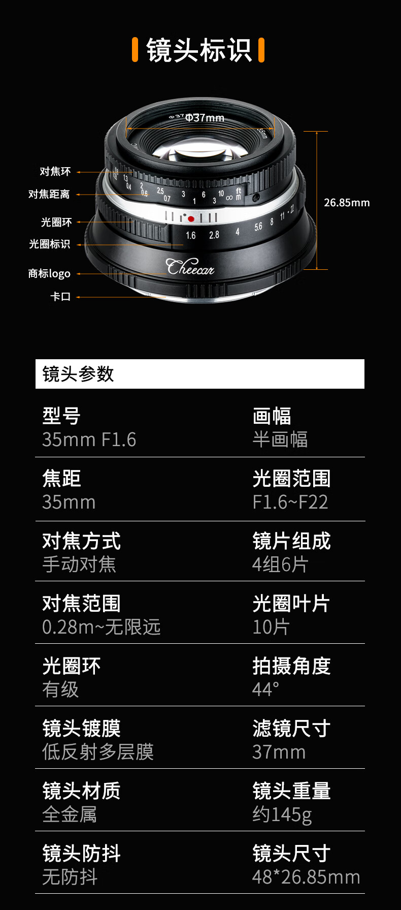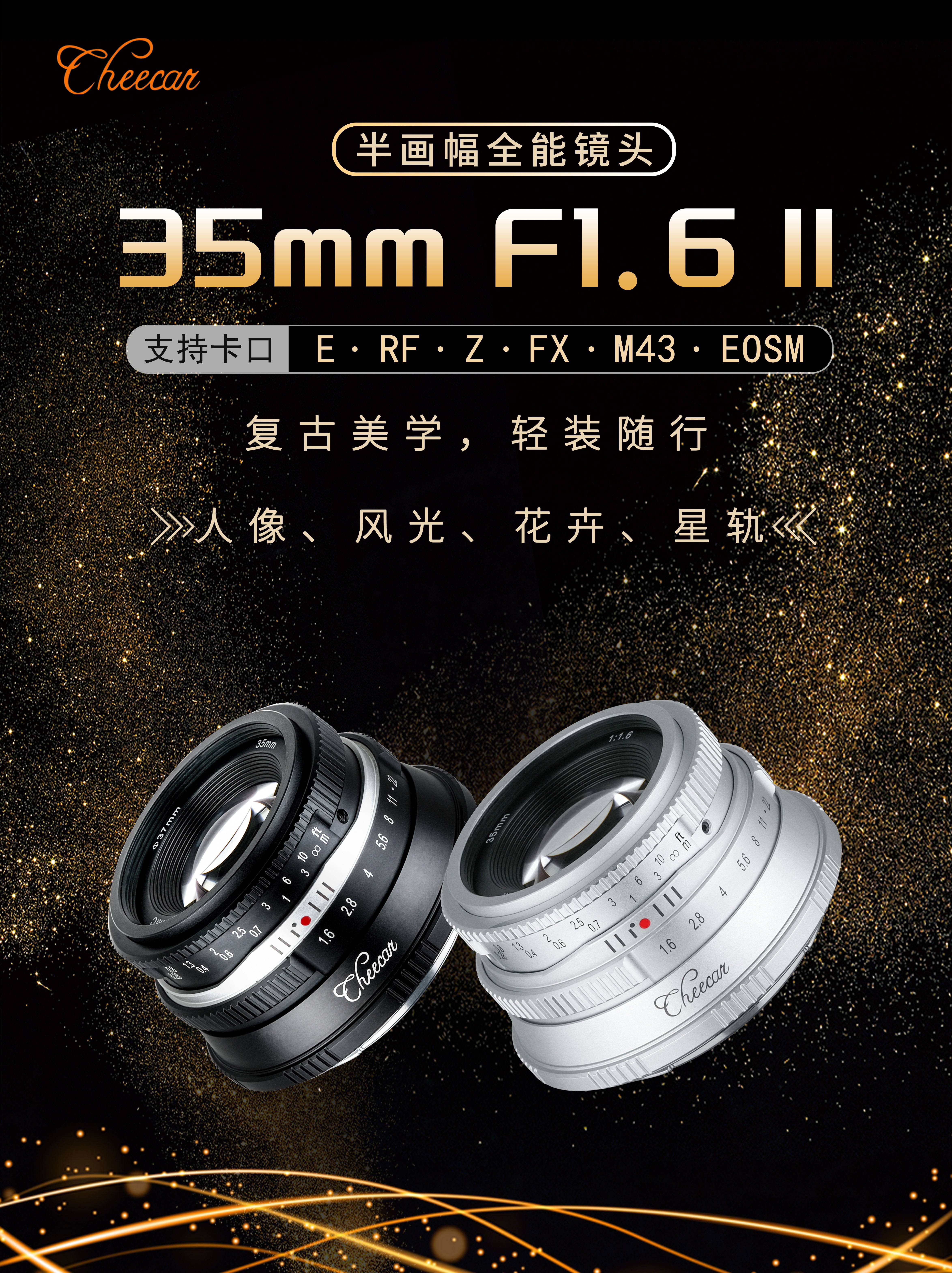 Cheka 35mmF1.6 second generation portrait retro portable lens for X, Z, R, E, M43 mount Sony E mount black