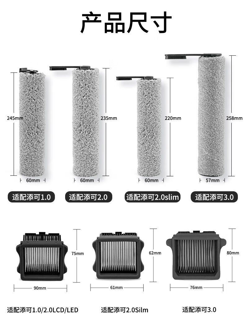 Suitable for Timco Stretch lying flat Wiper/V7 roller brush filter FW12010ECN FW33031ECN FW90010ECN FW12030ECN floor scrubber accessories 3 roller brushes + 5 filters Free brush Suitable for Timco Stretch lying flat