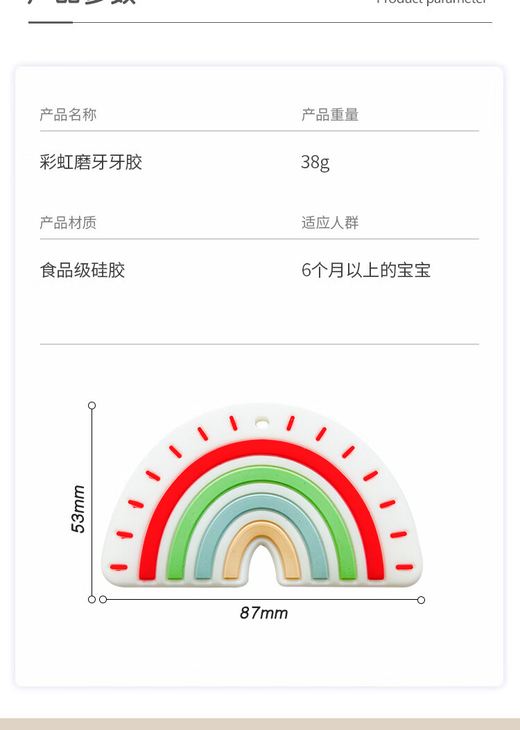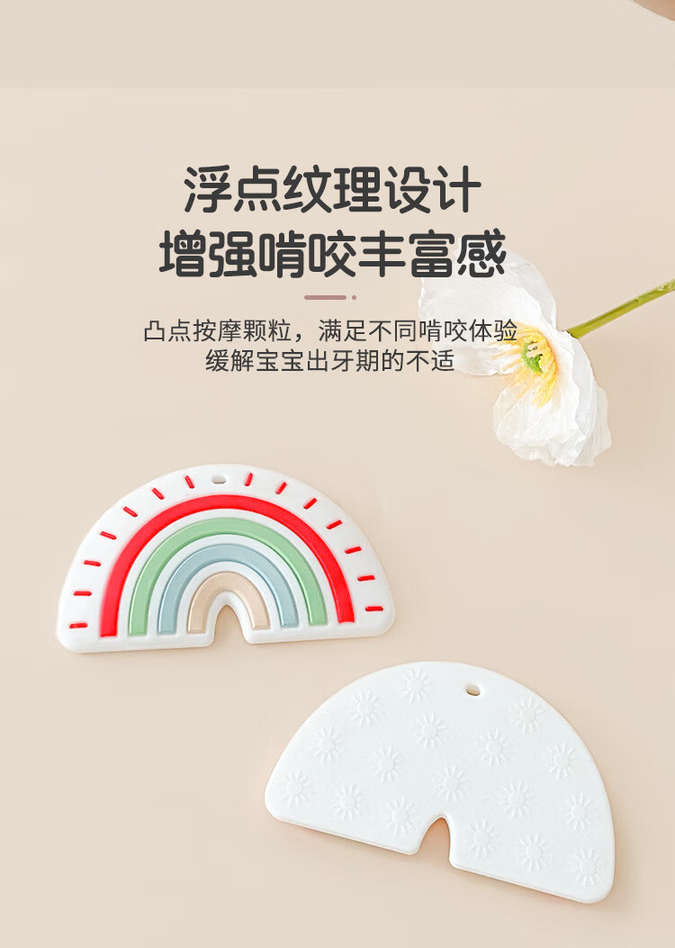 Baby teething and molar anti-biting hand rainbow silicone teether oral comfort food grade white 1 piece