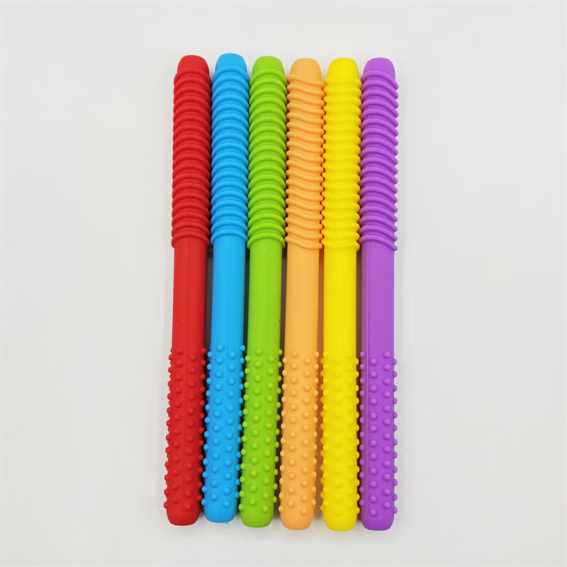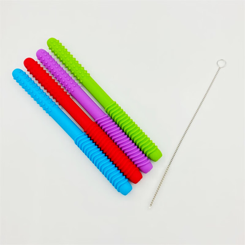 Silicone hollow tube straw teether for babies during the oral period to prevent eating and chewing gum to soothe and prevent falling off food grade hose purple 1 piece