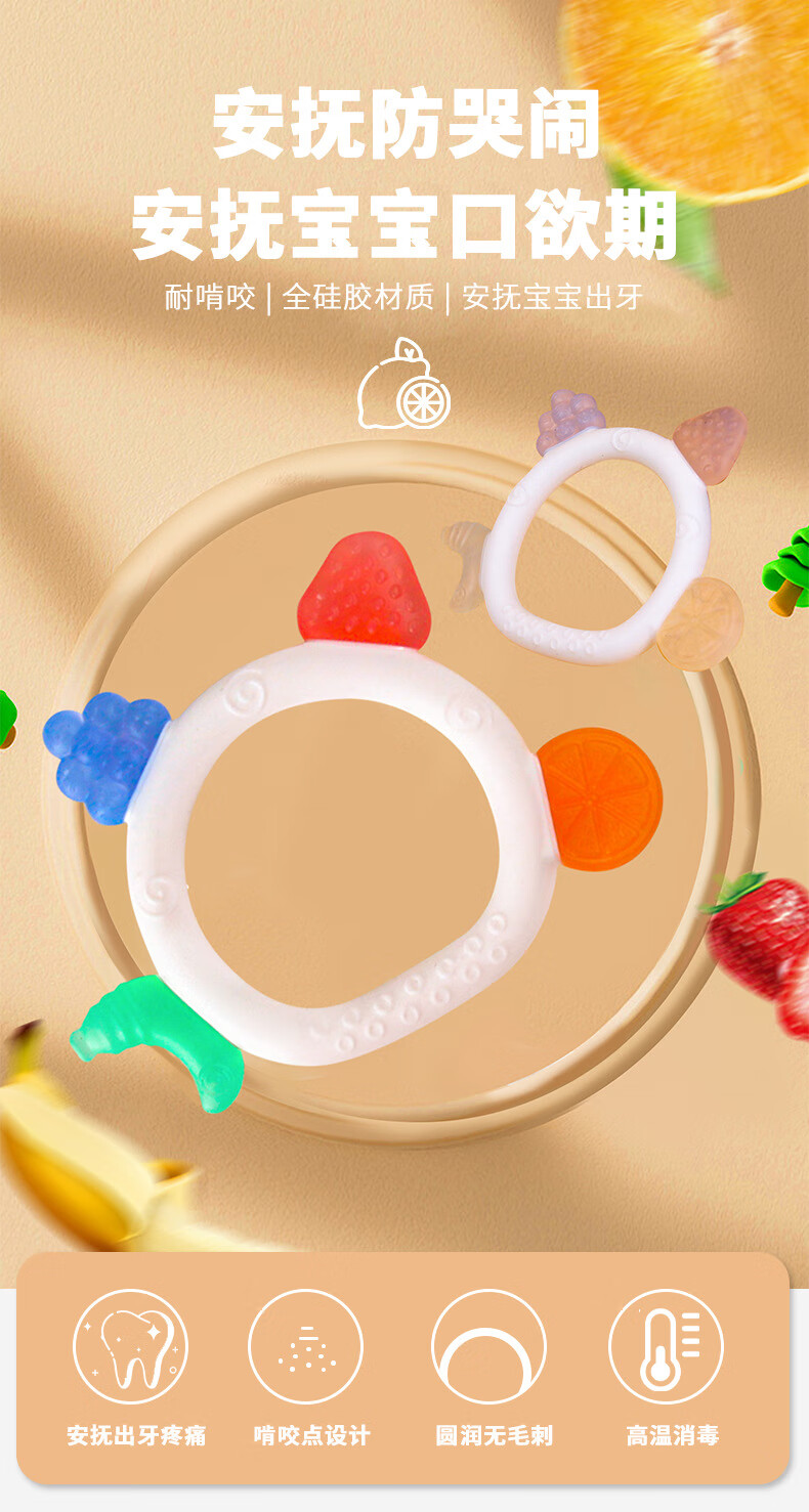 New Boilable Teether Toy Food Grade Liquid Silicone Baby Teething Stick Soothing Anti-eating Baby Teething Stick Dark Fruit Teether + Storage Box 1 Pack