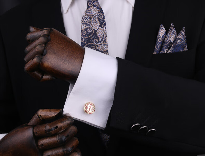 Lieshang groom's wedding round happy cufflinks, wedding cufflinks for men, cuff cufflinks, business meeting cufflinks, French cufflinks (groom's golden round 囍)_gold
