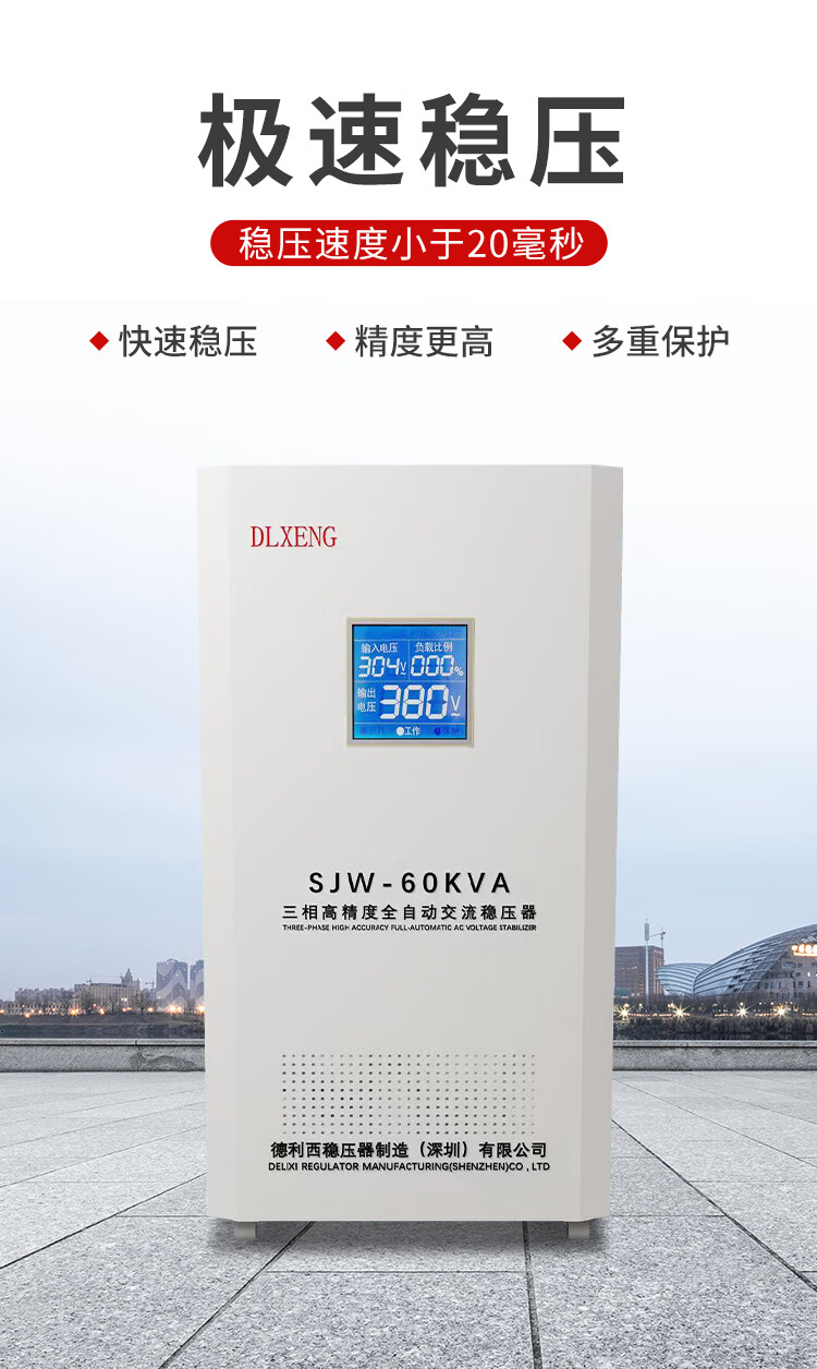 Delixi voltage stabilizer 380v three-phase high power/30/50/60/80/100KW laser voltage stabilizer 380v SJW-15KVA