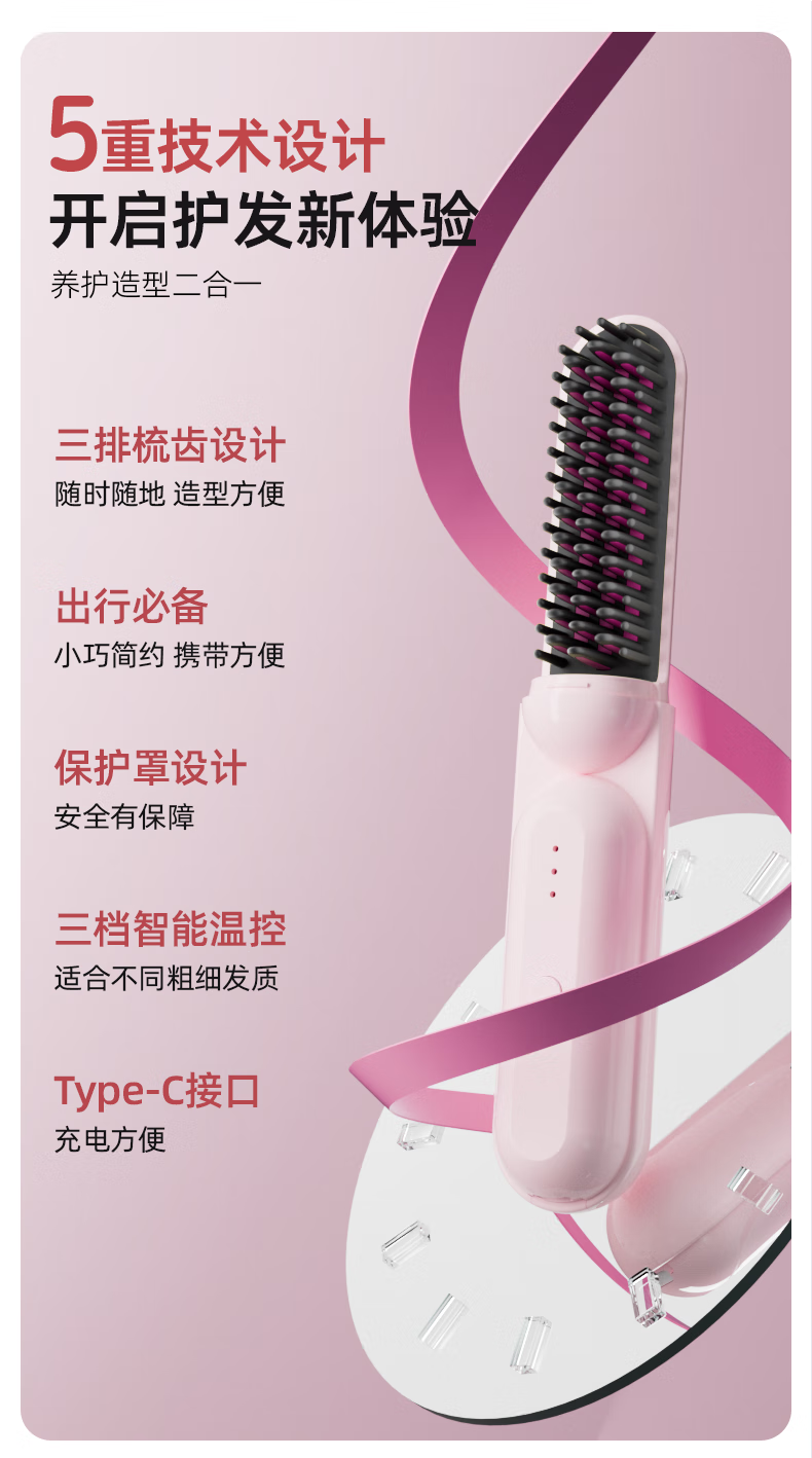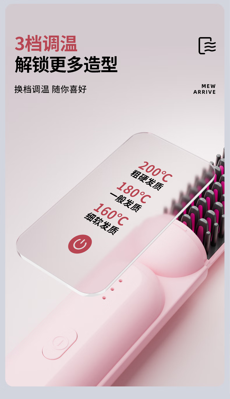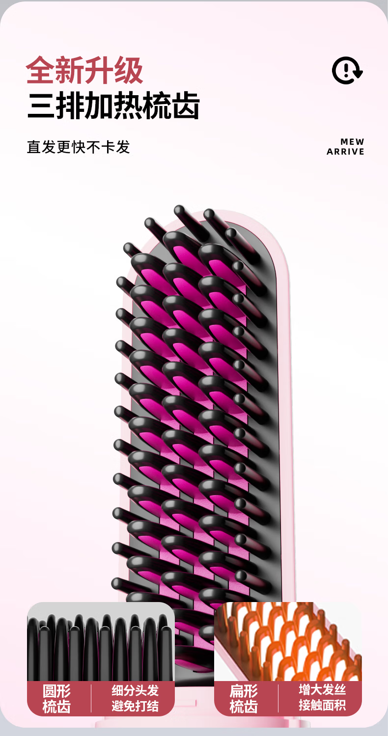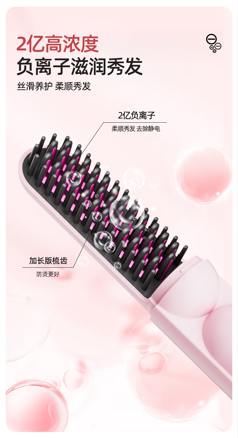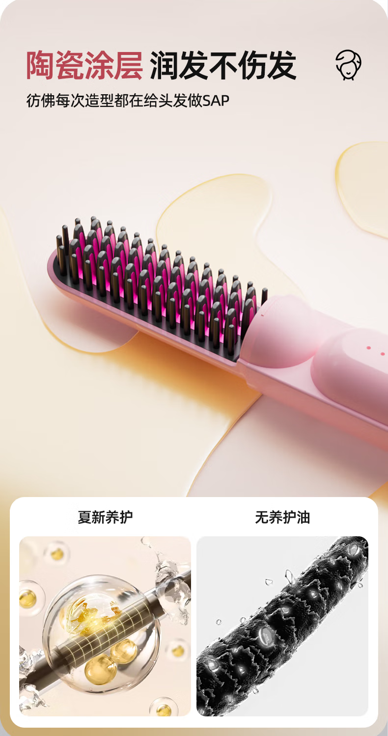 Amoi Wireless Capsule Straightening Comb Negative Ion Charging Electric Curling Iron Portable Straightening Plinth Wet and Dry Artifact Gift Girl Birthday Mother's Day Gift Luxurious Beige