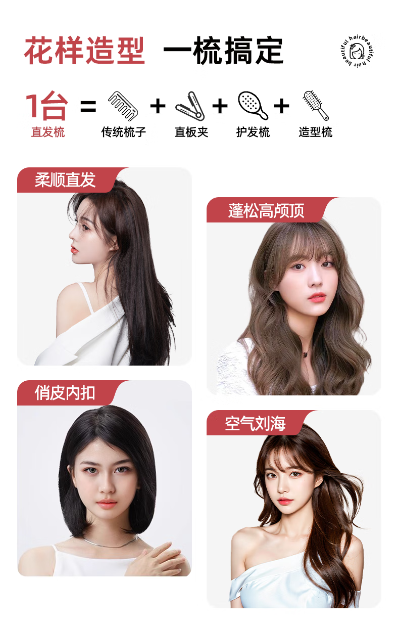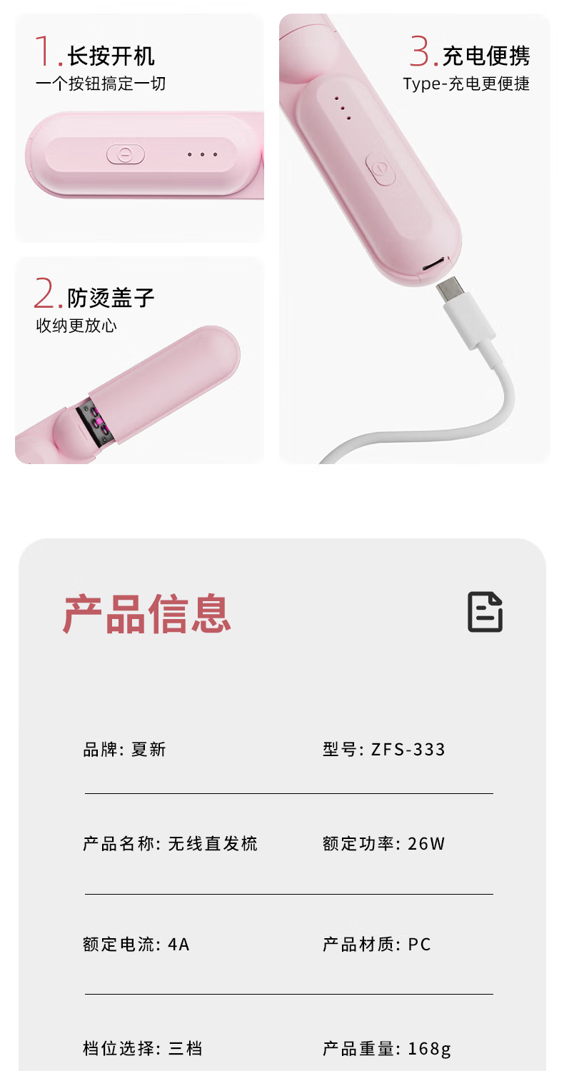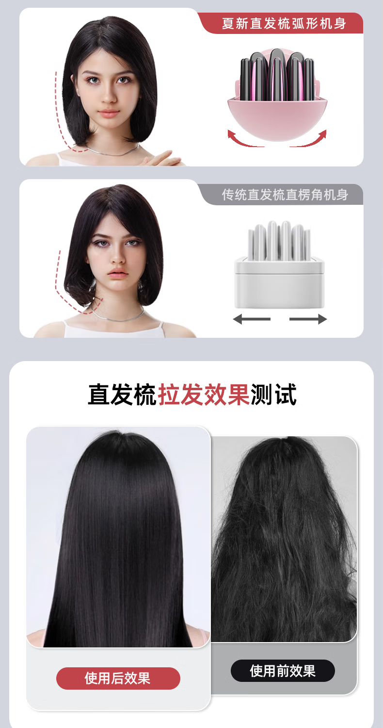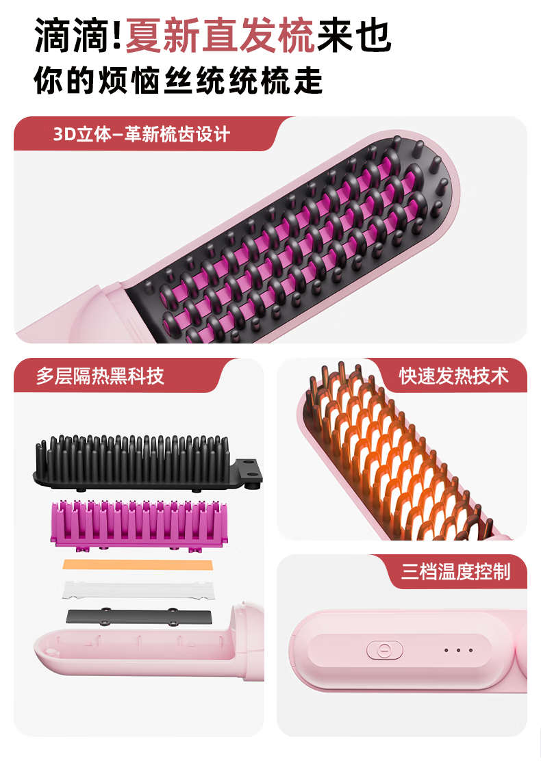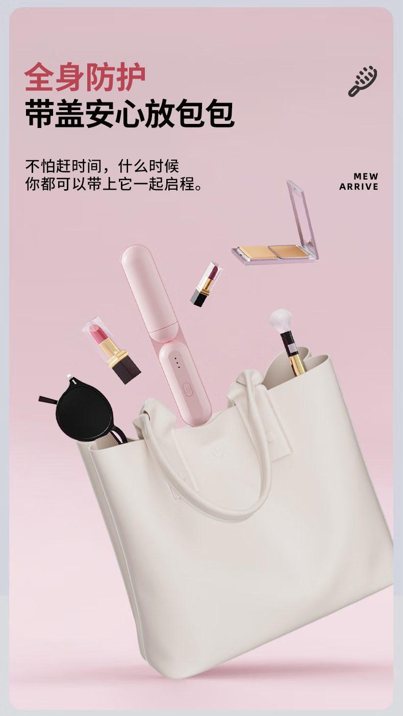 Amoi Wireless Capsule Straightening Comb Negative Ion Charging Electric Curling Iron Portable Straightening Plinth Wet and Dry Artifact Gift Girl Birthday Mother's Day Gift Luxurious Beige
