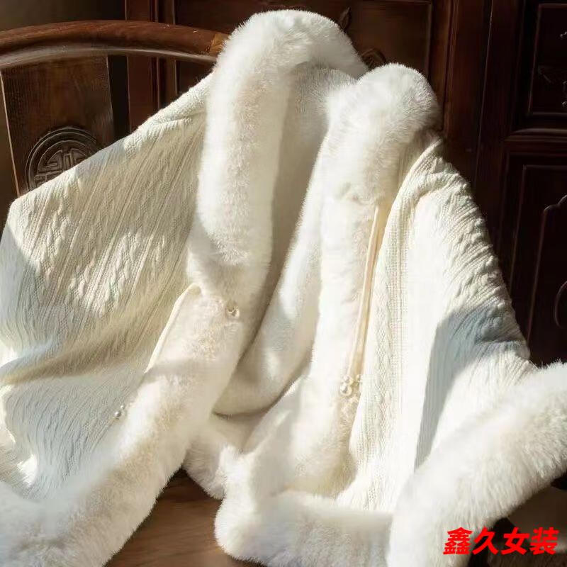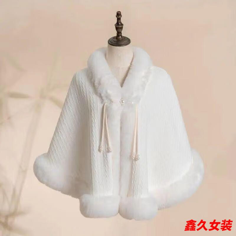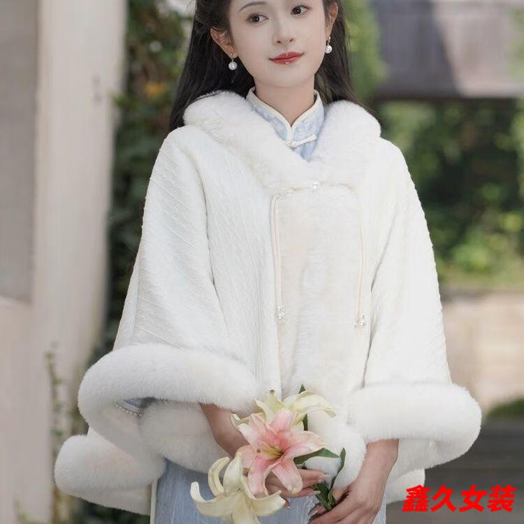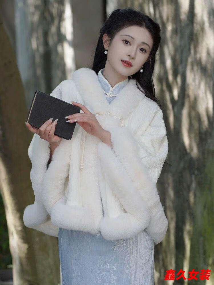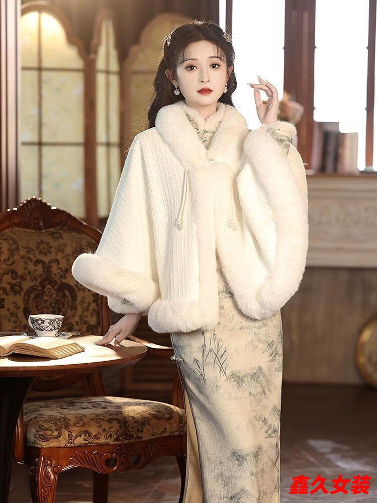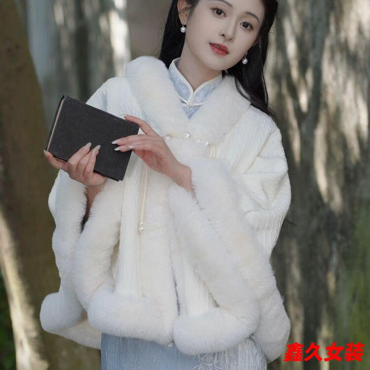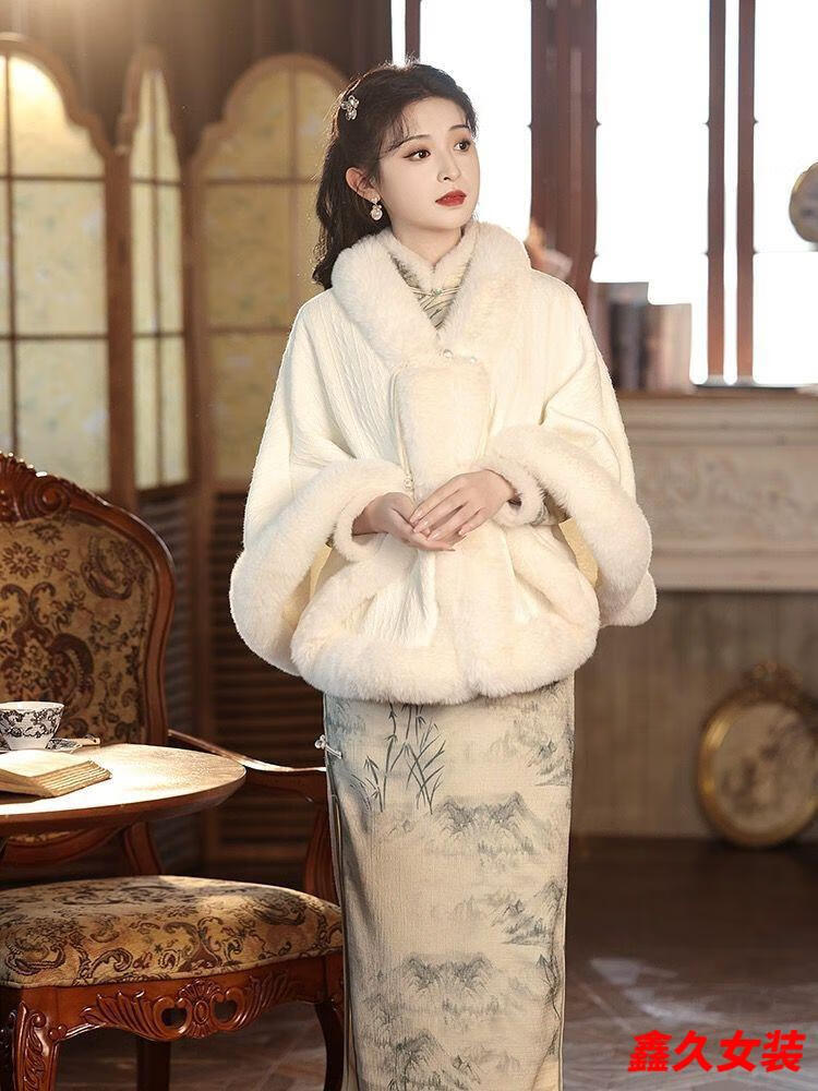 Meianjia Republic of China plus velvet and thickening new style cape shawl cheongsam temperament high-end autumn and winter warm coat plush autumn and winter wool/collar cape one size fits all length about 60CM