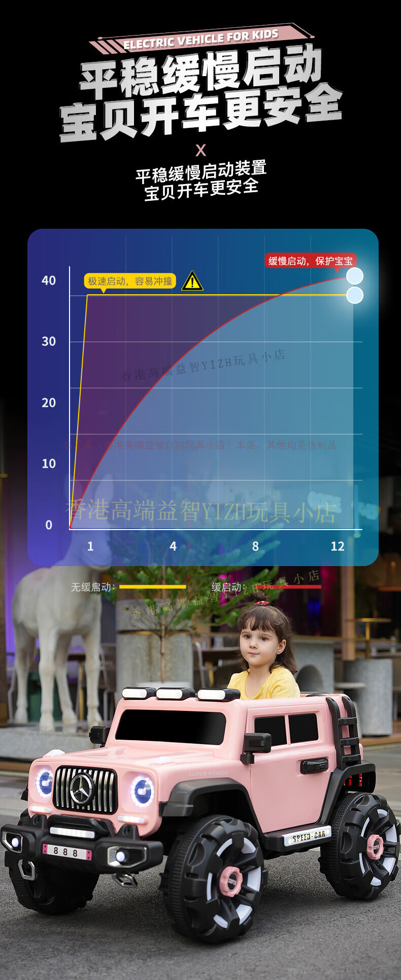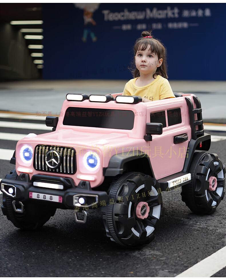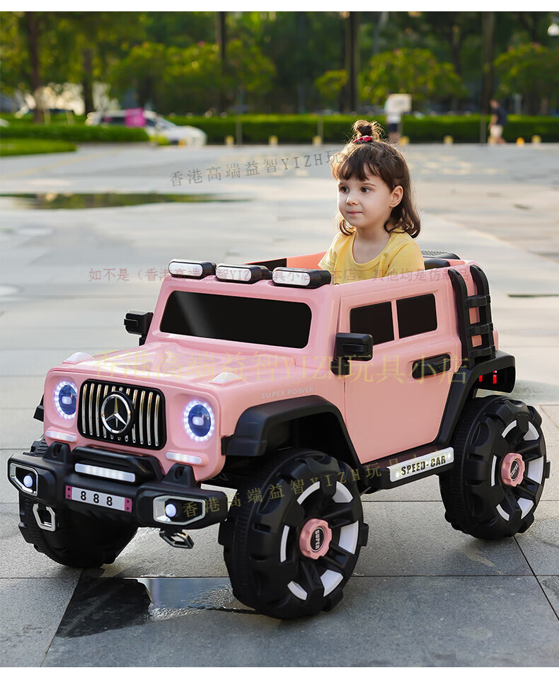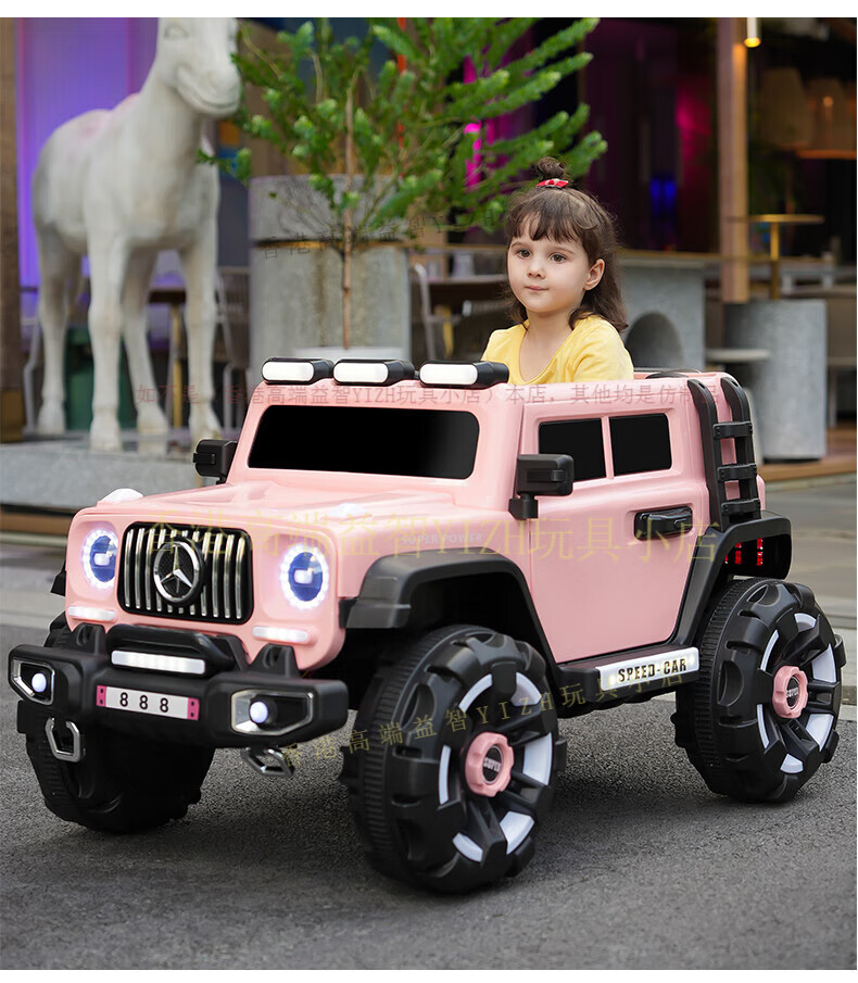 HTI children's electric car four-wheeled with remote control toy car can sit adults g off-road car men and women children baby stroller pink electric drive