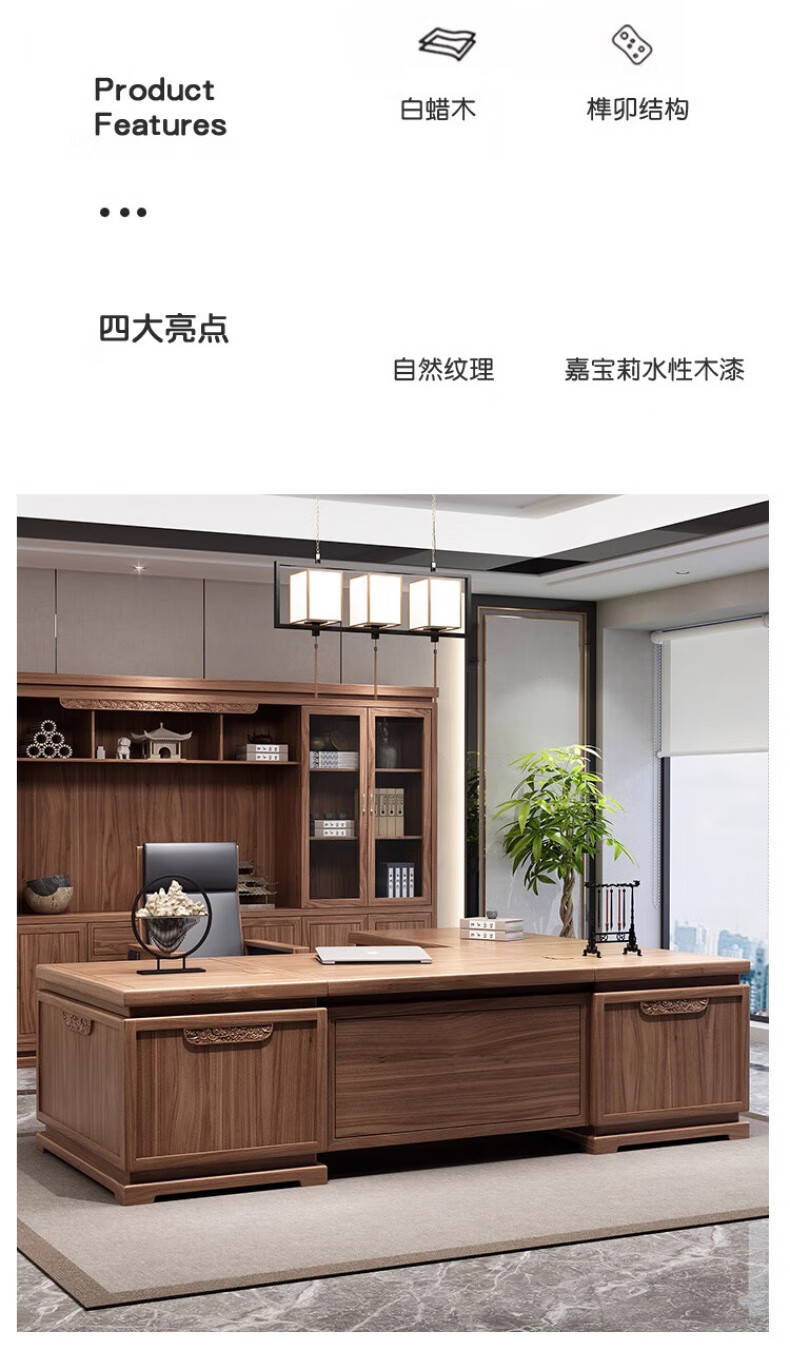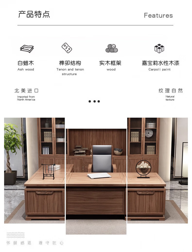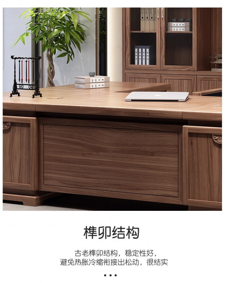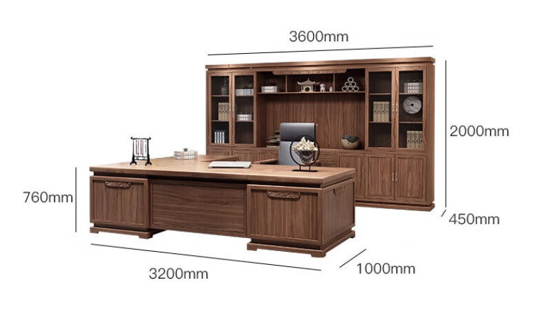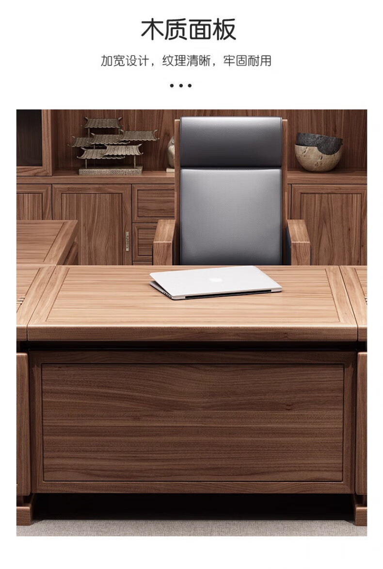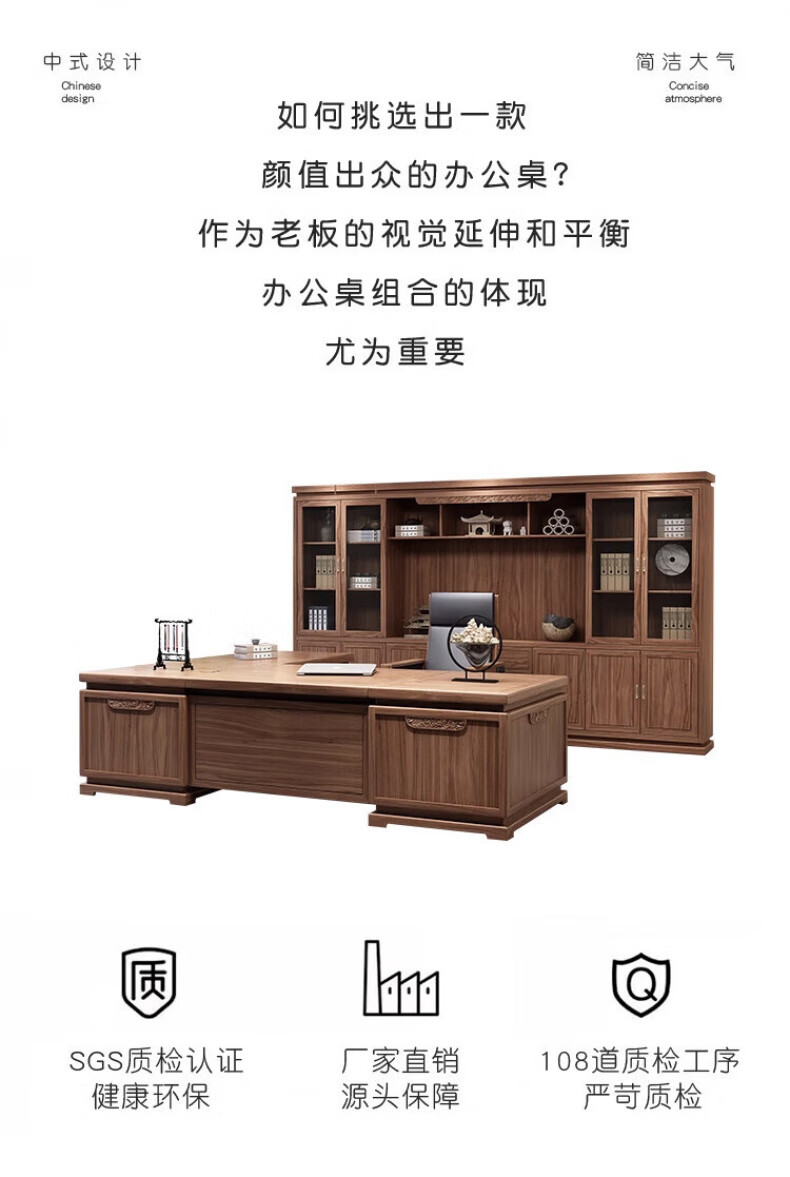 CUNOHVRG boss desk new Chinese style solid wood CEO desk executive desk office desk and chair combination office furniture customization 2.0 meter desk (excluding side table)