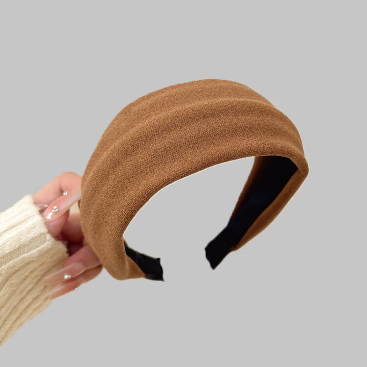 SAHANE's feather-covered wide-brimmed headband is light and luxurious with the same style of fabric pressed hair. Korean style autumn and winter headband for shopping, versatile and fashionable hairpin. Suede headband, light khaki.