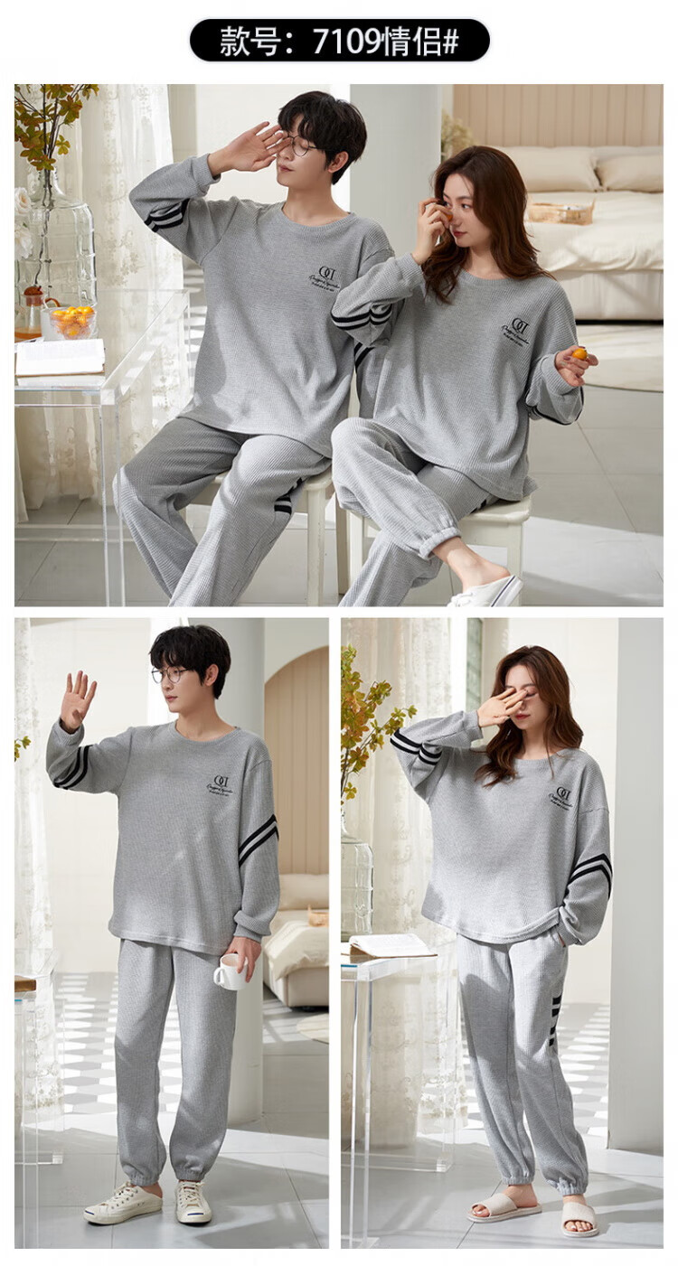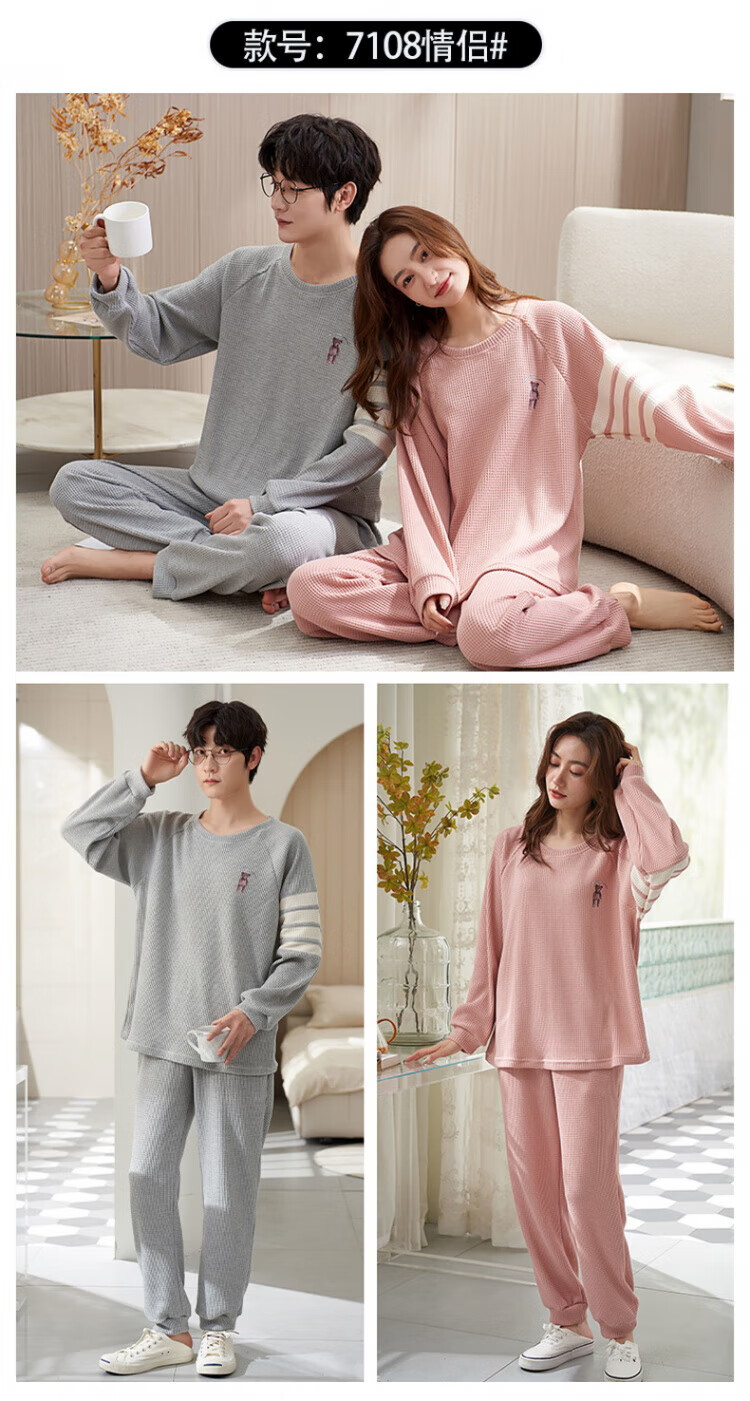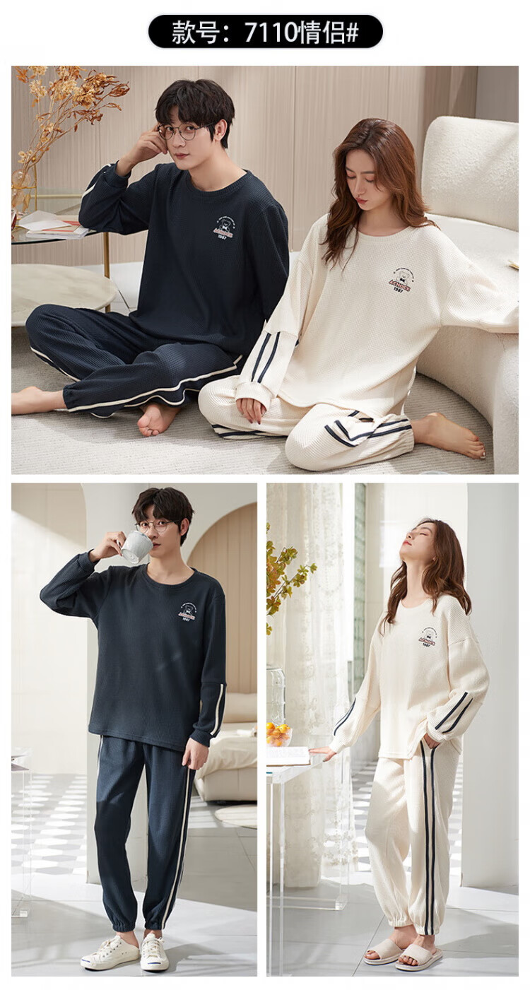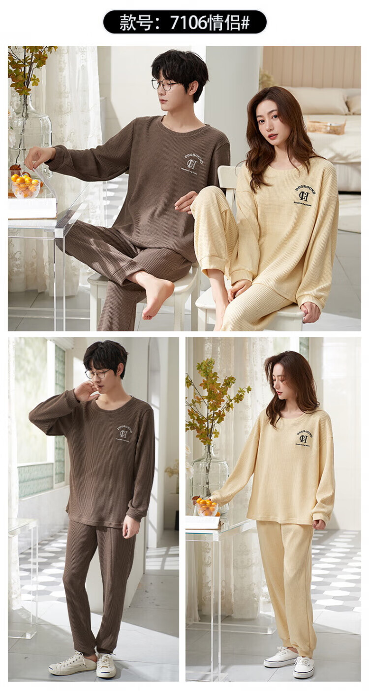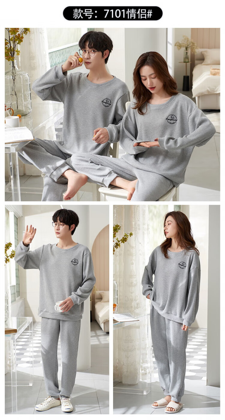MiiOW Couple Pajamas Spring and Autumn Women's Autumn and Winter Long-Sleeved Pants Set Simple and Loose Men Can Wear Outside Home Clothes H7100 XL Women
