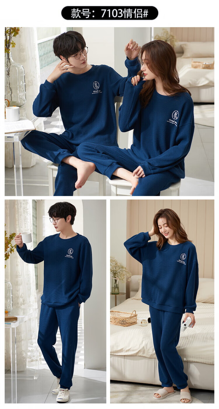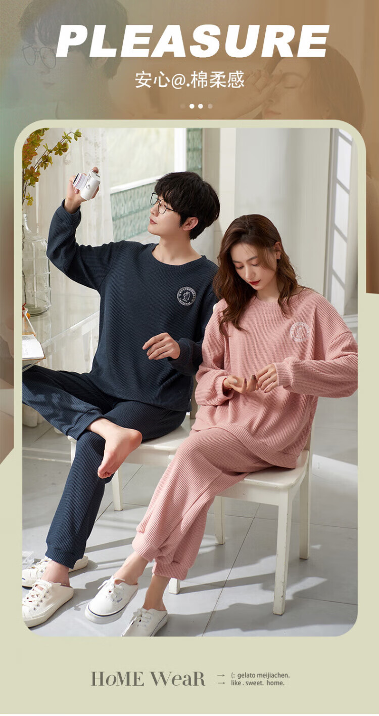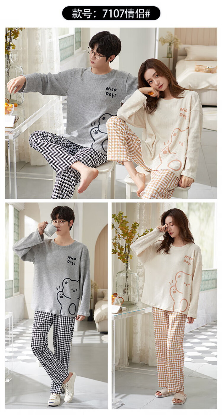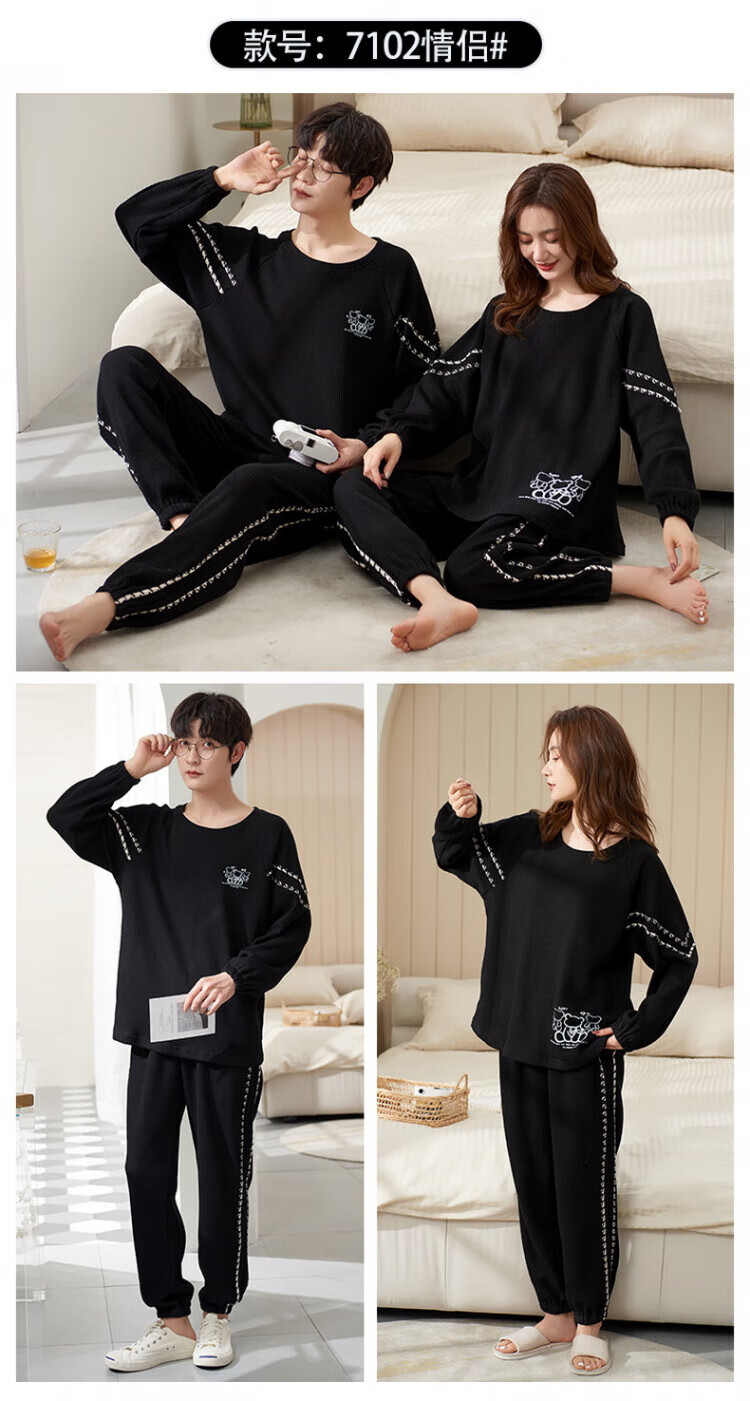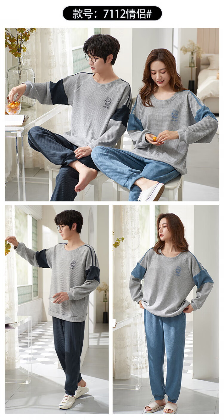 MiiOW Couple Pajamas Spring and Autumn Women's Autumn and Winter Long-Sleeved Pants Set Simple and Loose Men Can Wear Outside Home Clothes H7100 XL Women