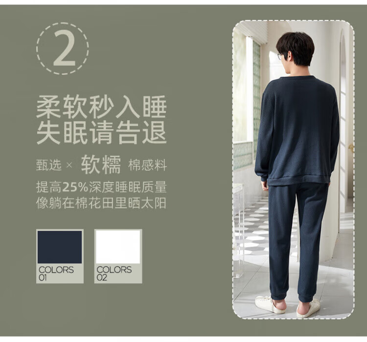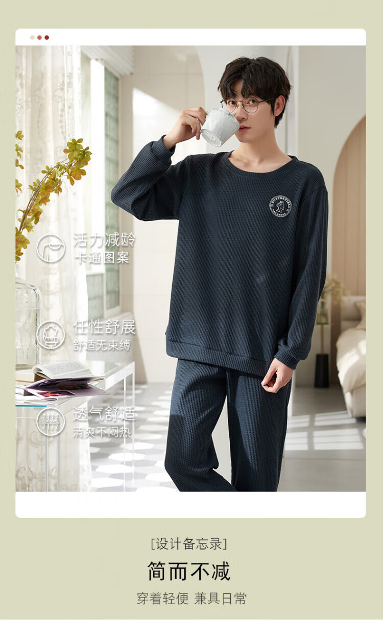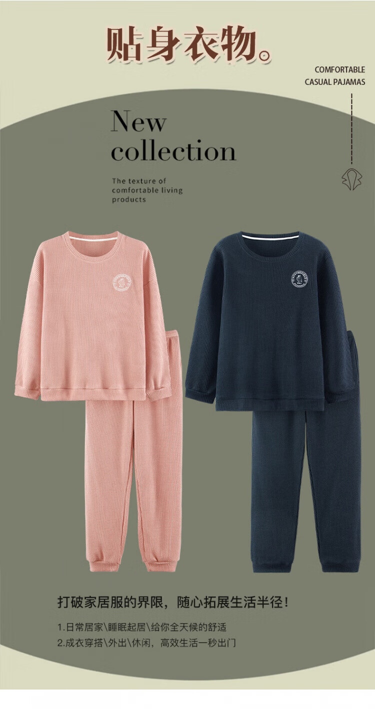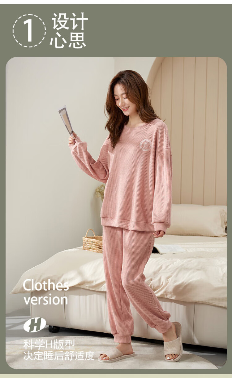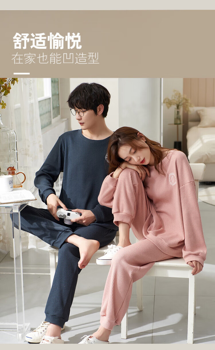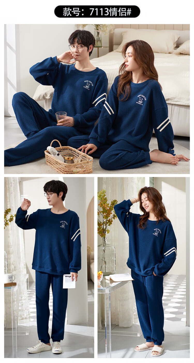 MiiOW Couple Pajamas Spring and Autumn Women's Autumn and Winter Long-Sleeved Pants Set Simple and Loose Men Can Wear Outside Home Clothes H7100 XL Women
