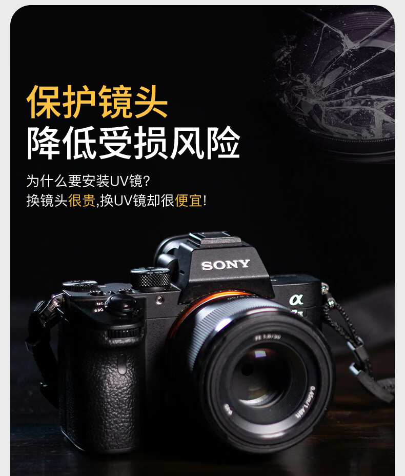 Protective lens HD UV mirror protective mirror SLR mirrorless camera lens protective mirror anti-fall high-transmission filter suitable for r50 small spittoon 49 52 67 77 82mm HD PRO UV protective mirror 58mm