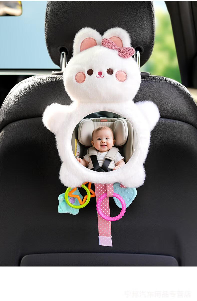 Shang Xingzhe Safety Seat Observation Mirror Baby Car Interior Rearview Mirror Car Baby Basket Mirror Car Rear Children Reverse Mirror Bowtie White Rabbit HD Curved Mirror Wider View