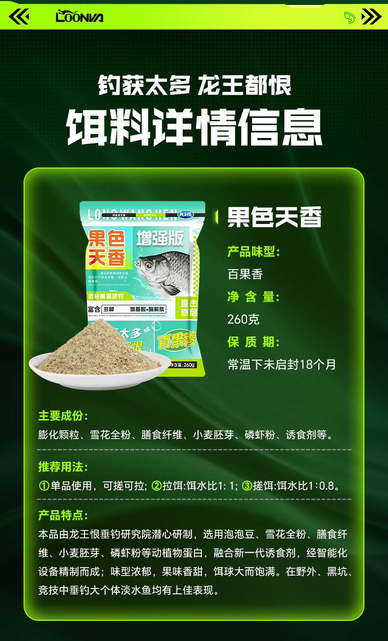 The Dragon King Hates Fishing Bait High-grade blue crucian carp fishy aroma wine rice bait River black pit wild fishing crucian carp green grass bream fishing bait High-grade blue crucian carp * fishy aroma + wine rice (300g) * 1