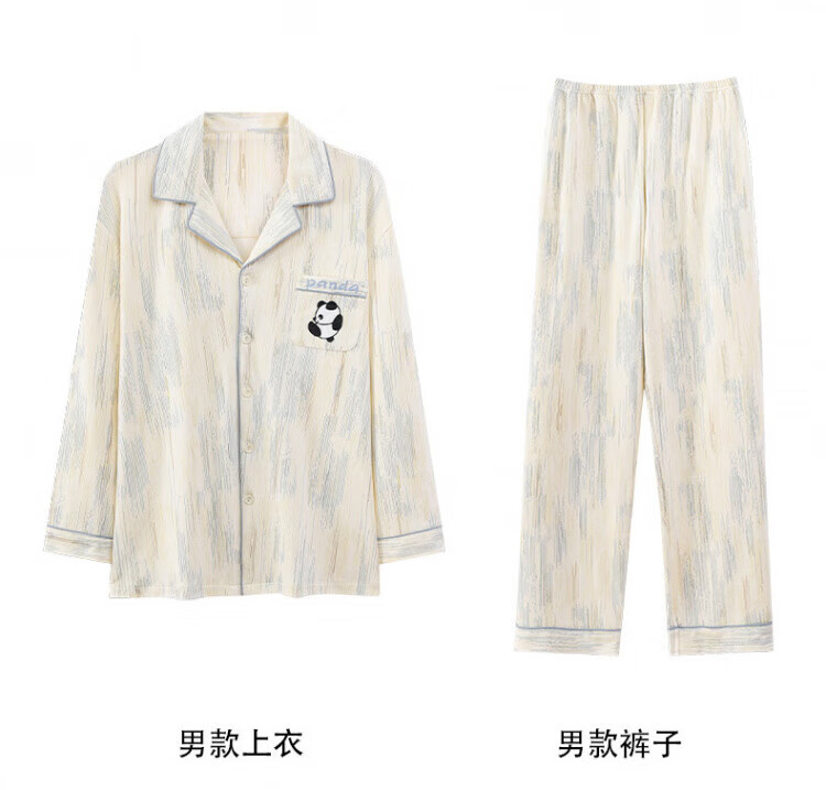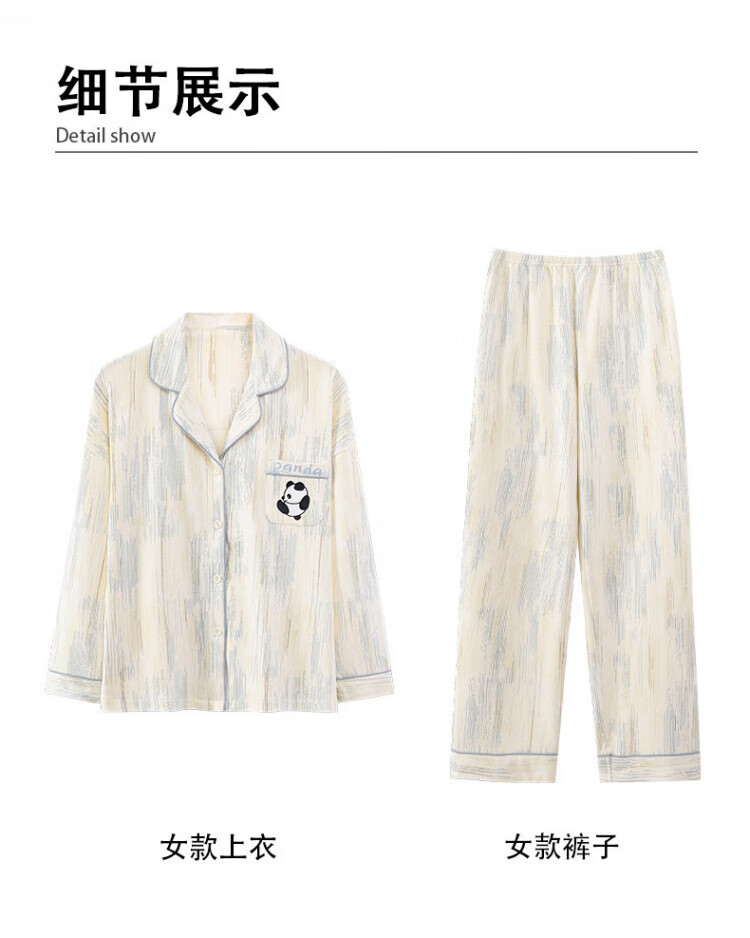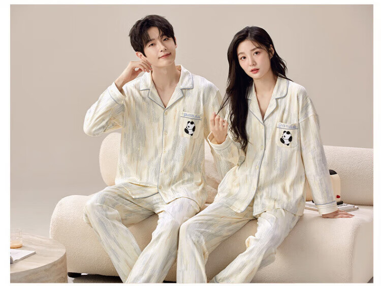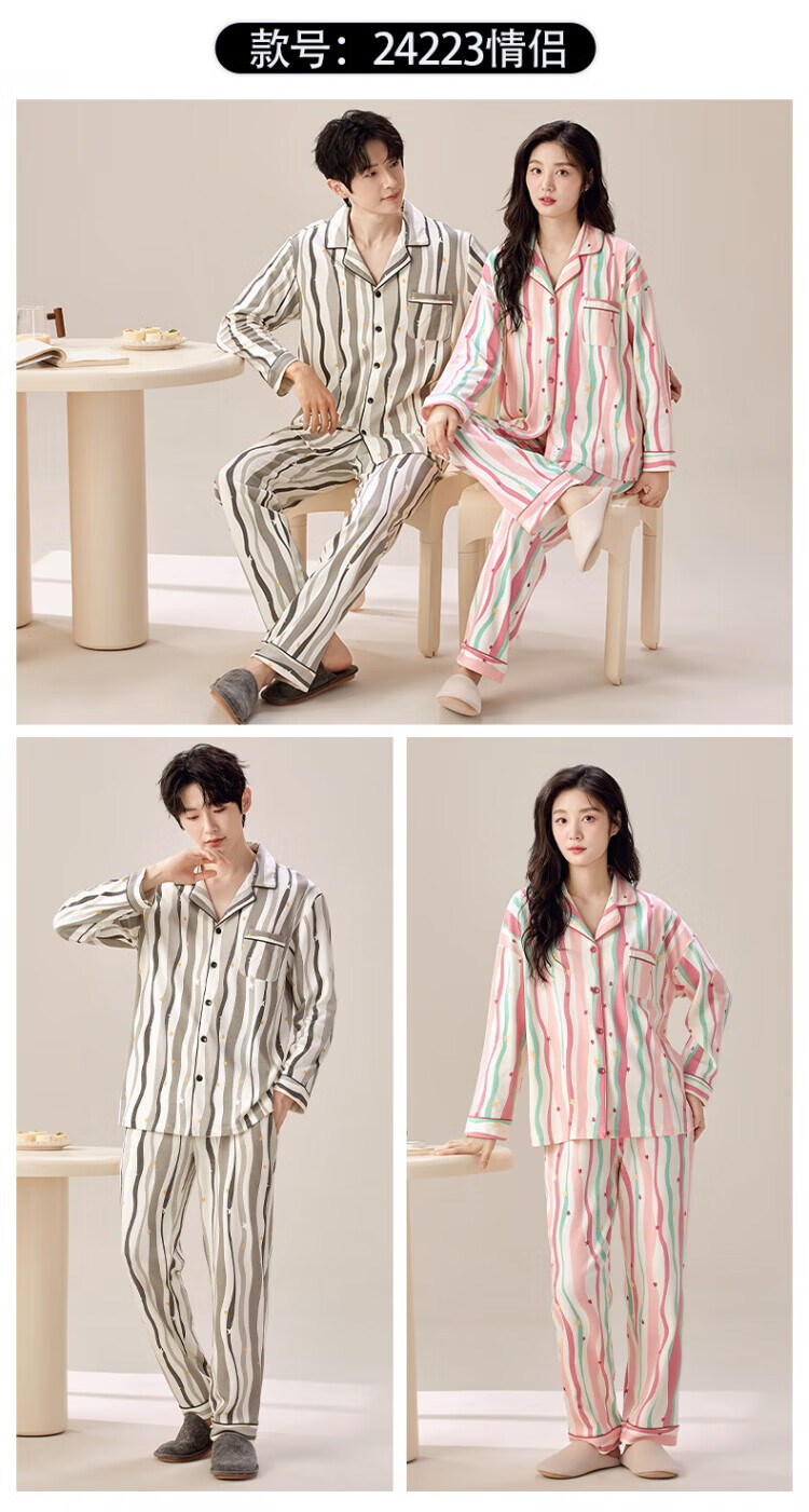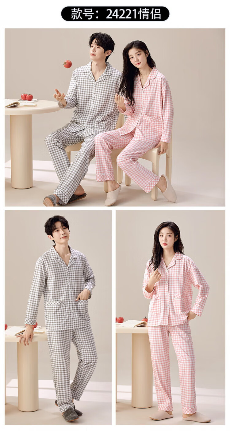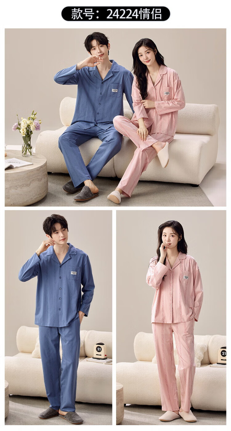 MiiOW Couple Pajamas Pure Cotton Lapel Cardigan Long Sleeve Korean Version with Breast Pad Women's Plus Size Men's Autumn and Winter Home Clothing Set T-24222 M Female 80-95Jin Jin is equal to 0.5 kg