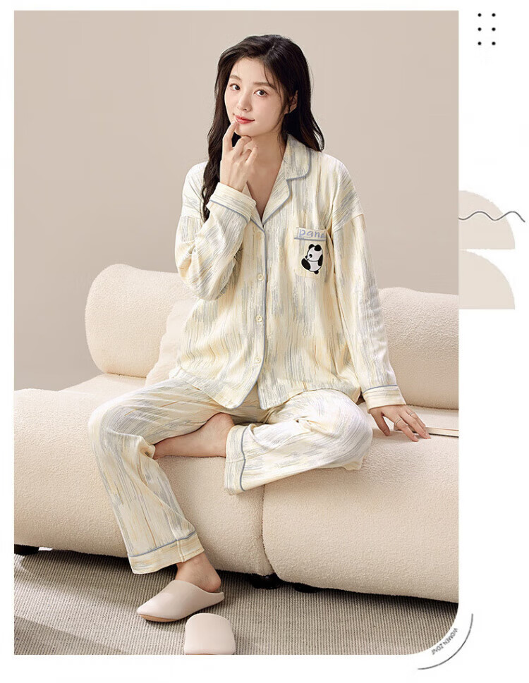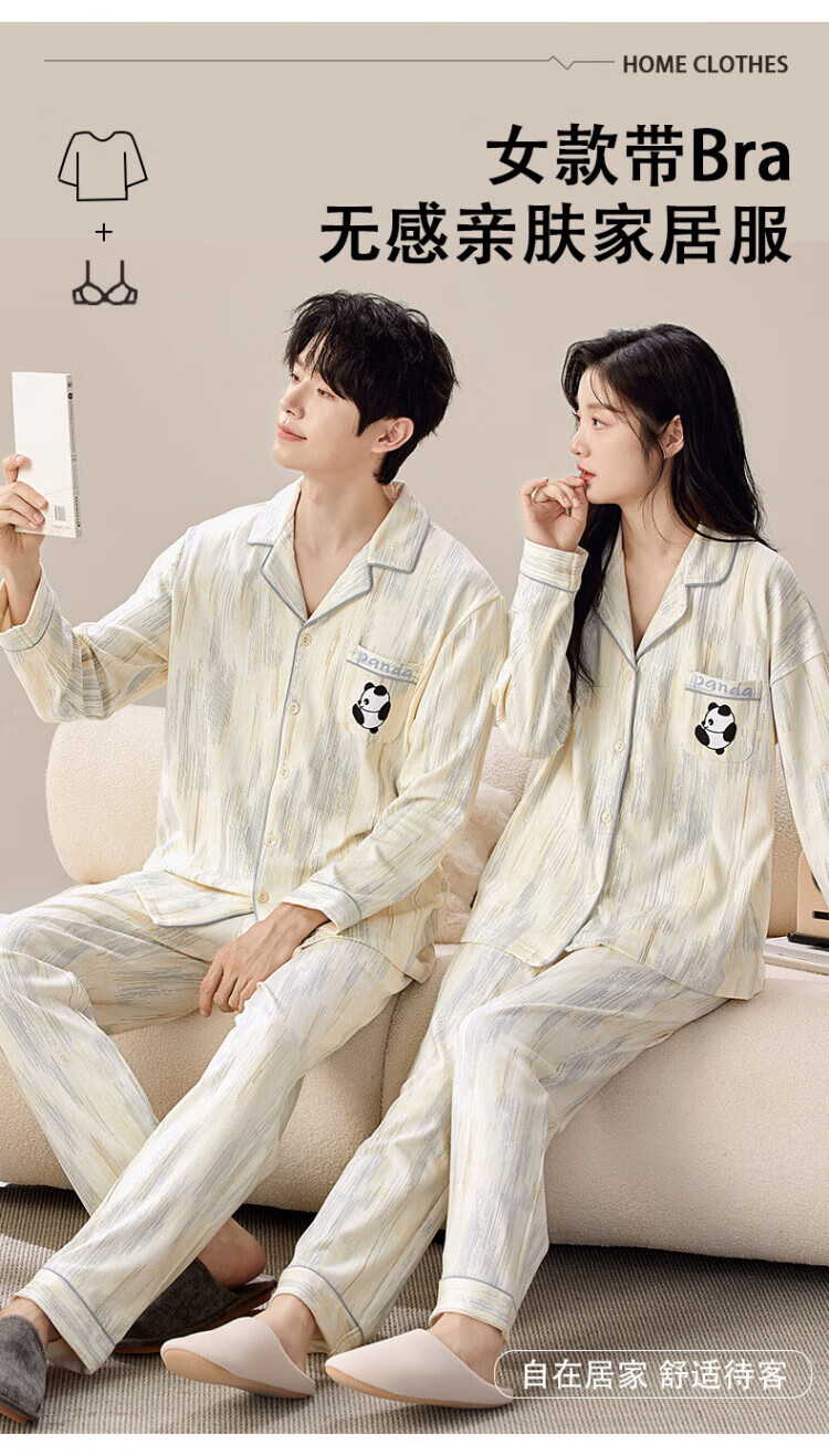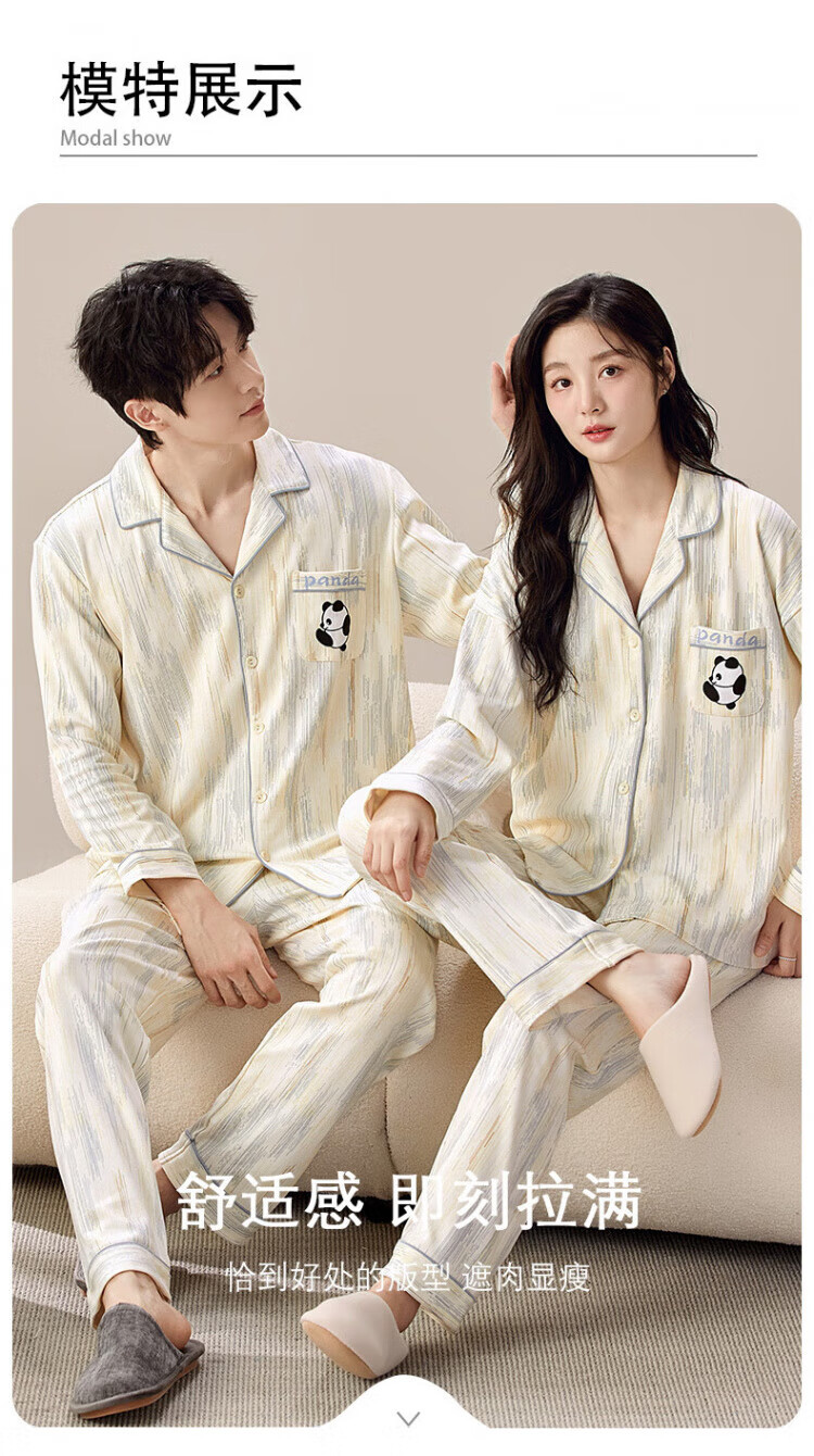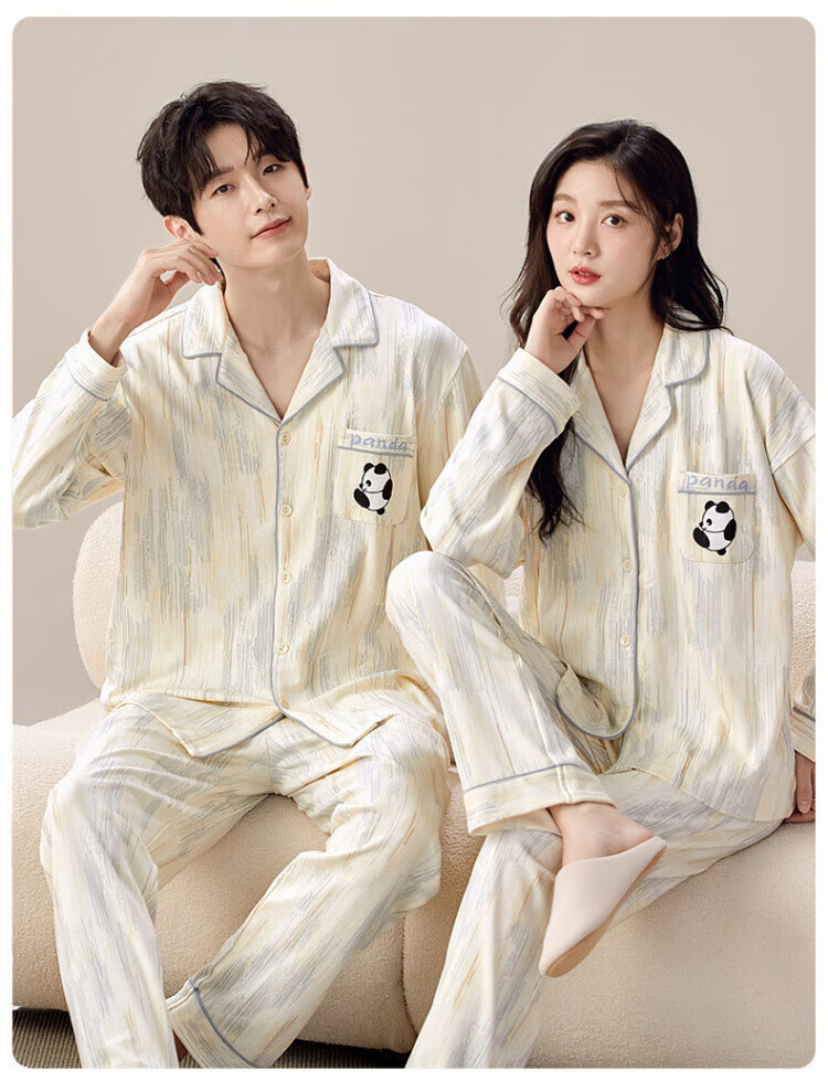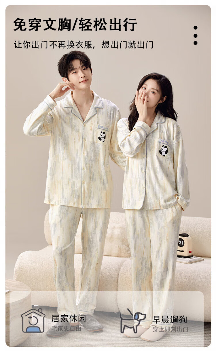 MiiOW Couple Pajamas Pure Cotton Lapel Cardigan Long Sleeve Korean Version with Breast Pad Women's Plus Size Men's Autumn and Winter Home Clothing Set T-24222 M Female 80-95Jin Jin is equal to 0.5 kg