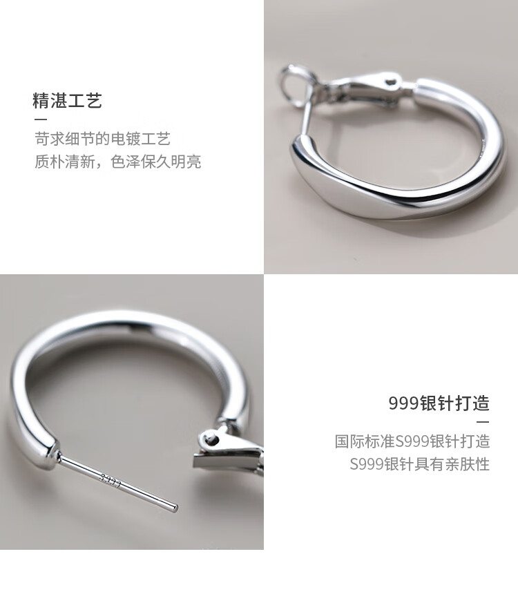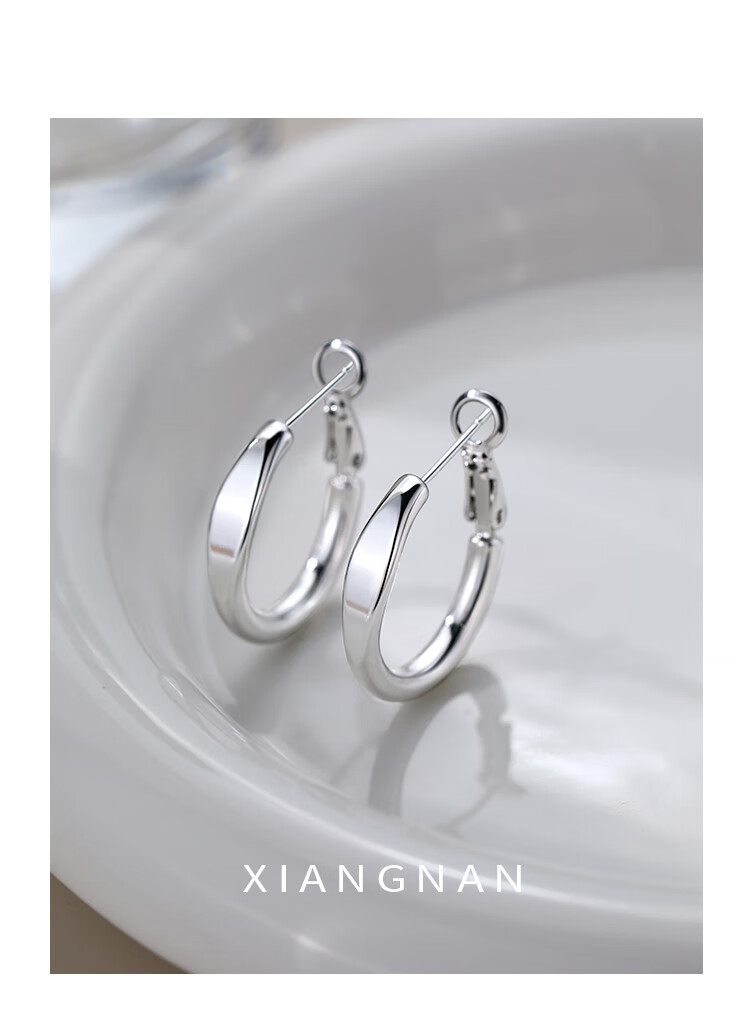 Xiangnan 999 silver needle hoop earrings, high-end women's hoops, 2025 new popular ins niche light luxury earrings, earrings, earrings, 999 silver needle hoop earrings, small size (pair)