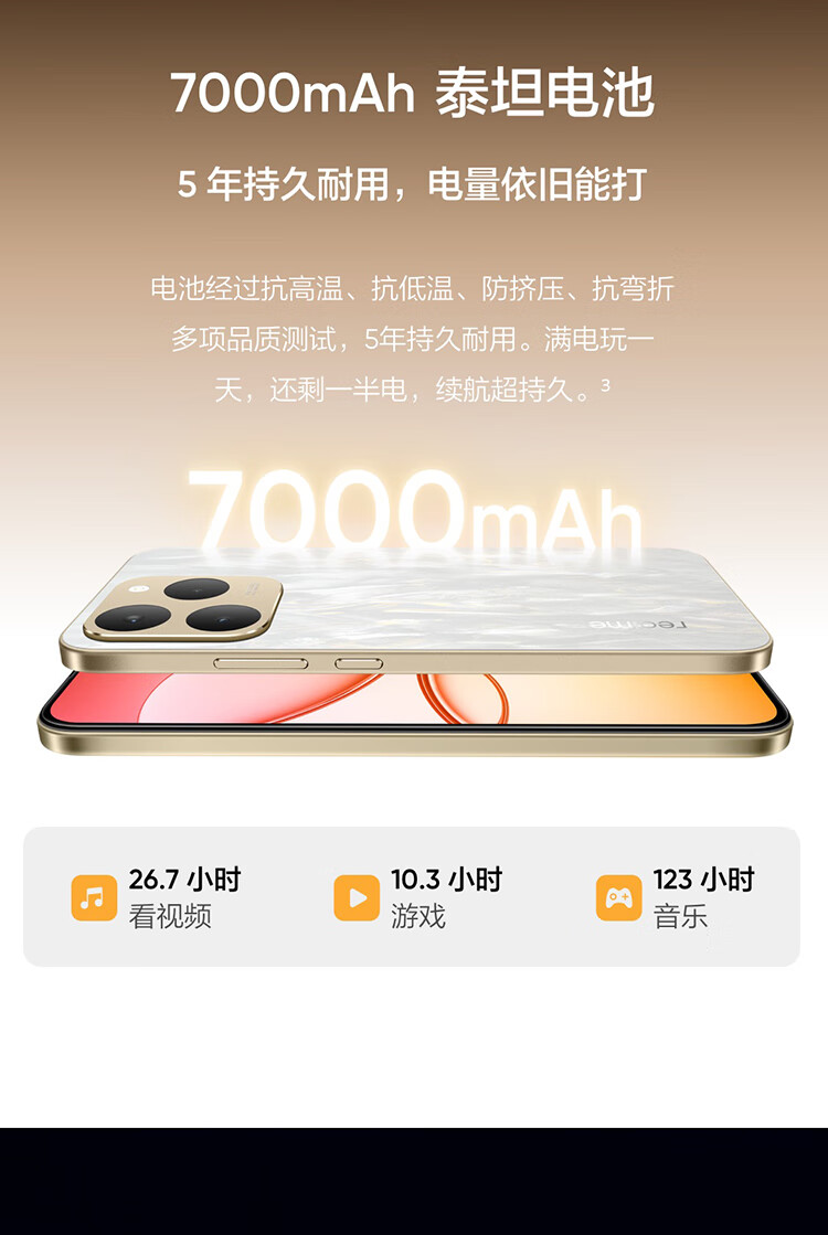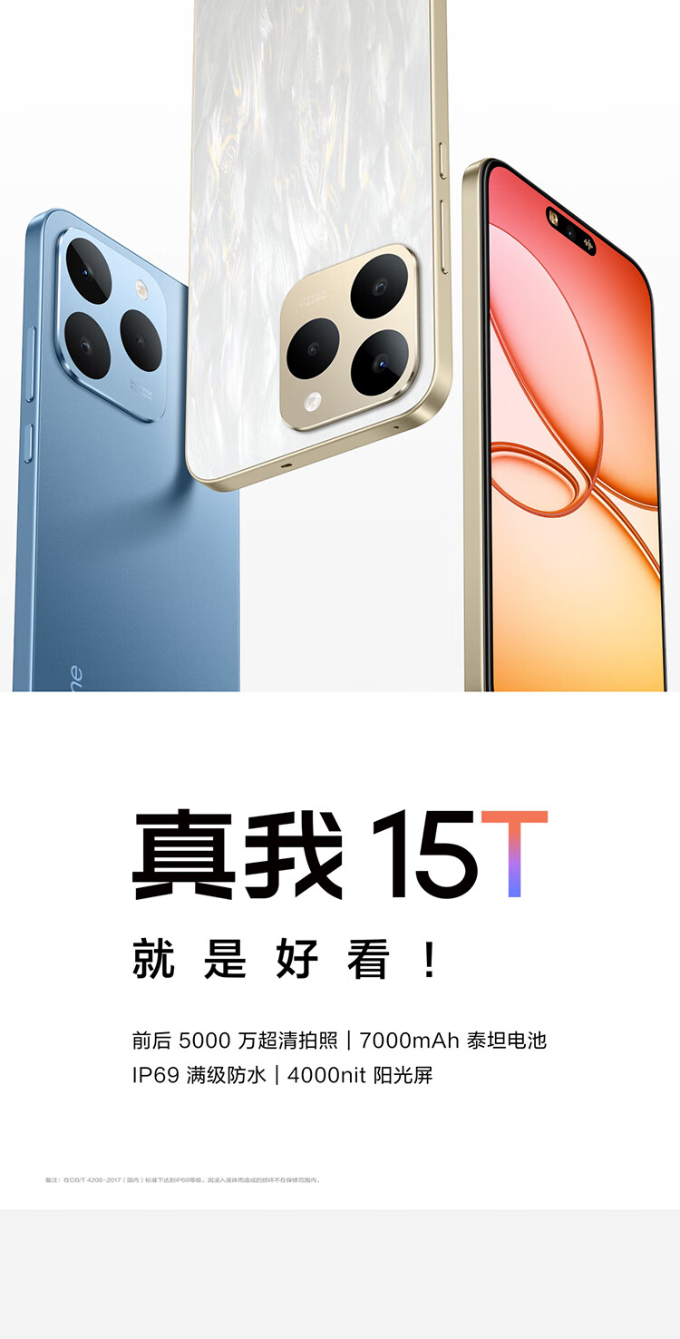 Realme 15T super small direct screen IP69 waterproof and durable 7000mAh long battery life thin and light smart camera AI phone streamer white 8GB+128GB