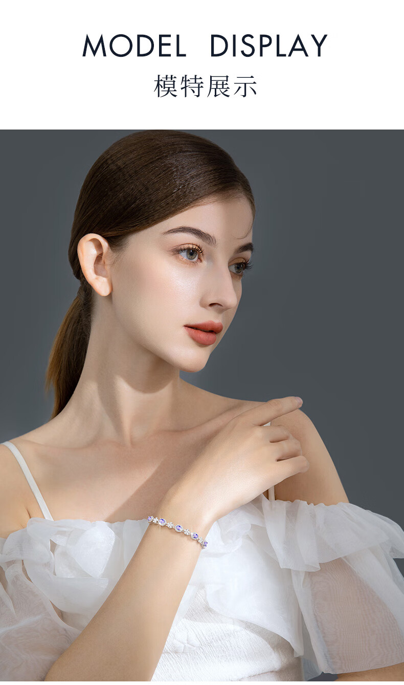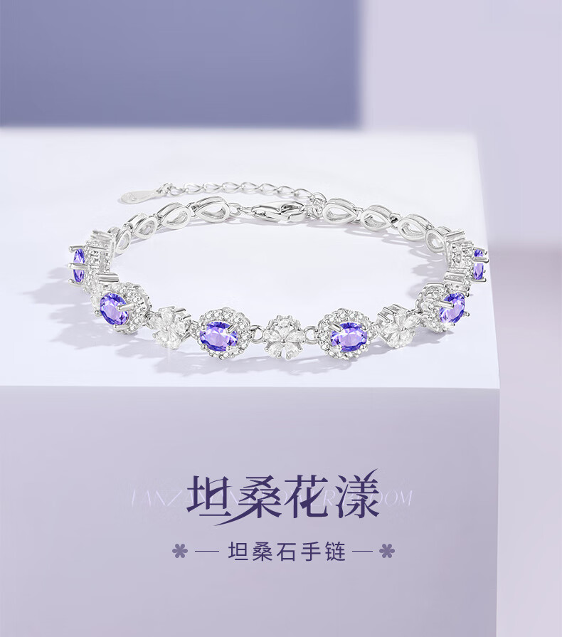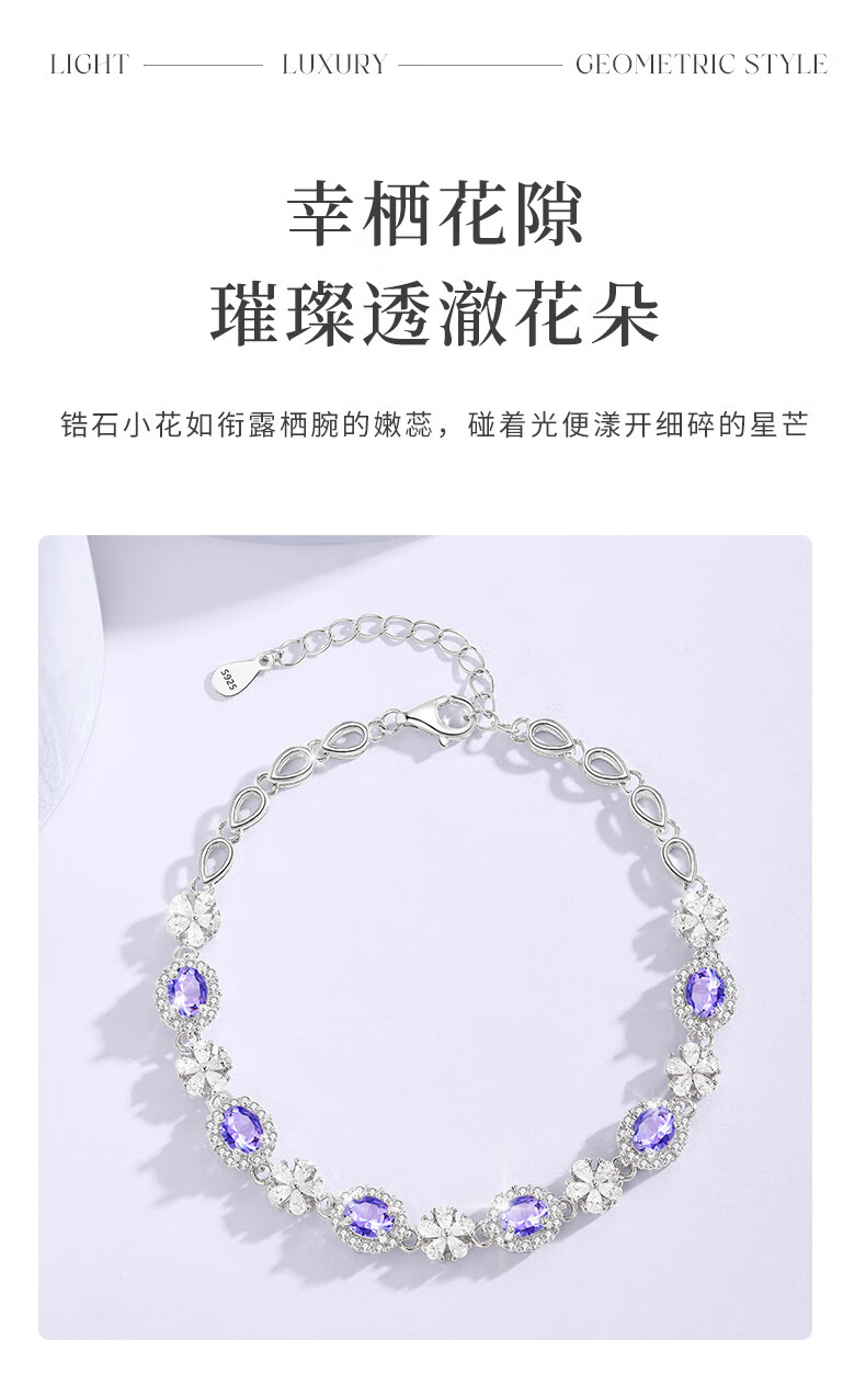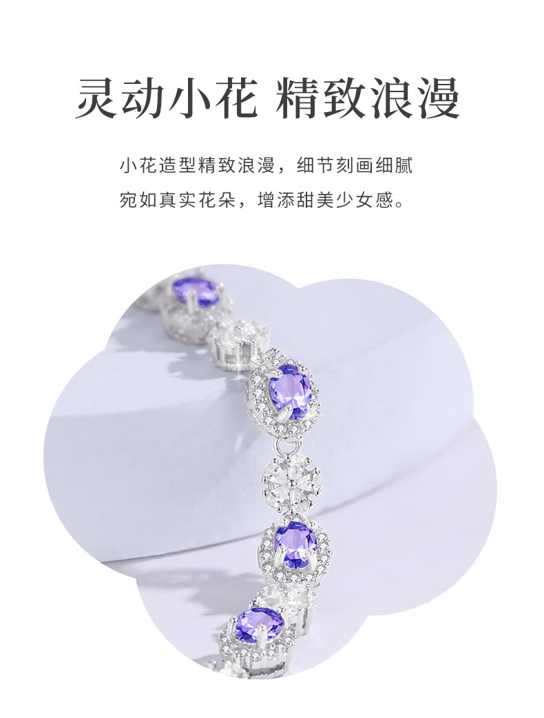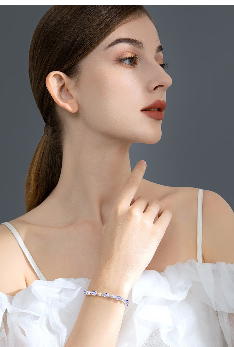 Helena (HR) light luxury girls' crystal bracelet, fashionable and high-end jewelry, practical heart-shaped Christmas and Valentine's Day birthday gift, Tanzanite-Tanzania Flower Bracelet