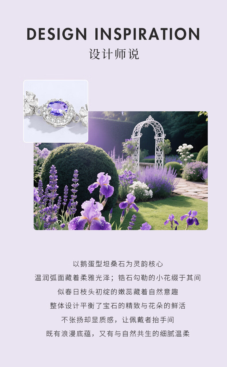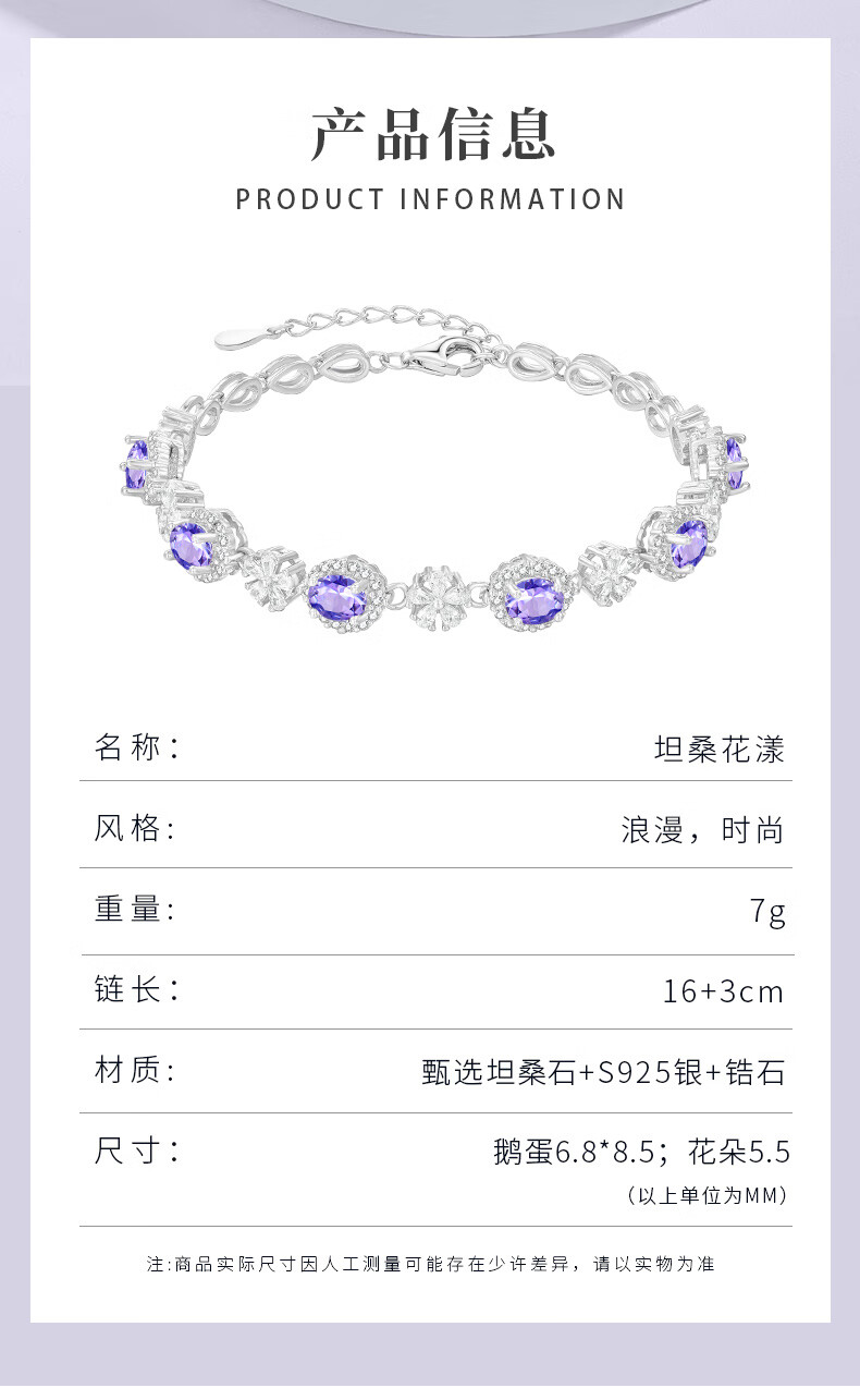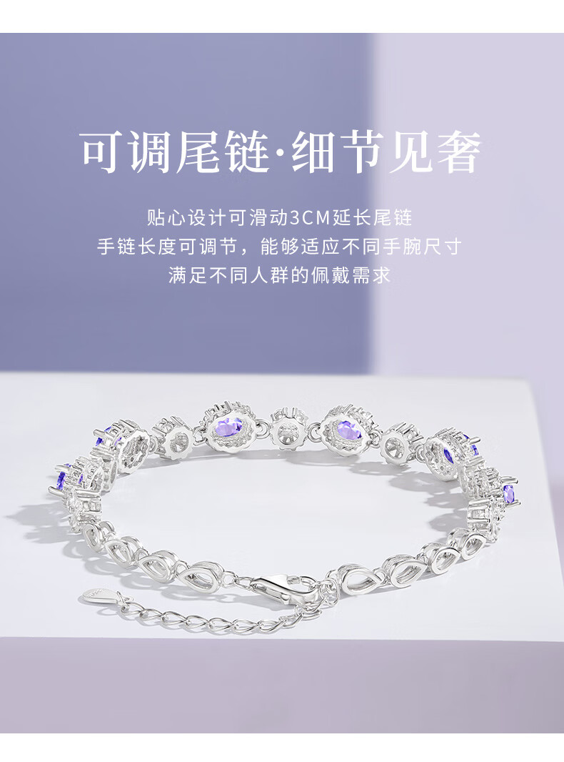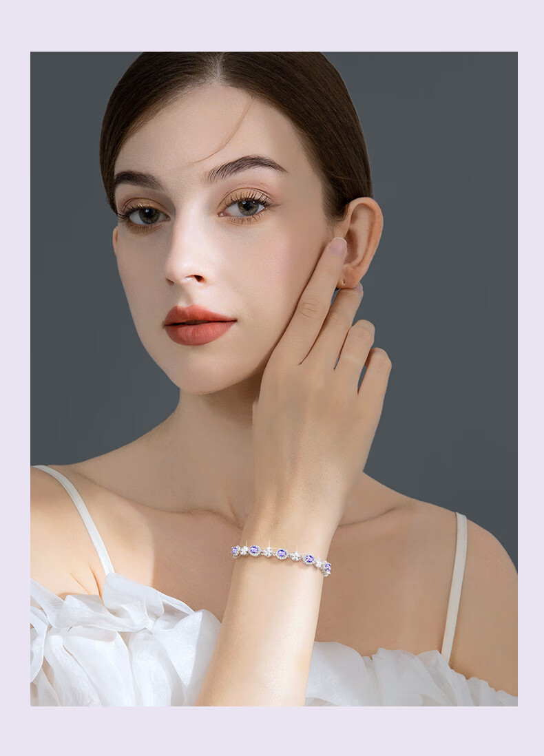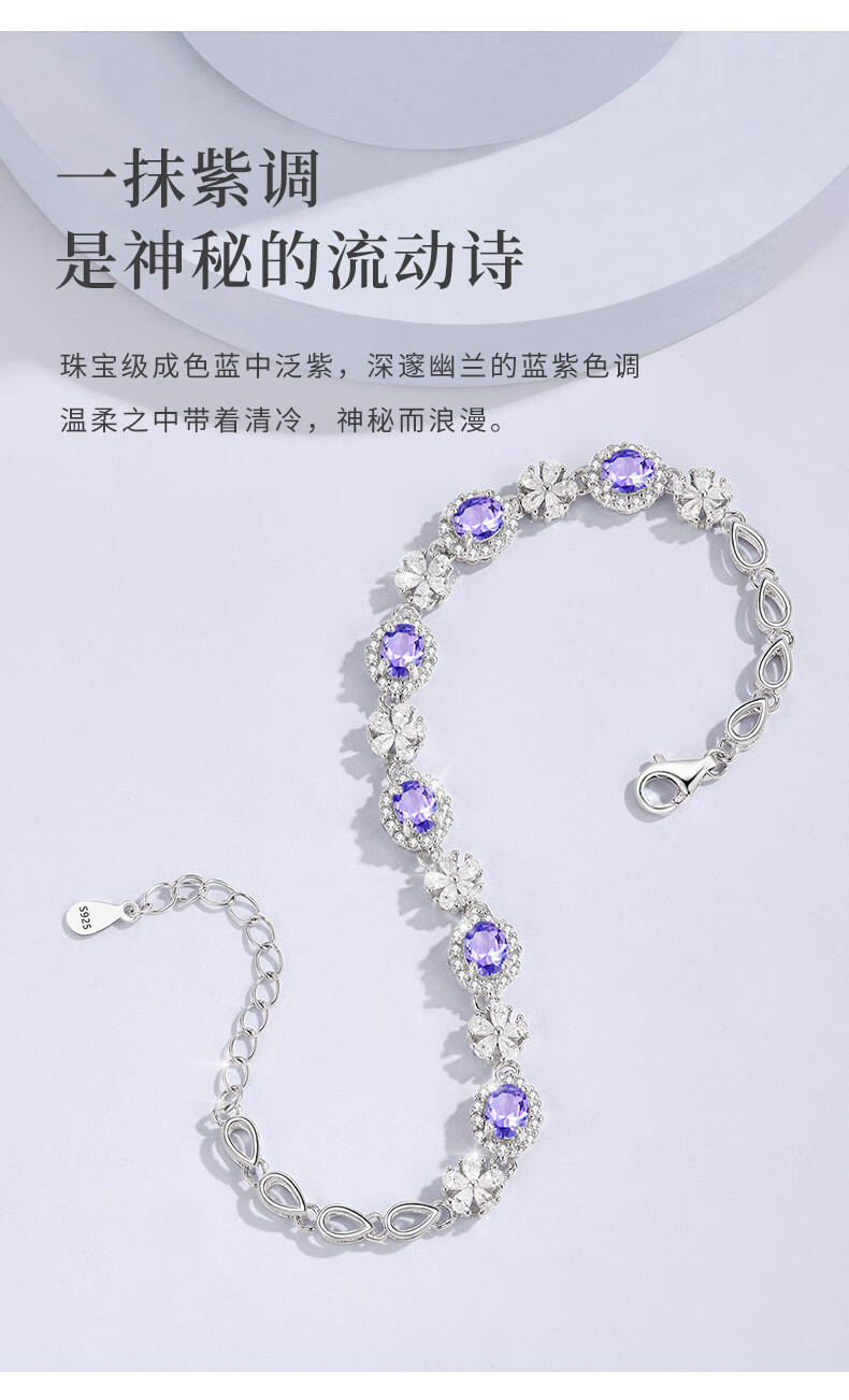 Helena (HR) light luxury girls' crystal bracelet, fashionable and high-end jewelry, practical heart-shaped Christmas and Valentine's Day birthday gift, Tanzanite-Tanzania Flower Bracelet