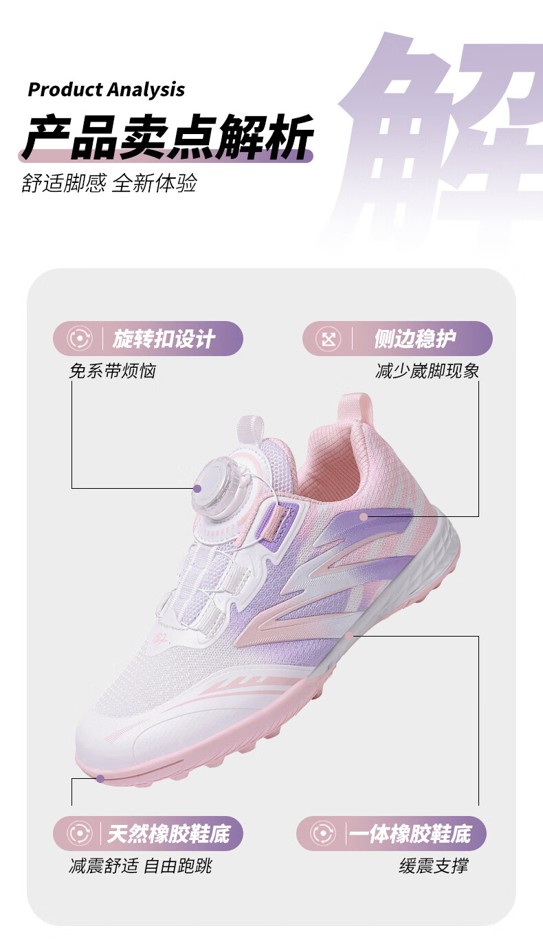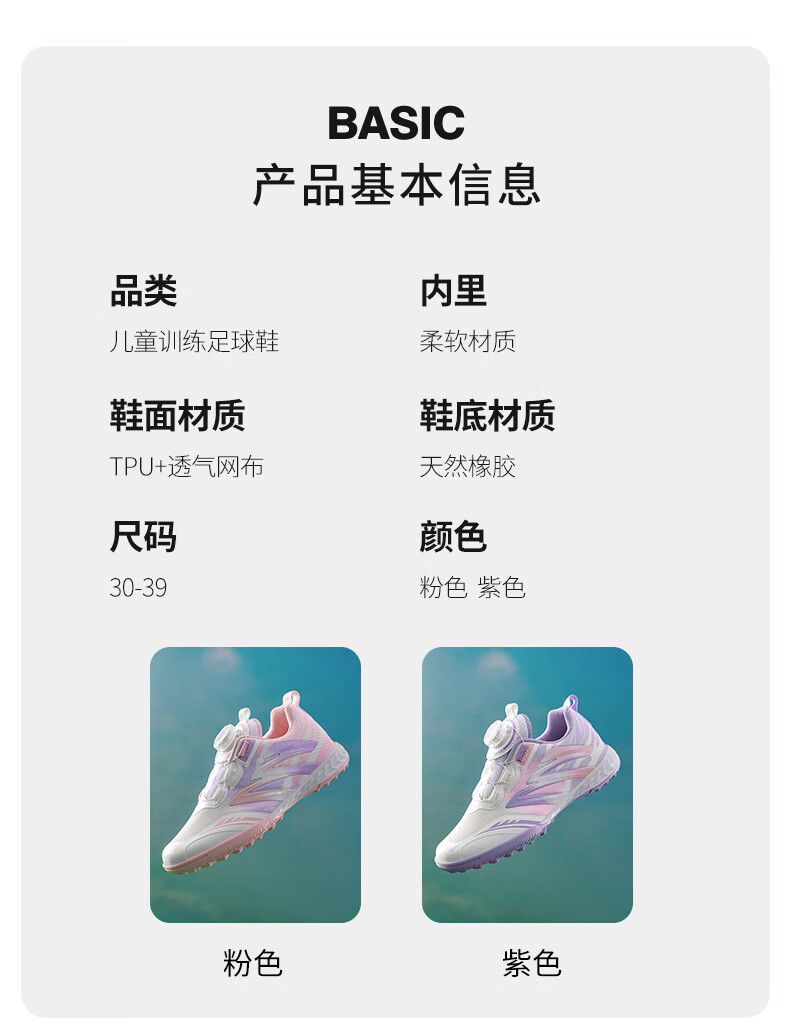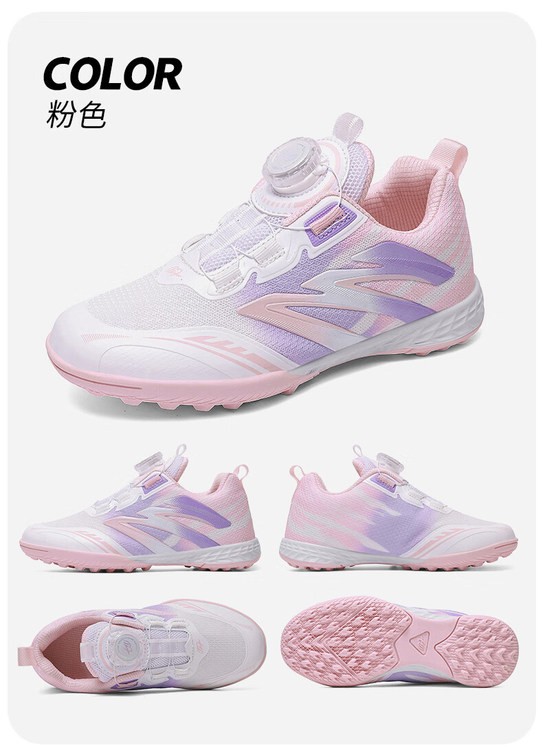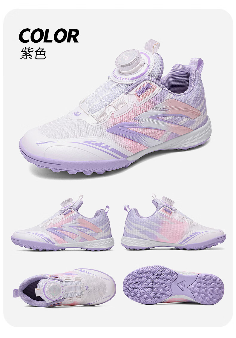 Children's Football Shoes New Swivel Buckle Elementary School Girls' Short Nails Anti-Slip Training Shoes Purple 35