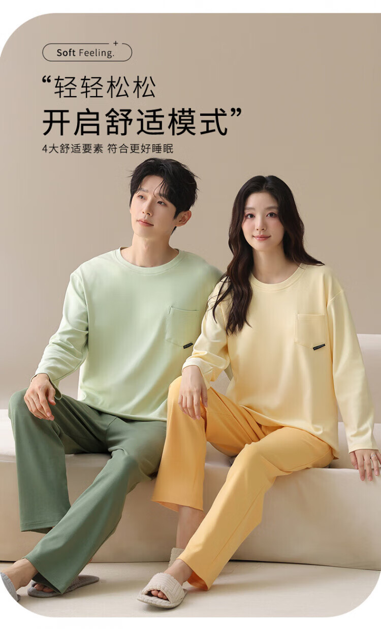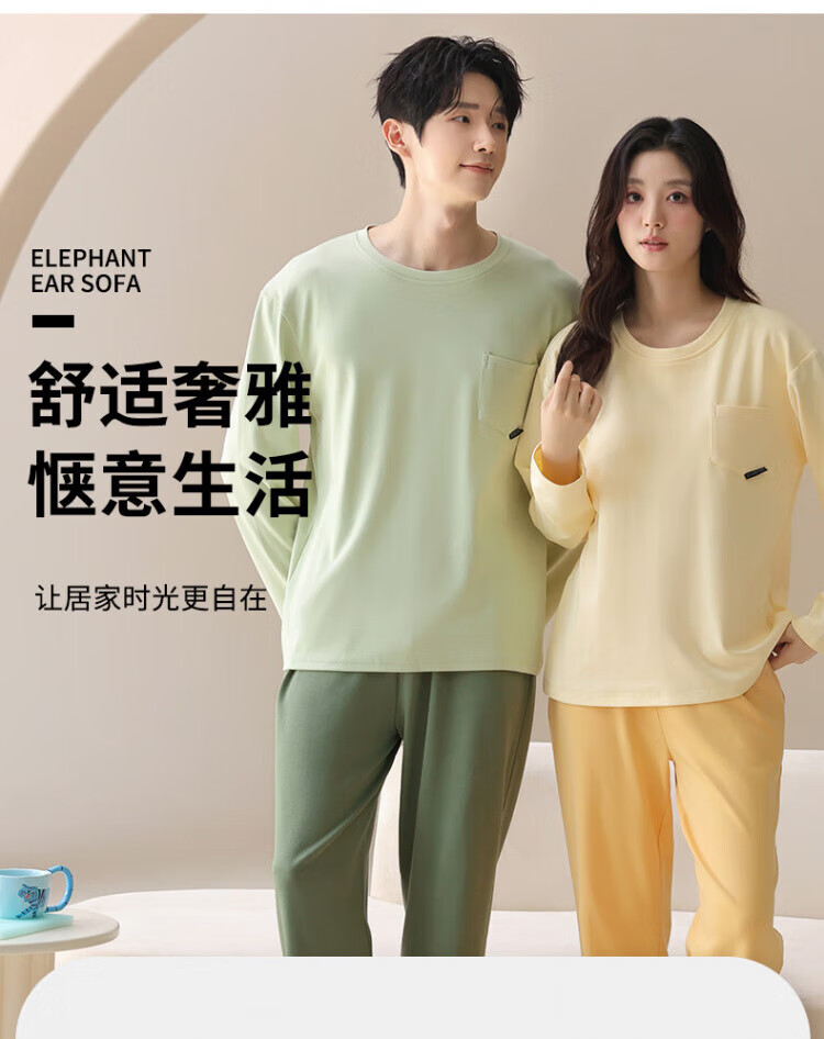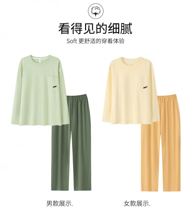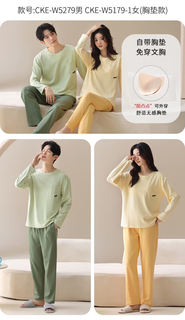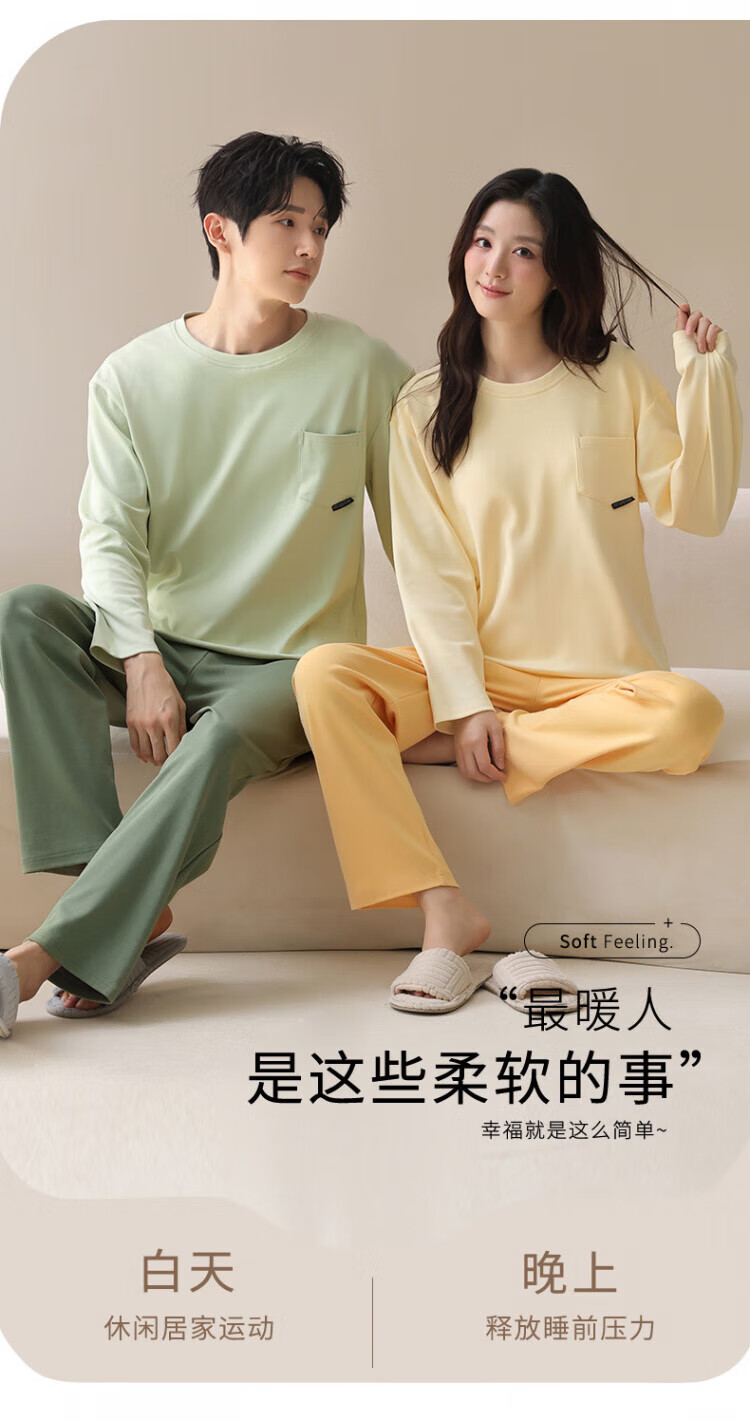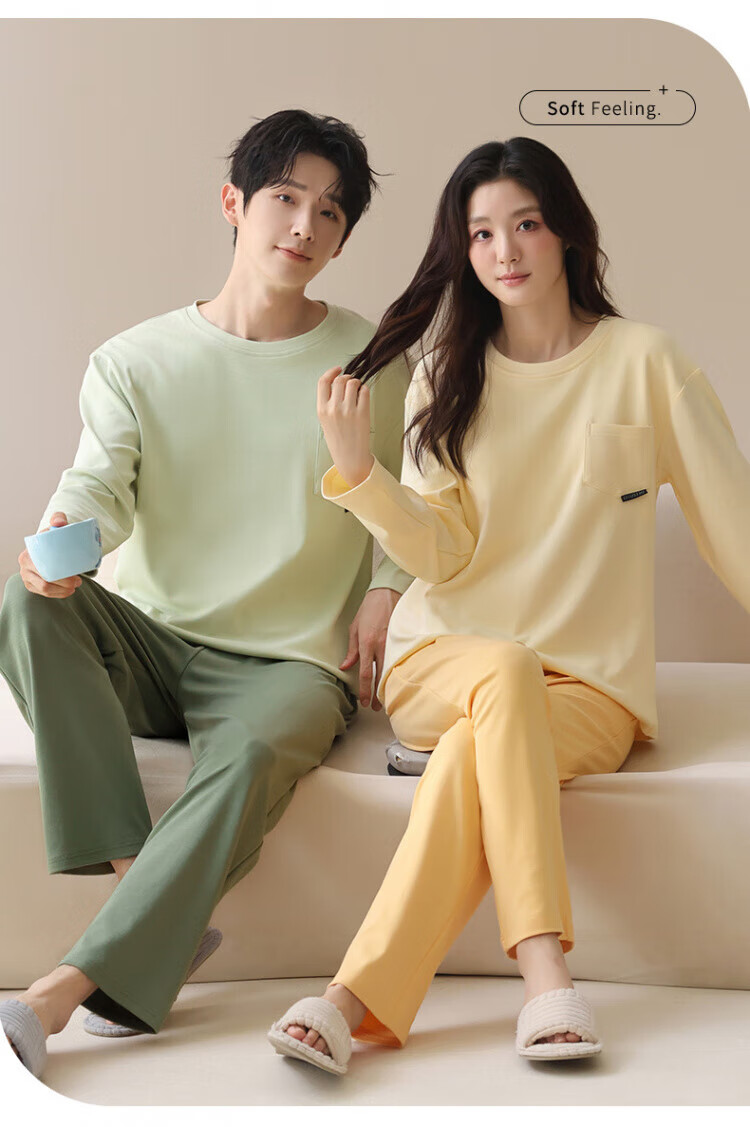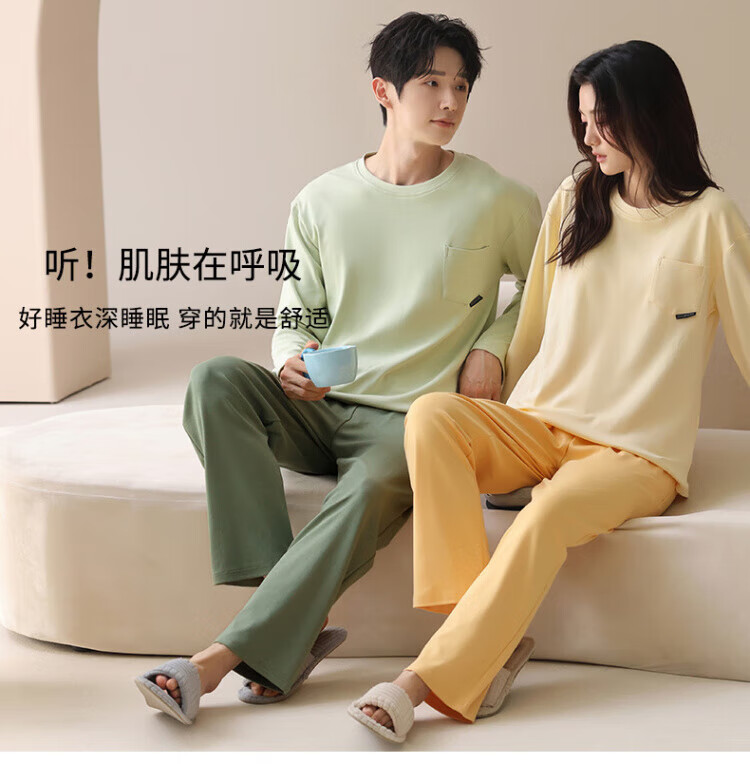 MiiOW Pure Cotton Pajamas Men's Spring and Autumn Long Sleeve Four Seasons Women's Autumn Style With Breast Pad Can Be Weared Out Full Cotton Home Clothes Set CKE-W5179A No Breast Pad M