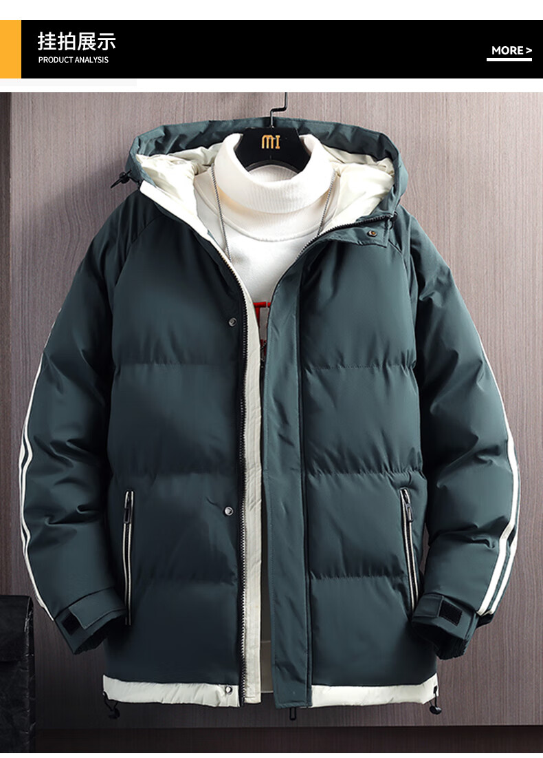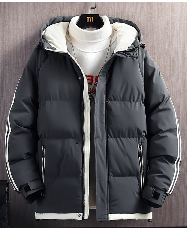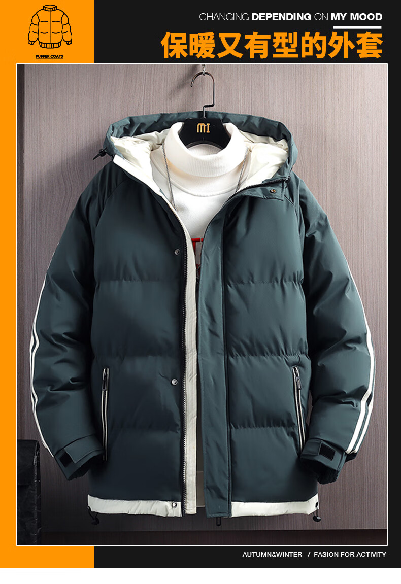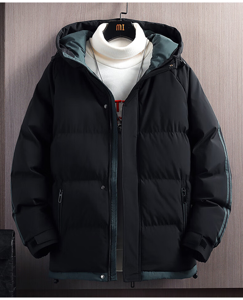 Cotton-padded jacket for men in autumn and winter, thickened cotton-padded jacket, Korean style men's trendy student loose hooded bread coat, black 2XL