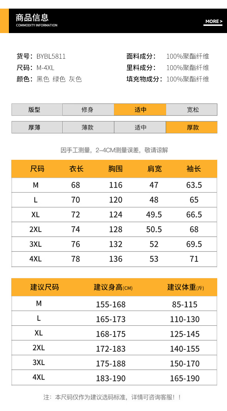 China (cm) 165 / 88-90 170 / 96-98 175 / 108-110 180 / 118-122 185 / 126-130