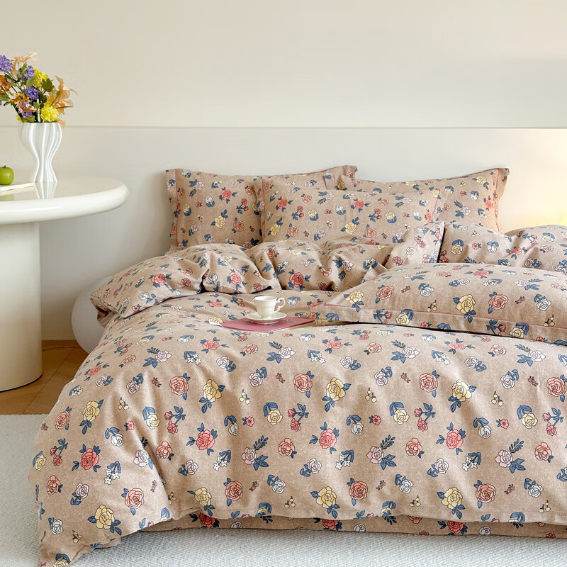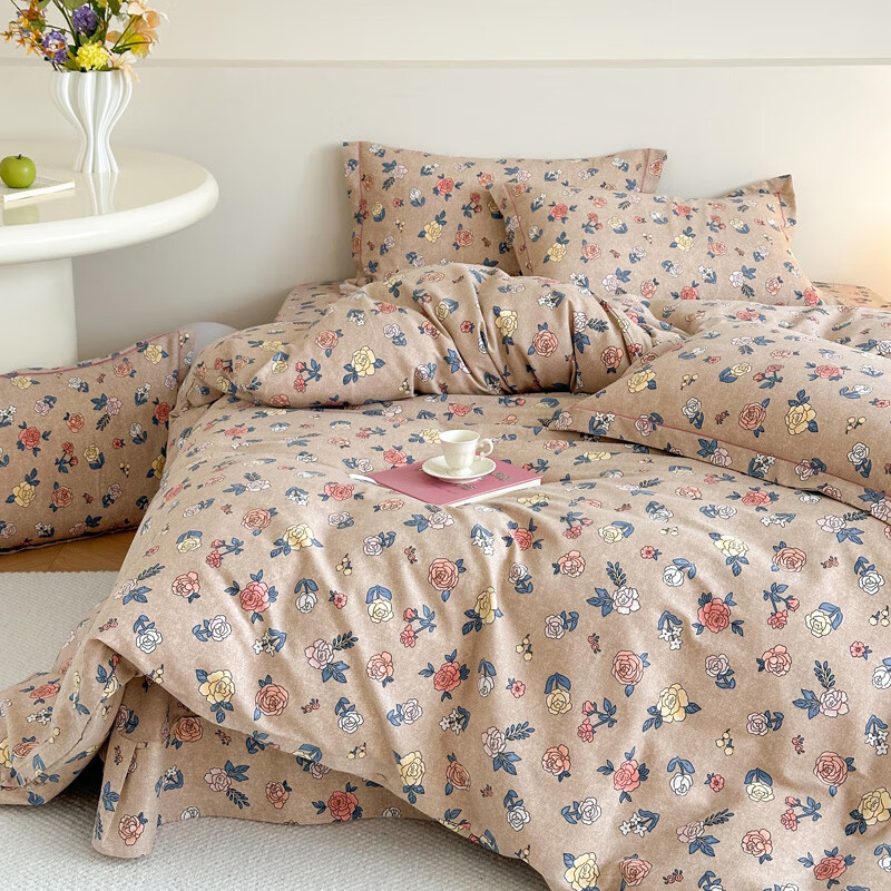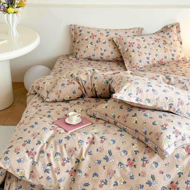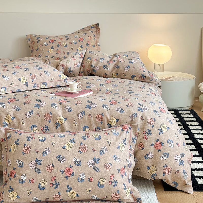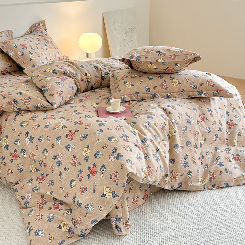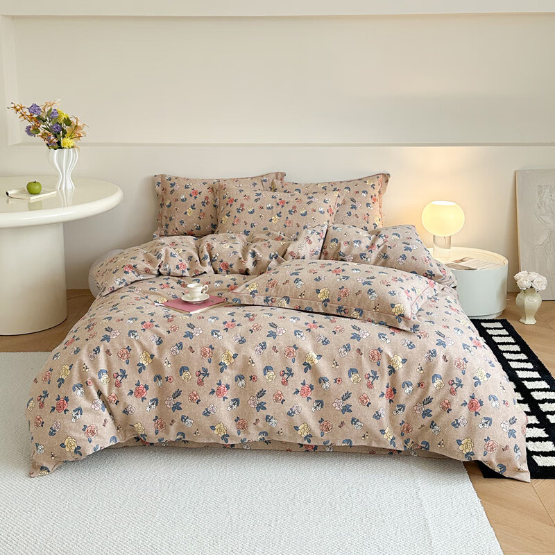 Mercury series pastoral style brushed four-piece set of pure cotton thickened autumn and winter cotton quilt cover sheets 2025 new bedding Sabei-note AA version 1.8m bed four-piece set 200*230