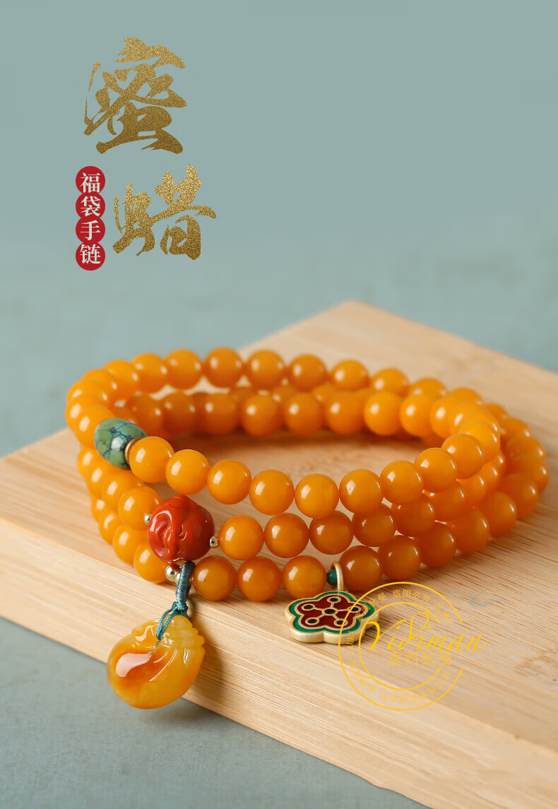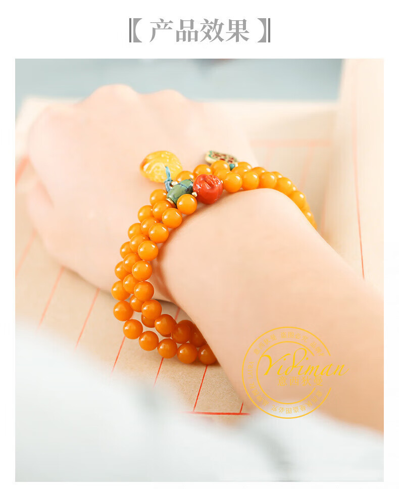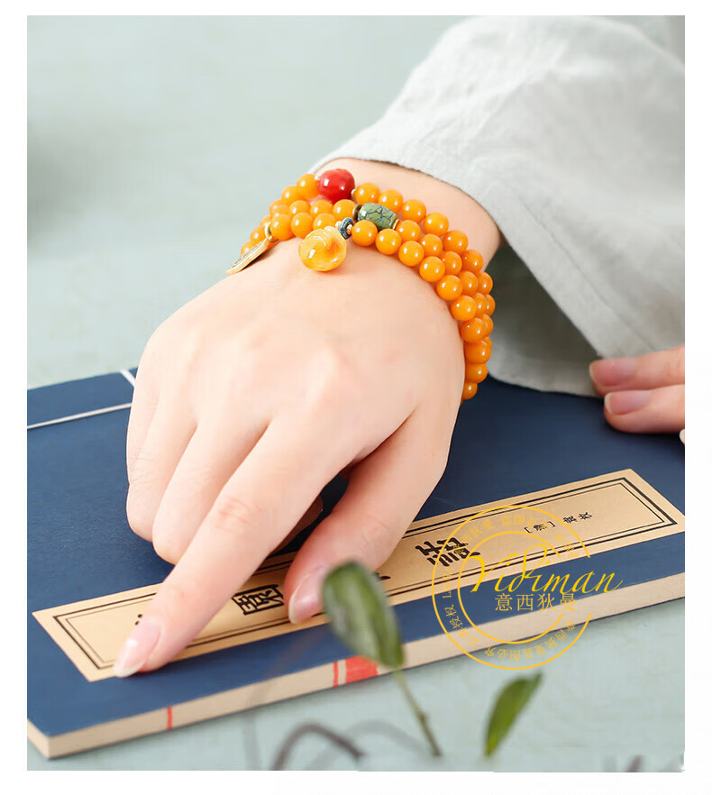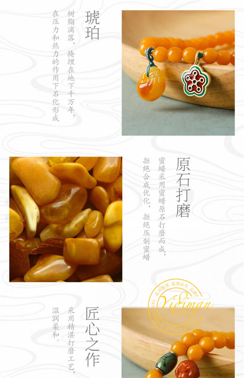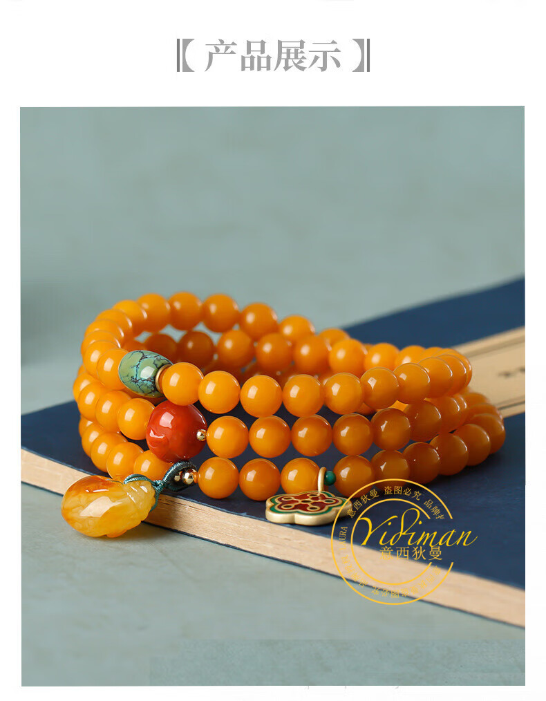 Italian Collection Grade Amber Beeswax Bracelet Multi-circle Bracelet Women's Chicken Oil Yellow Old Honey Bracelet Purse Multi-Bao Accessories Gift 6mm Three-circle Fidelity Beeswax (with Certificate)
