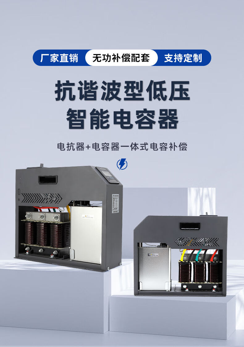 Intelligent anti-harmonic low-voltage capacitor reactive power compensation self-healing reactor plus capacitor integrated capacitor 480V-10KVAR-7 (total compensation)