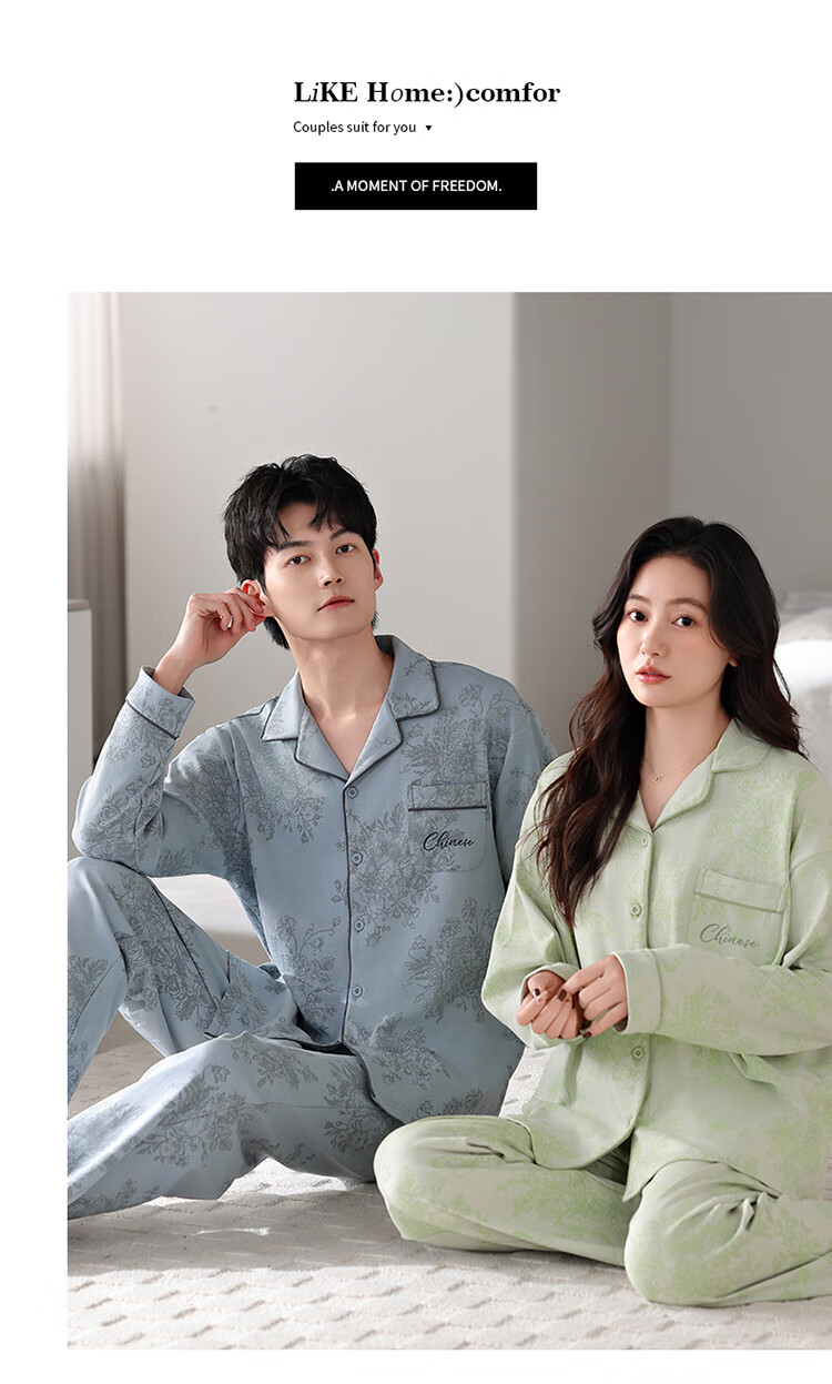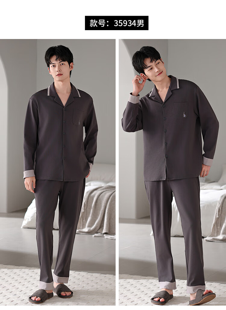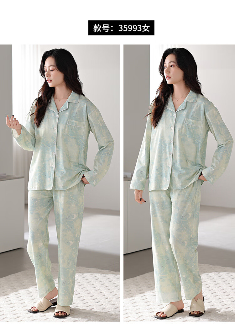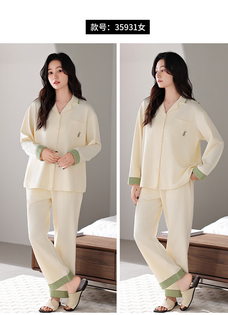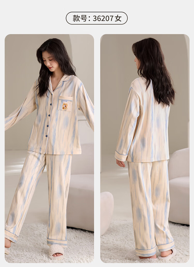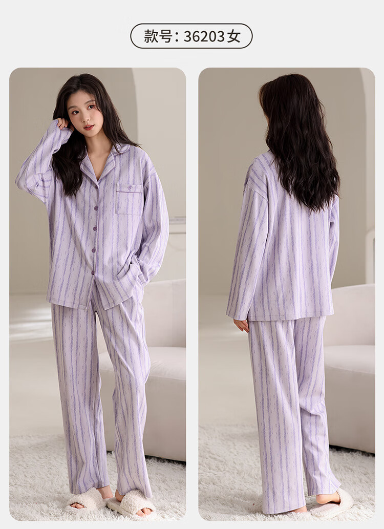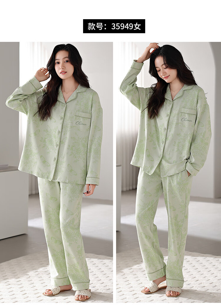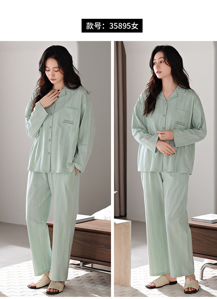 MiiOW new pajamas for women in autumn and winter pure cotton long-sleeved trousers cardigan lapel suit couple large size home wear can be worn outside A35969 female A35970 male M female