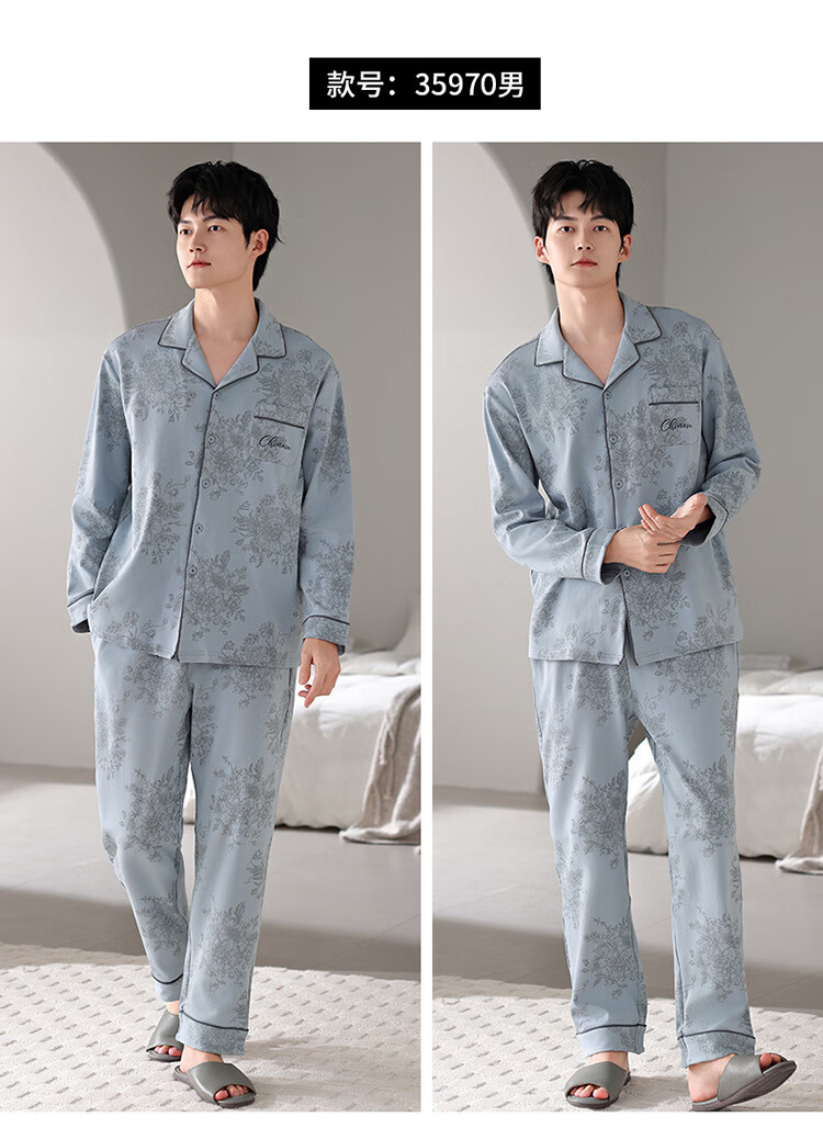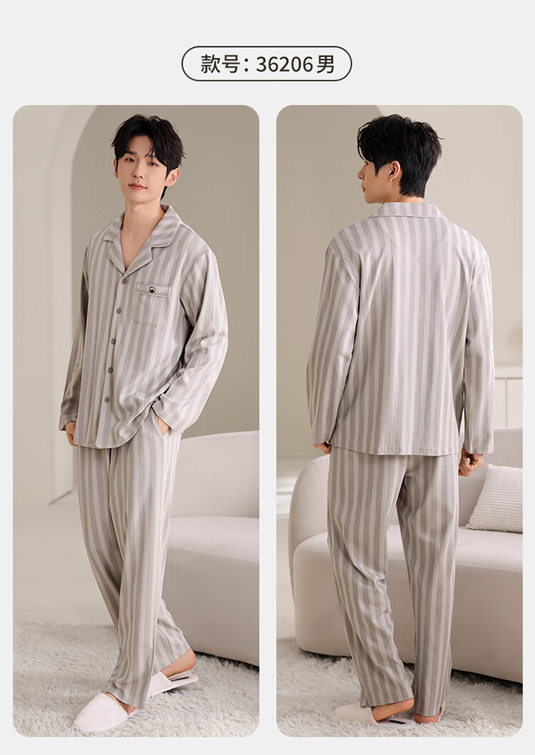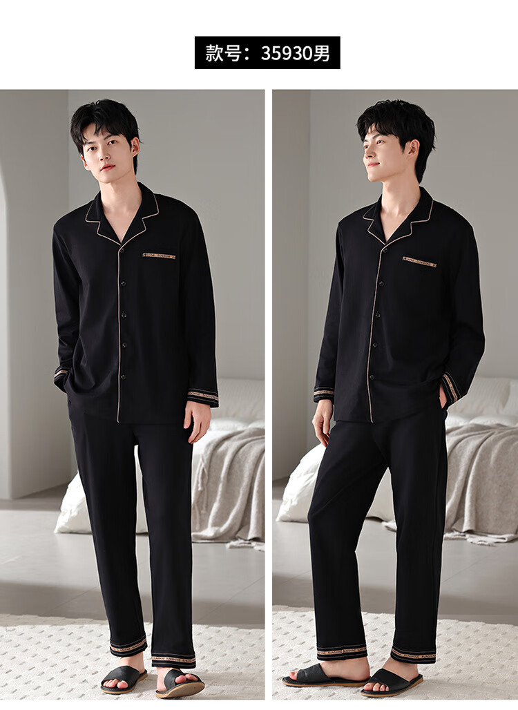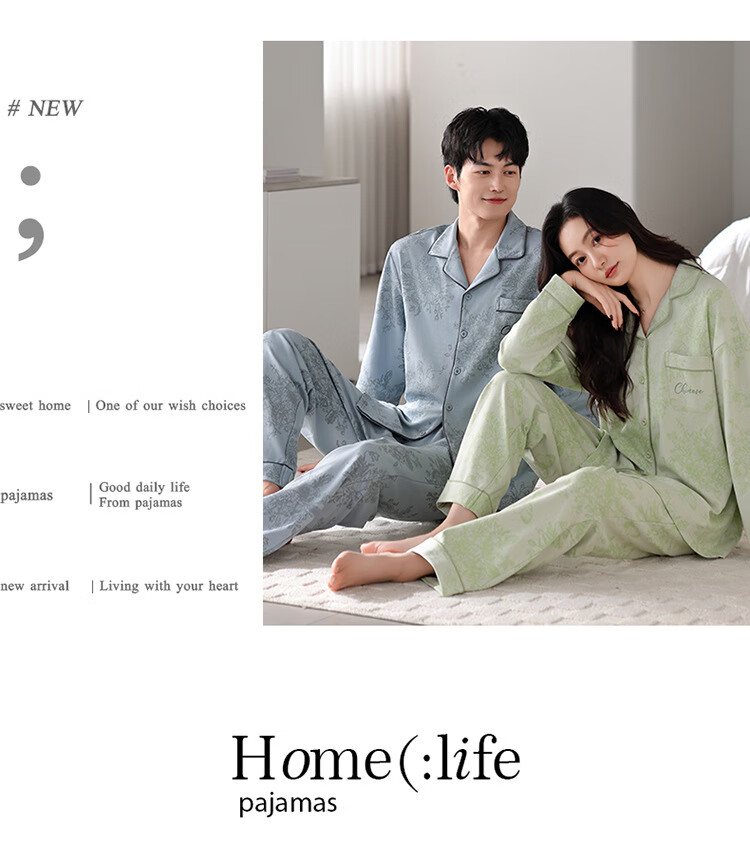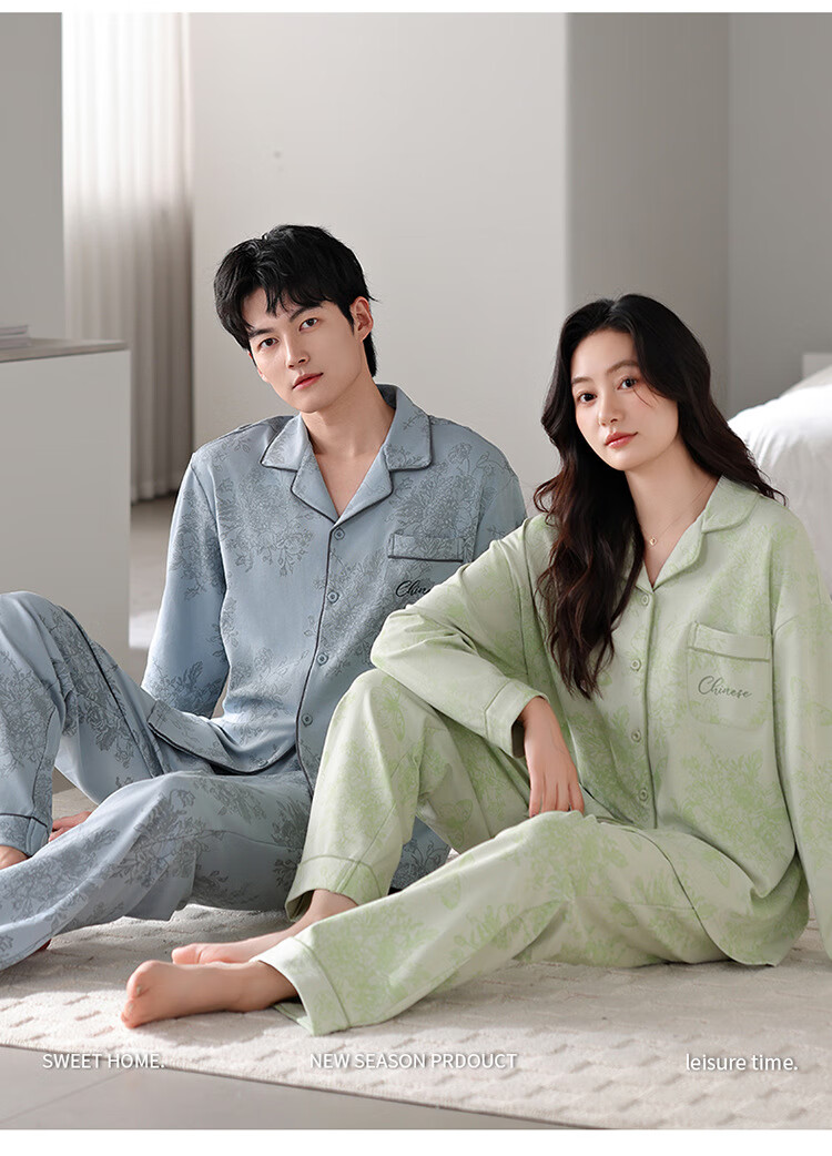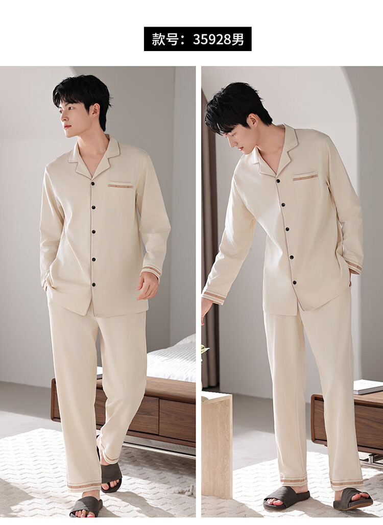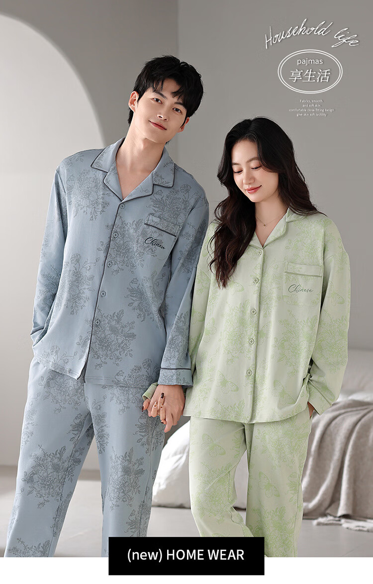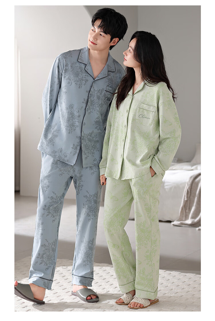 MiiOW new pajamas for women in autumn and winter pure cotton long-sleeved trousers cardigan lapel suit couple large size home wear can be worn outside A35969 female A35970 male M female