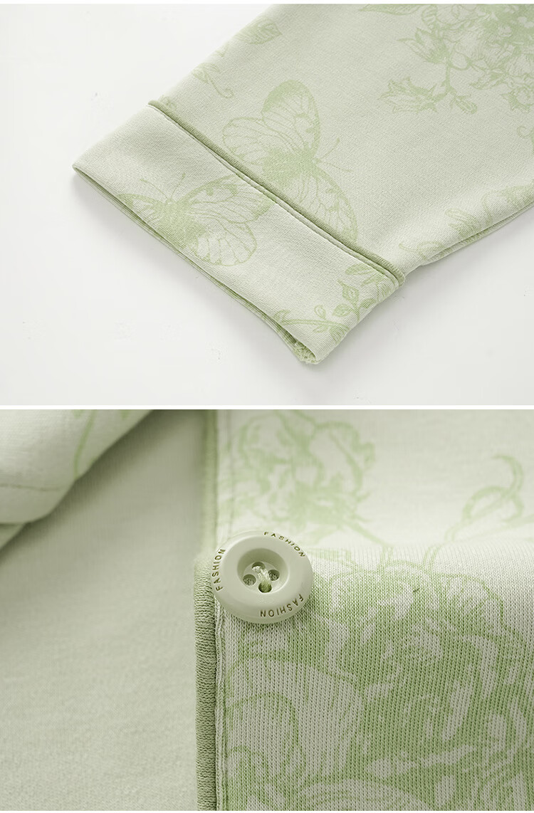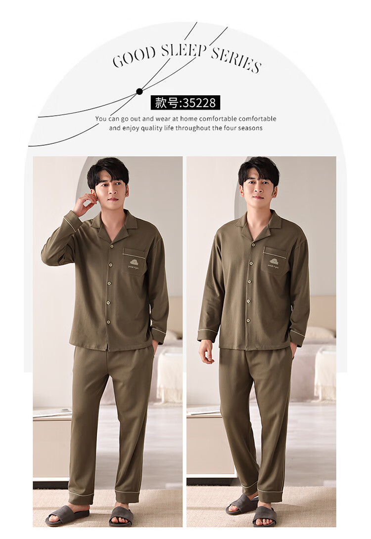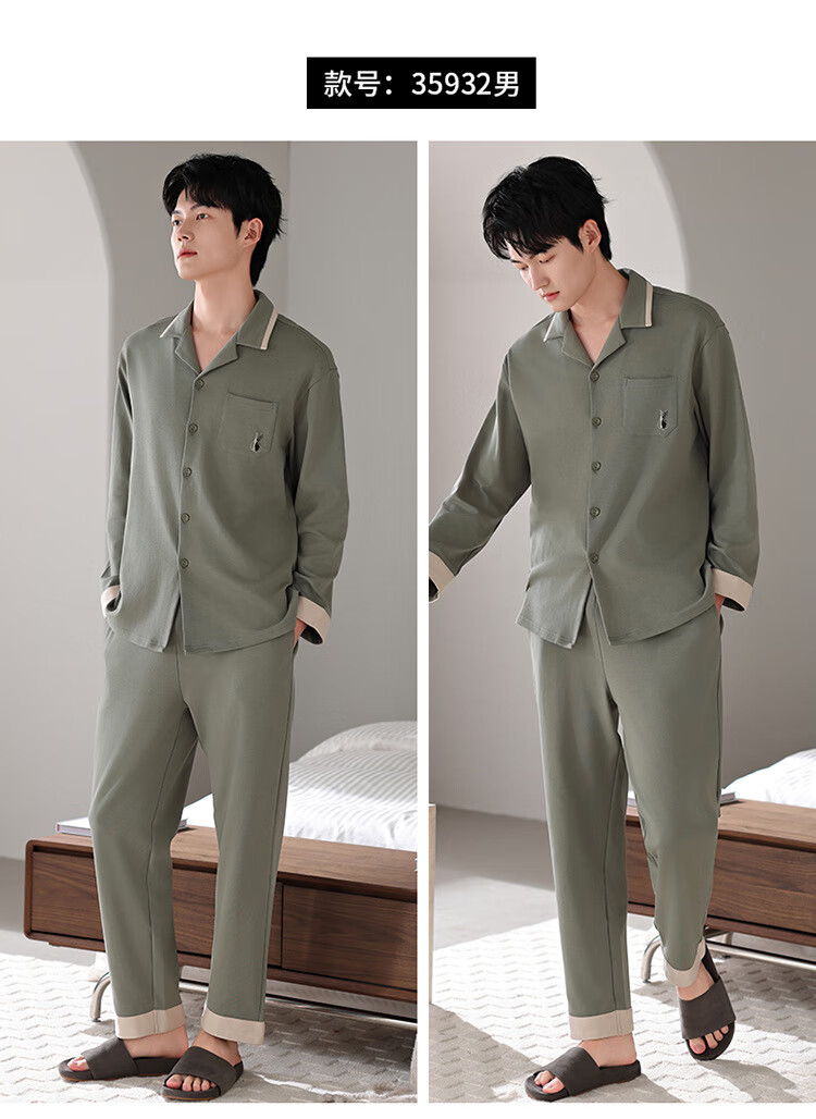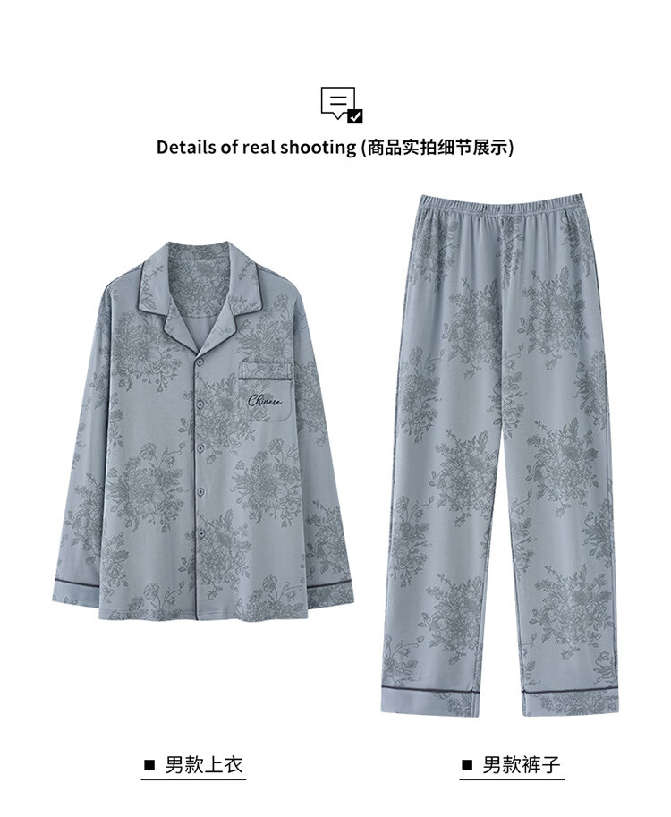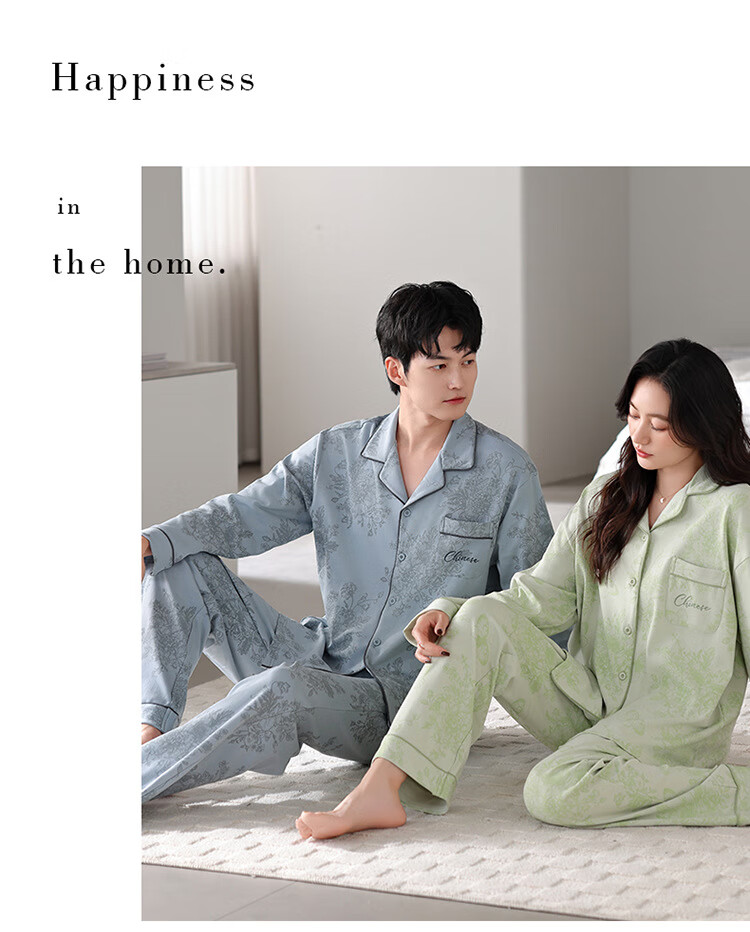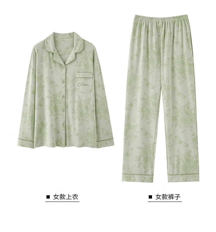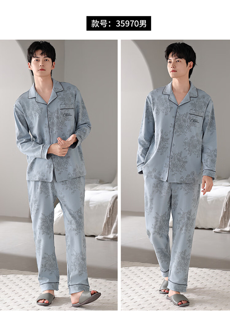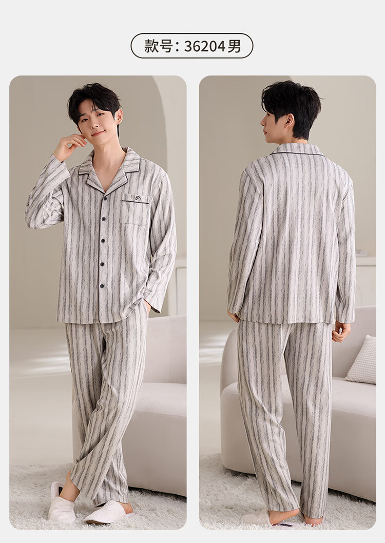 MiiOW new pajamas for women in autumn and winter pure cotton long-sleeved trousers cardigan lapel suit couple large size home wear can be worn outside A35969 female A35970 male M female