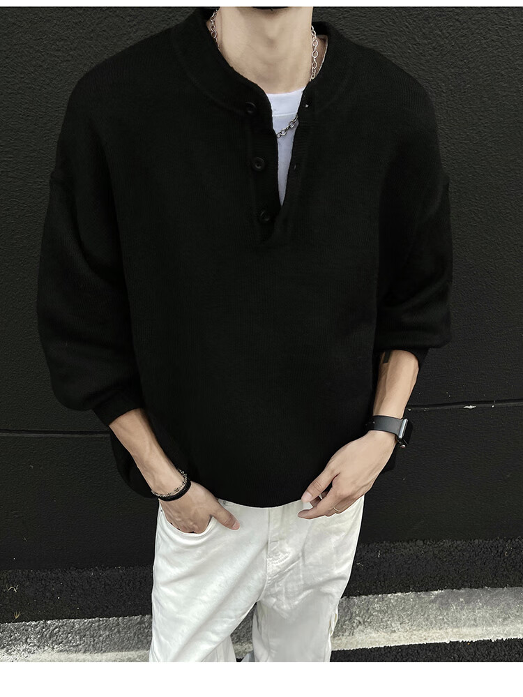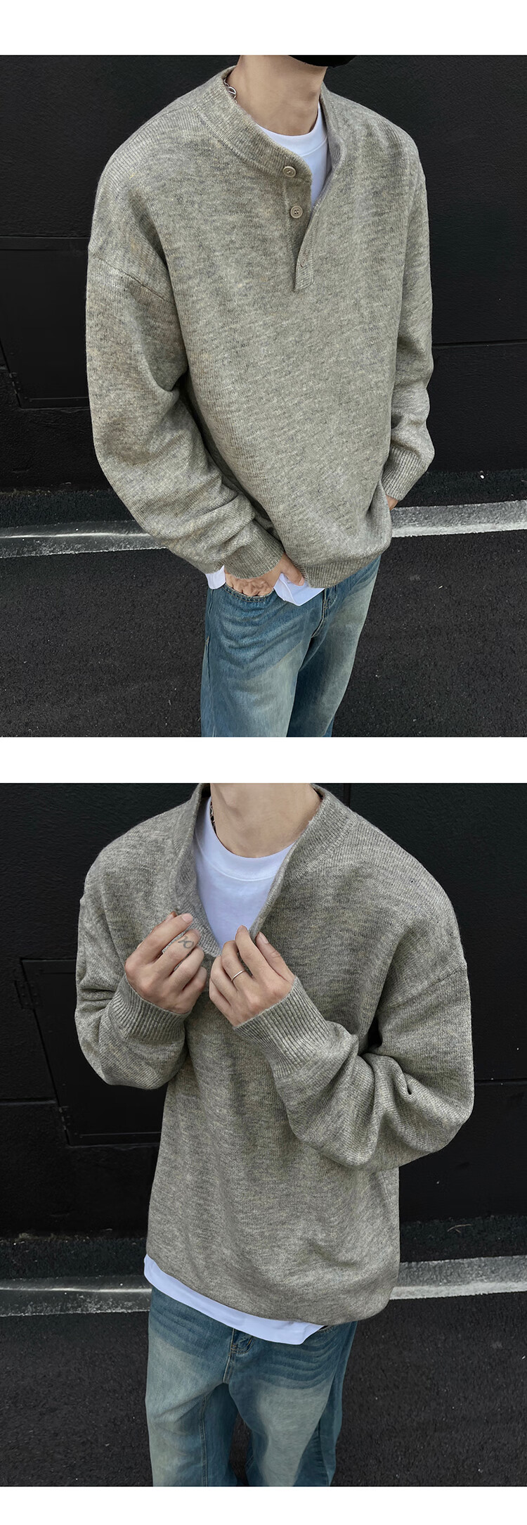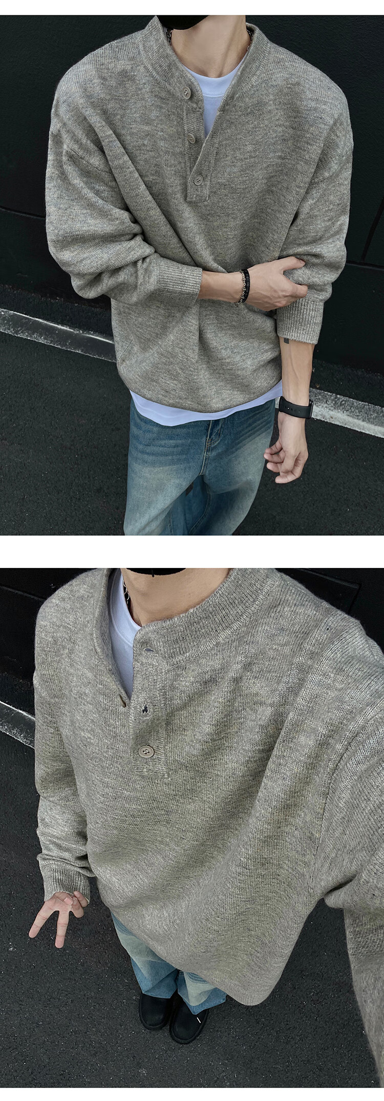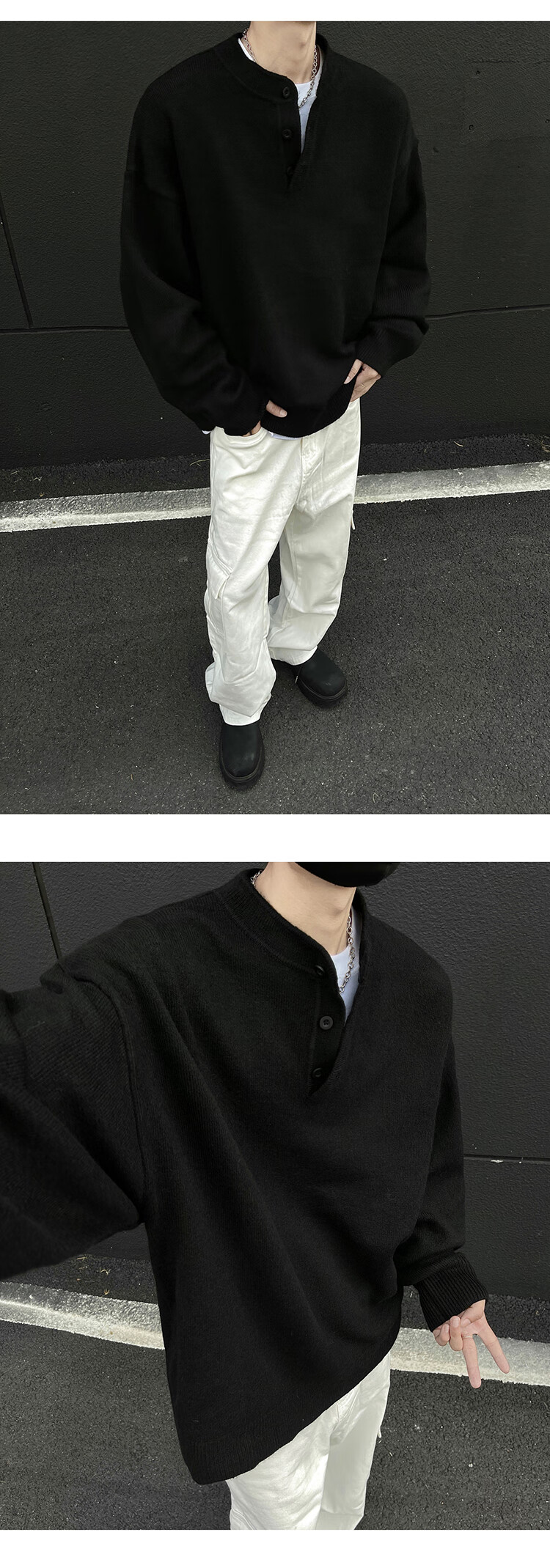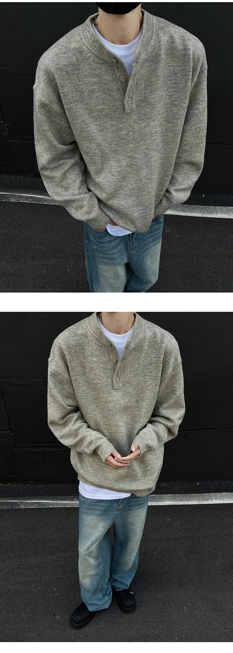 Playboy cleanfit henley collar sweater men's autumn and winter warm sweater men's inner long-sleeved base sweater floral gray 2XL 145 to 160 Jin Jin equals 0.5 kg can be worn