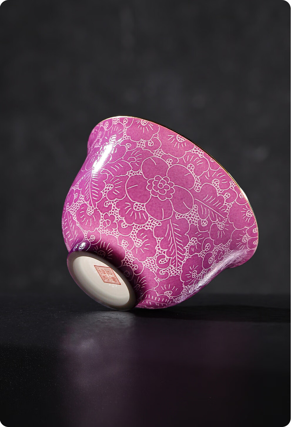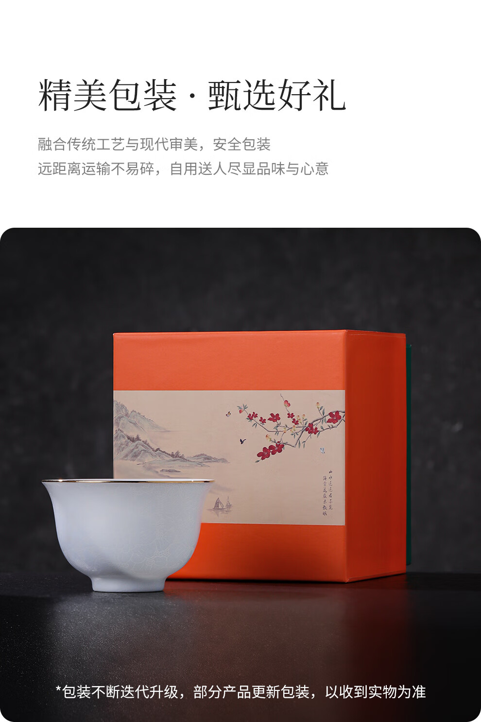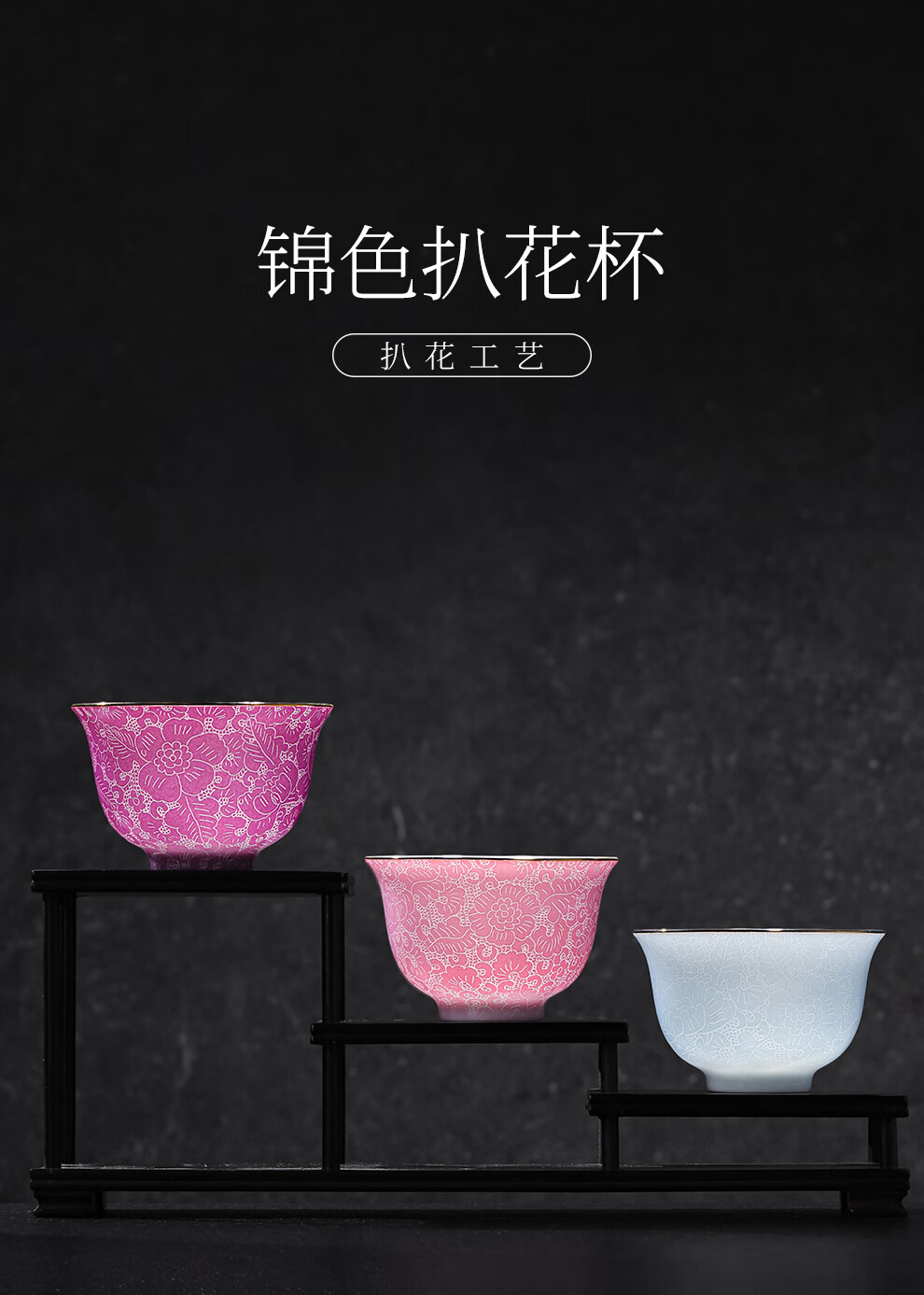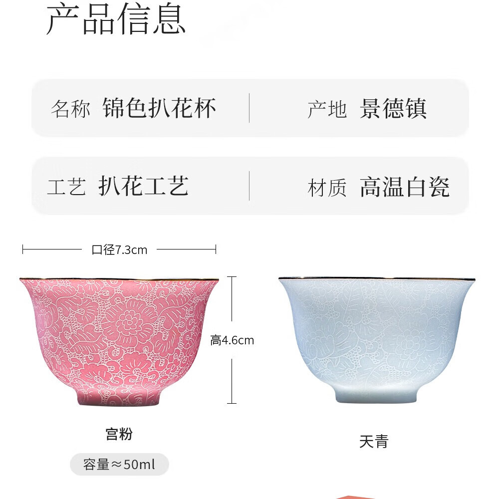 Jingdezhen official ceramic flower-flowered teacup Kung Fu tea set for home tea making master cup white porcelain tea drinking cup high-end gift brocade flower-flowered cup-Tianqing 1 piece