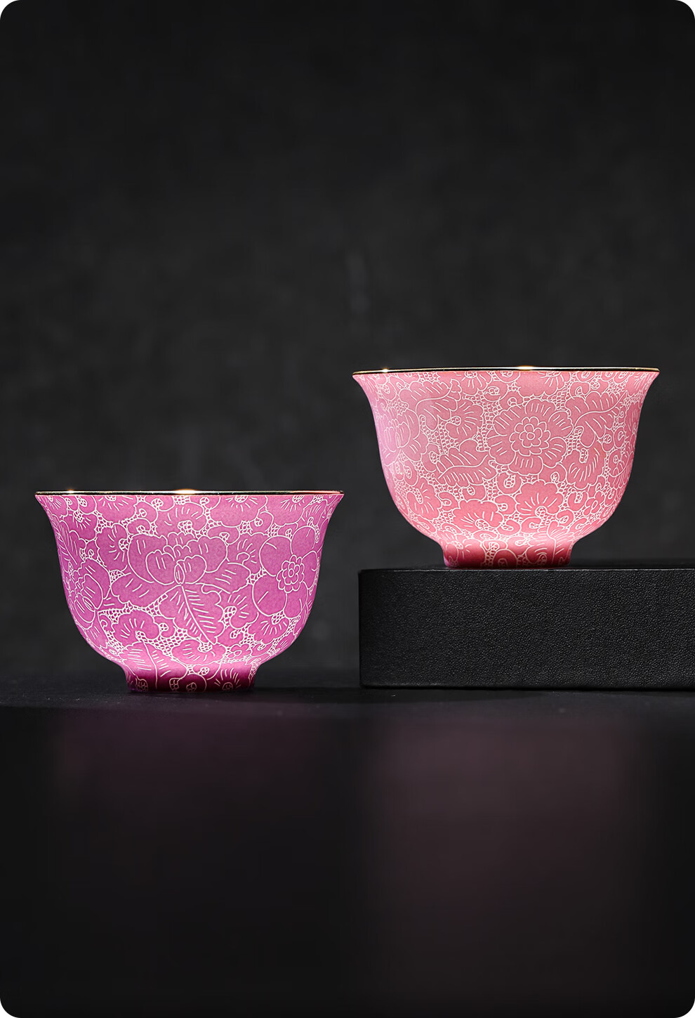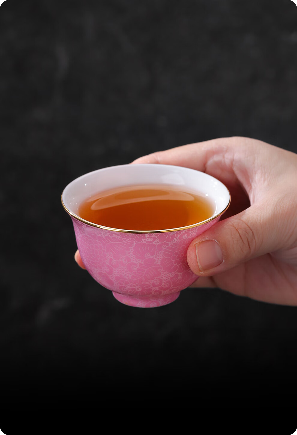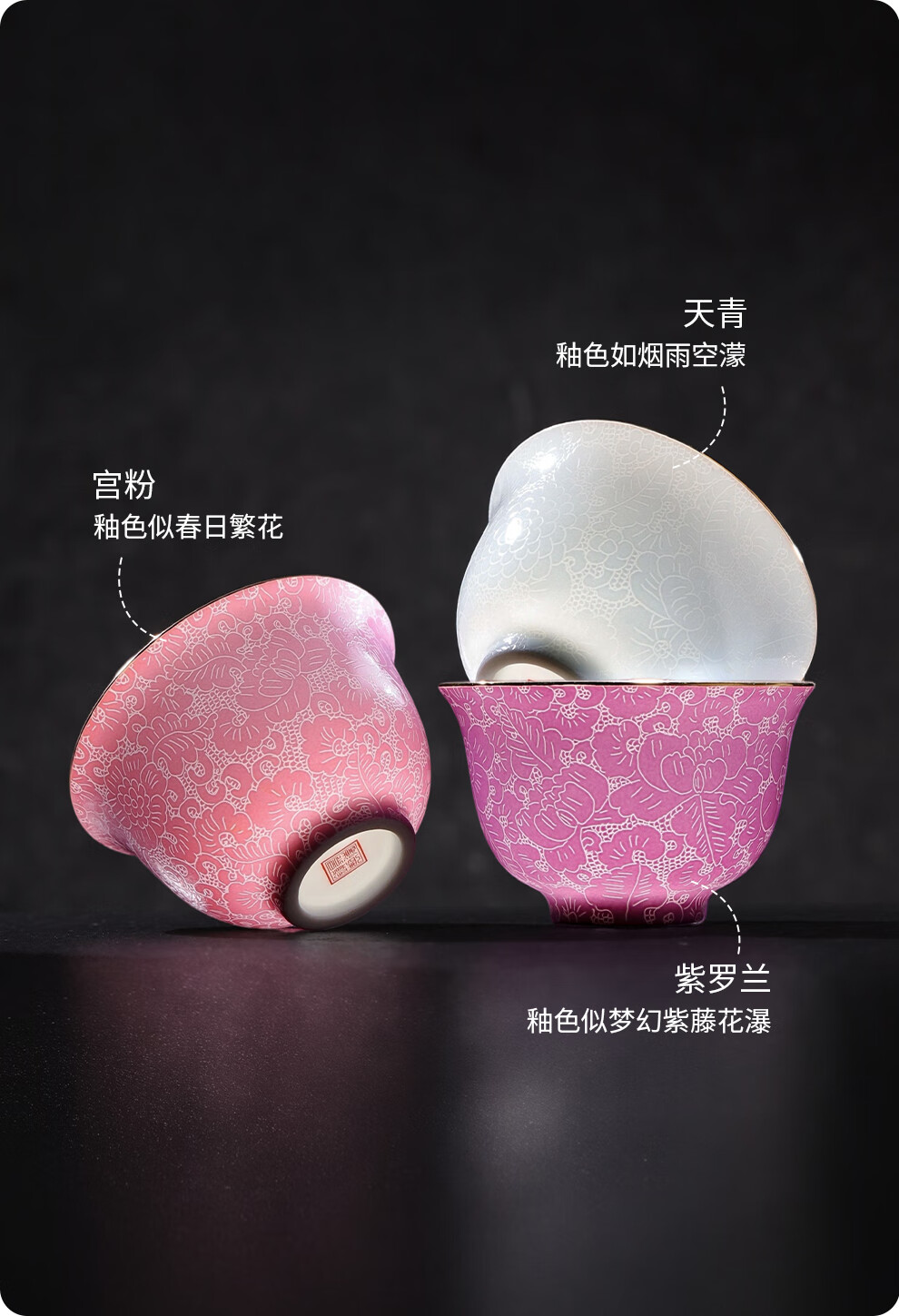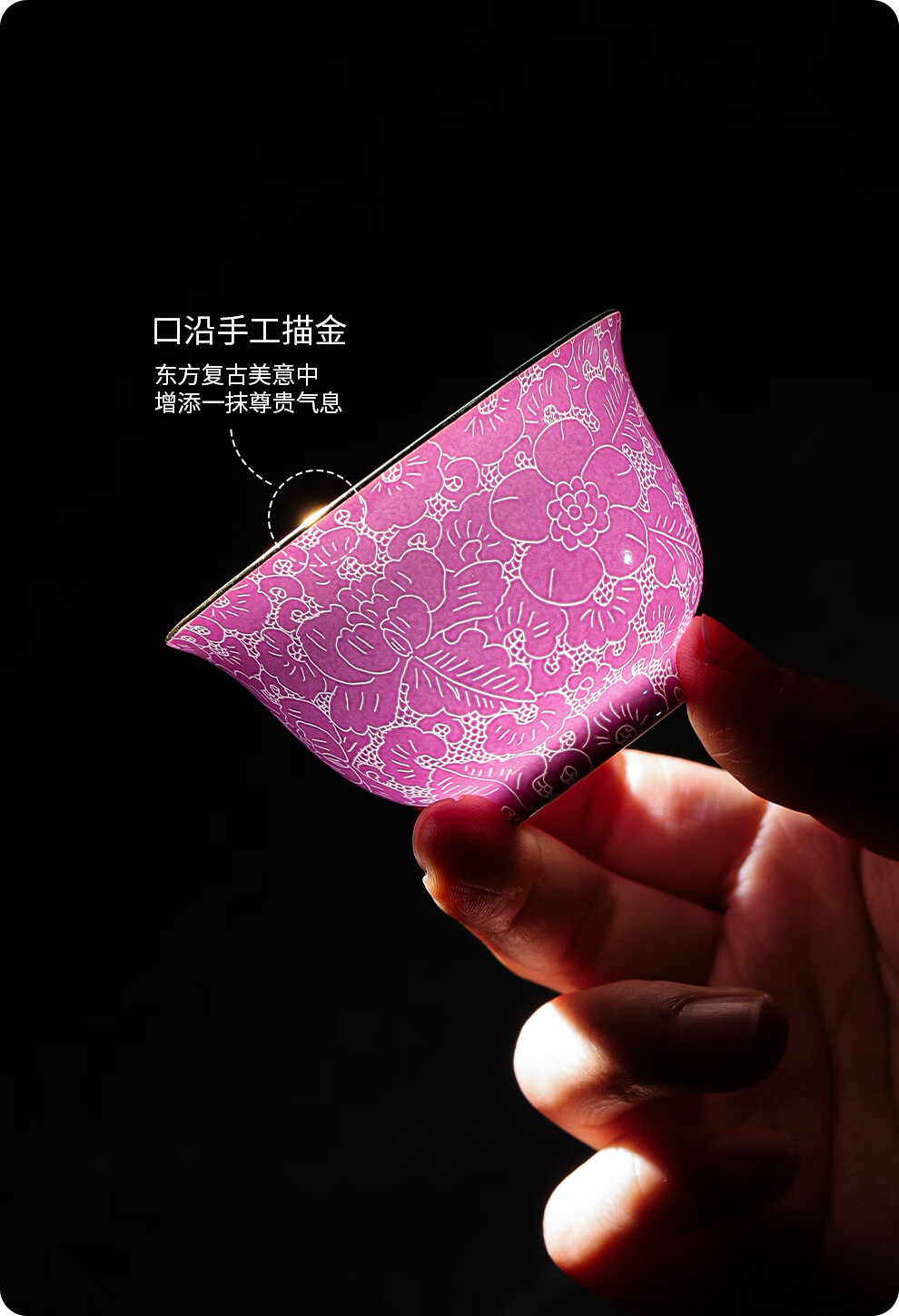 Jingdezhen official ceramic flower-flowered teacup Kung Fu tea set for home tea making master cup white porcelain tea drinking cup high-end gift brocade flower-flowered cup-Tianqing 1 piece