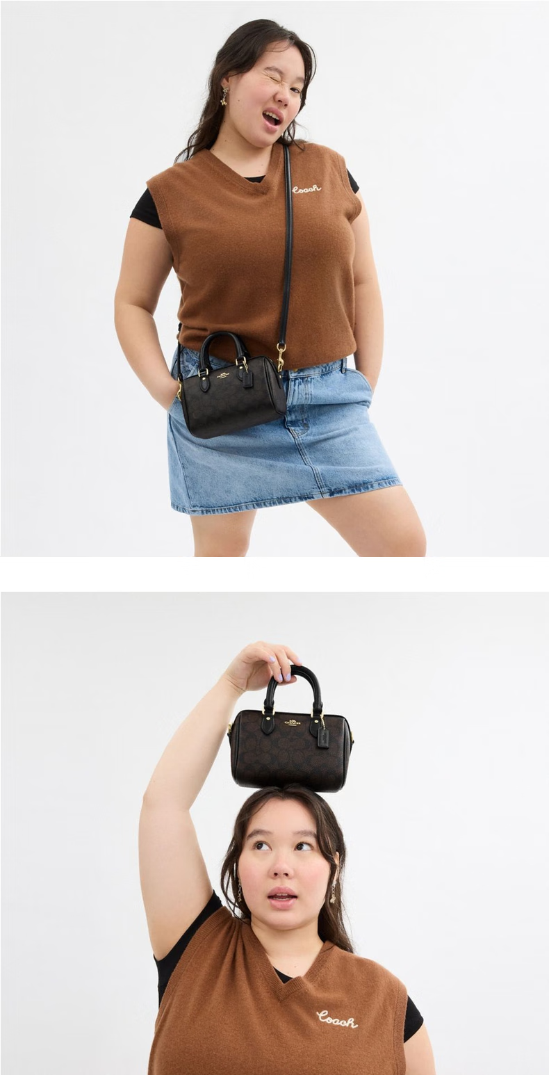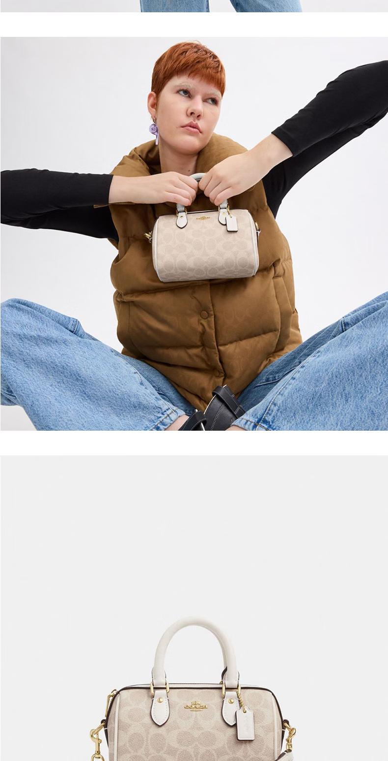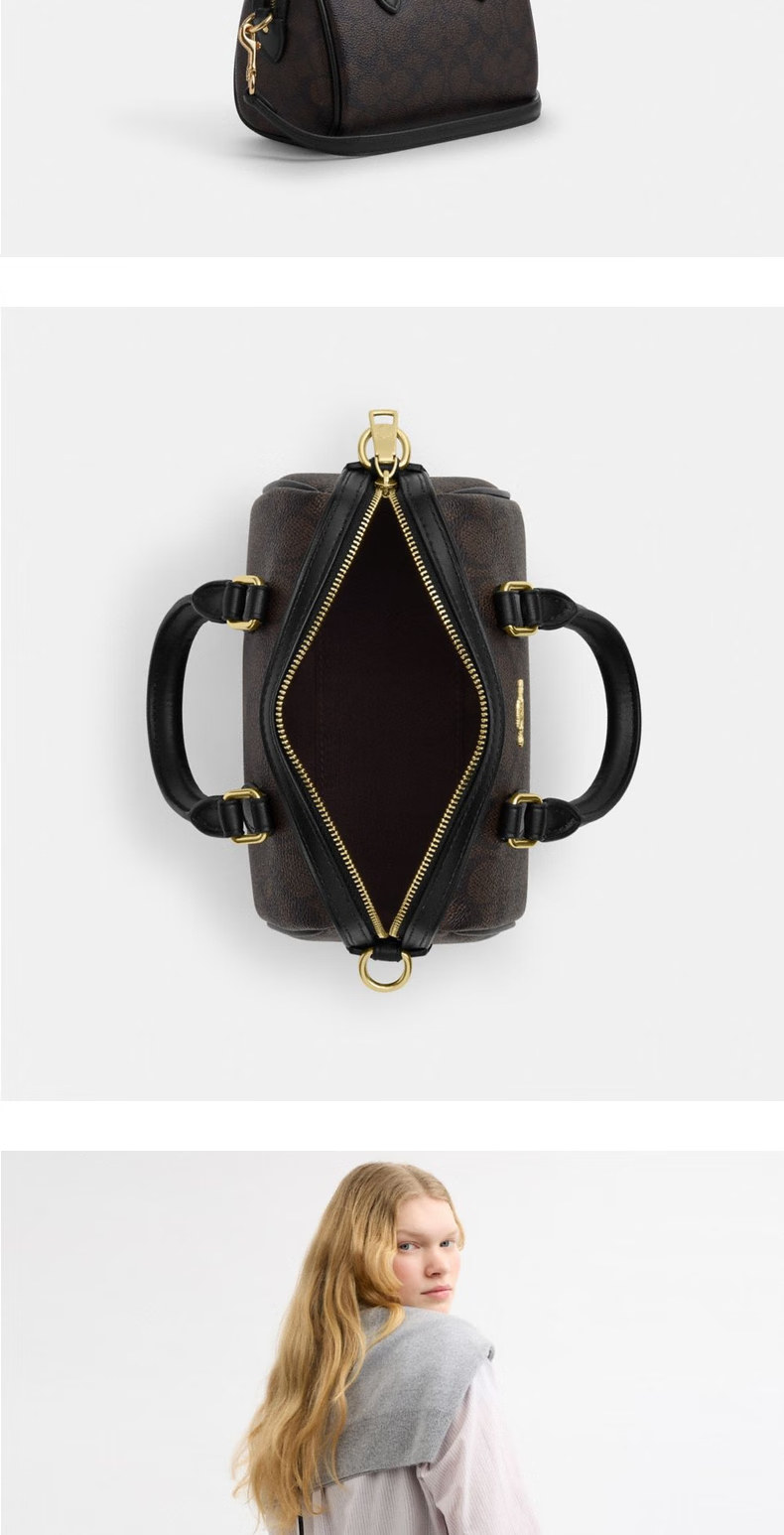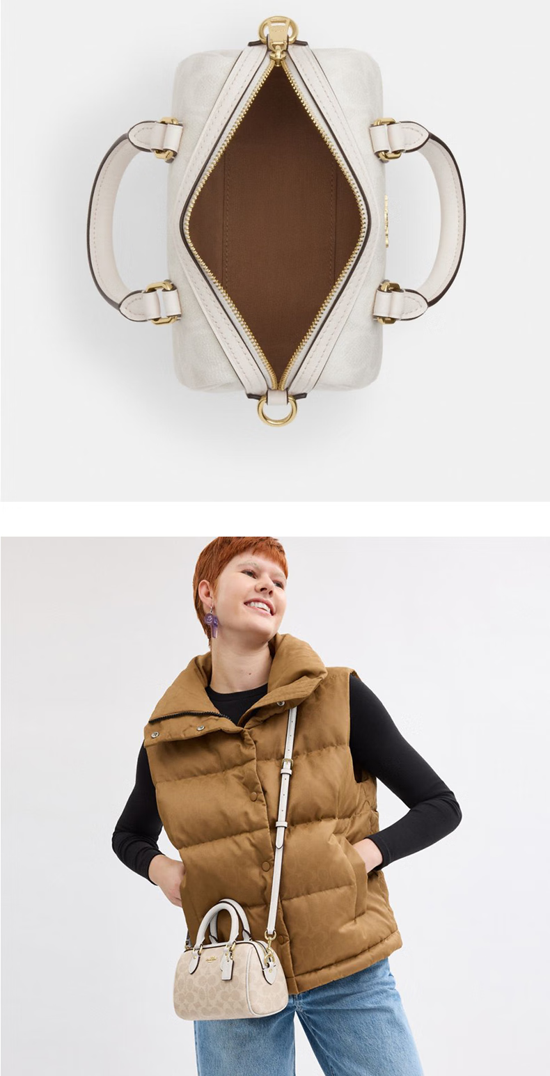 COACH Gift Outlet Women's Bag Classic Presbyopic ROWAN Mini Boston Shoulder Crossbody Bag Handbag IM/Walnut/Brown