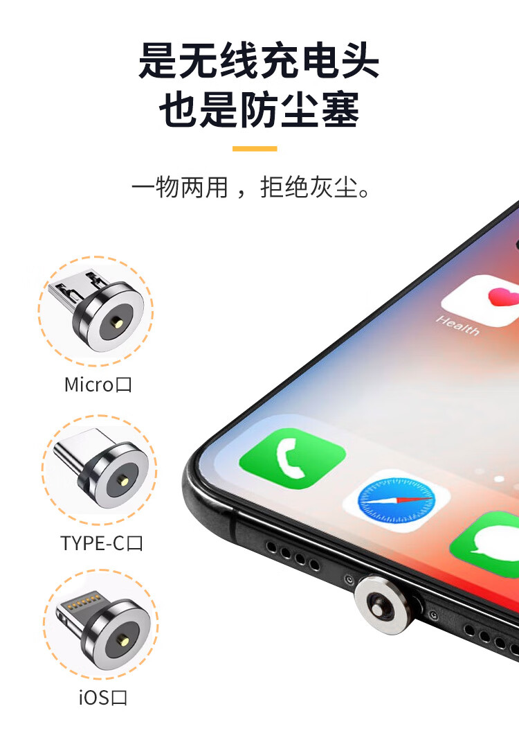 Zejie Strong Magnetic Suction Head Car Wireless Charging Mobile Phone Charging Head Converter Plug Magnetic Head Suitable for Type-C Port Android Single Contact TYPE-C Magnetic Suction Head 1 No Specifications