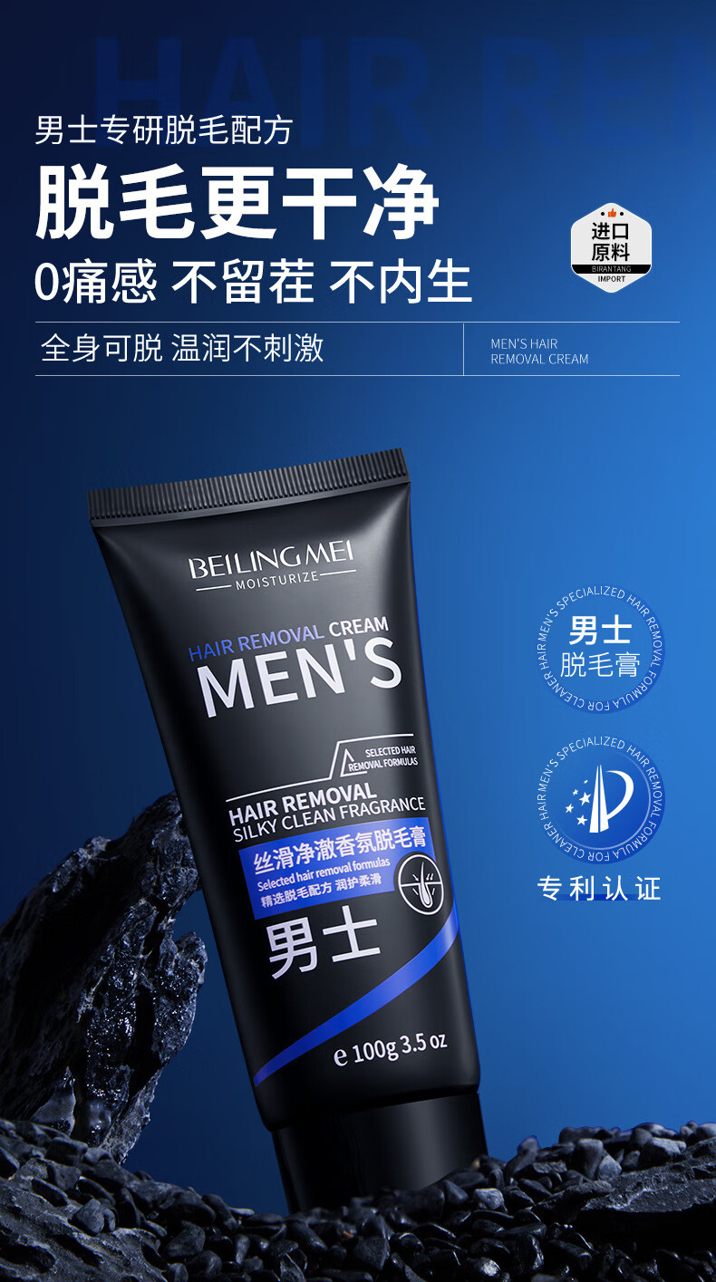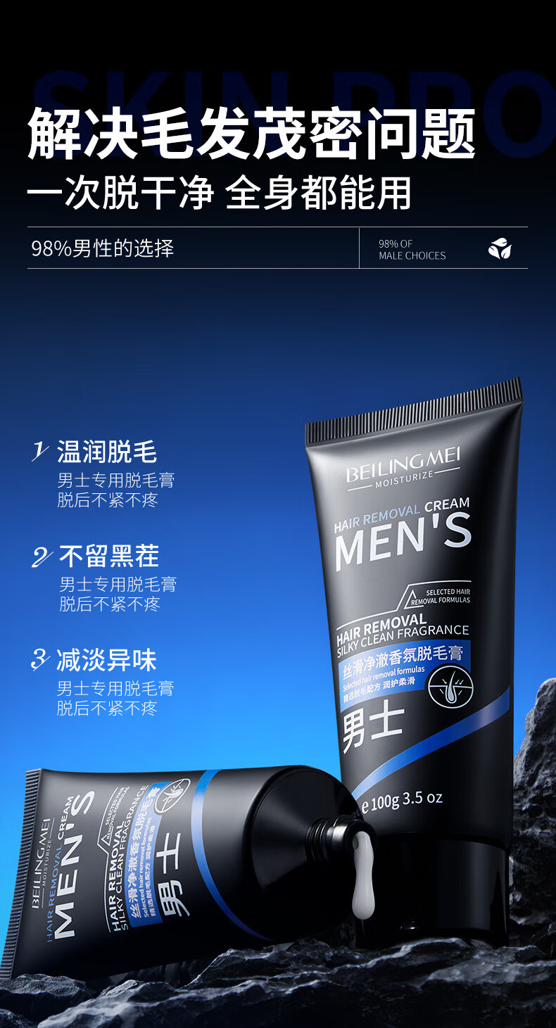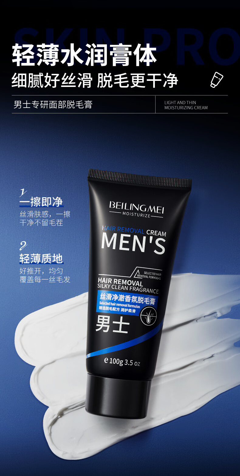 Genuine hair removal cream for men, mustache, lips, beard, armpit hair, leg hair, hand hair, hair removal artifact, silky and clear fragrance hair removal cream 100g*1