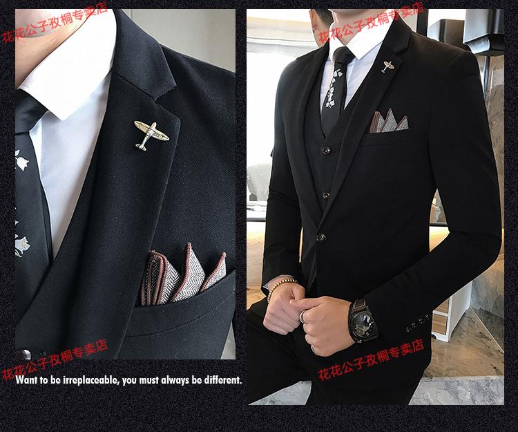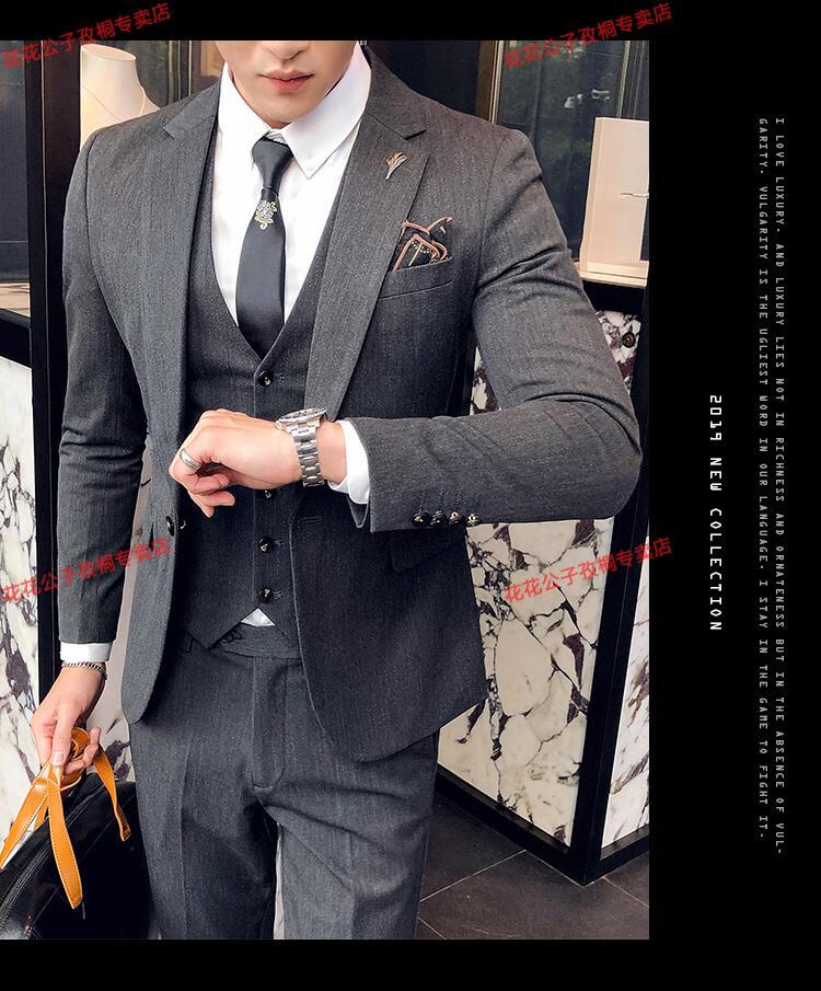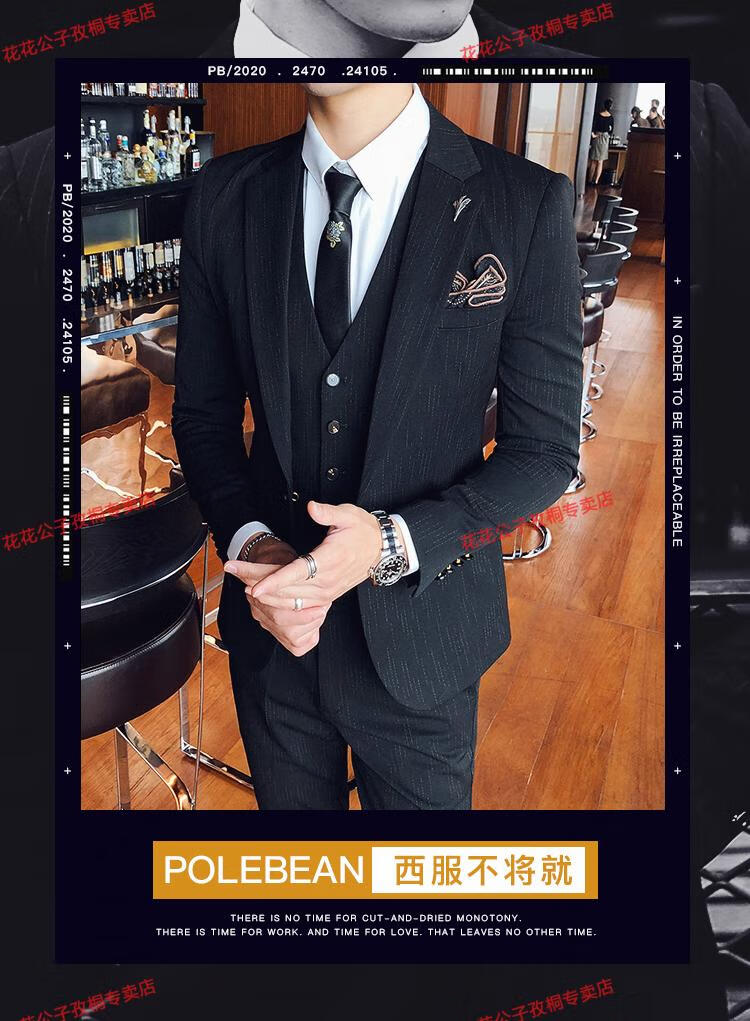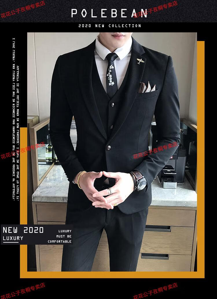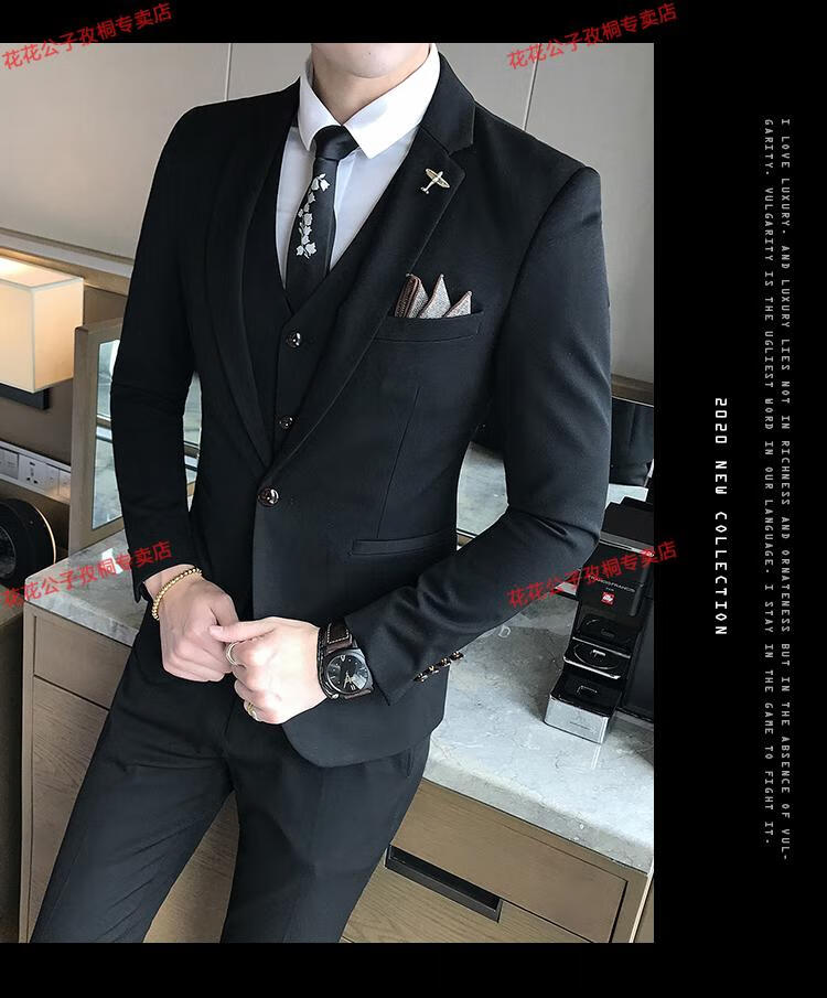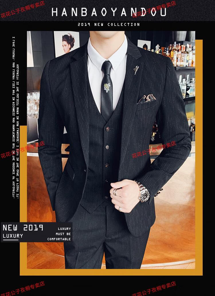 Playboy suit for men professional groomsmen Korean style groom wedding dress formal business slim casual suit for men 937 black (three-piece suit) jacket + vest + trousers + shirt + gift bag XL 52 Weight 120-130 Jin Jin equals 0.5 kg